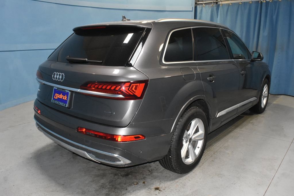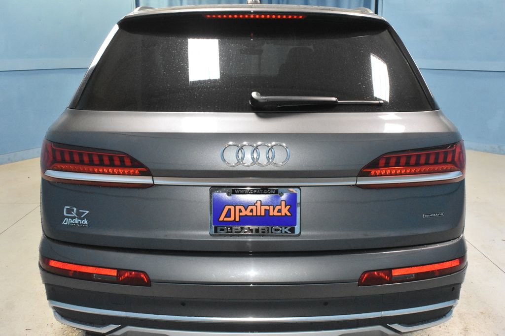 2022 Audi Q7 45 Premium Plus quattro Get luxury for less at D-Patrick Exclusive Pre-Owned. Buy this used vehicle 100% online or in-store. This pre-owned vehicle was put through an extensive inspection before hitting our lot. Because of this, we are able to offer a 3-month/3,000-mile comprehensive limited warranty. You also get our Love It or Return It 5-day, 300-mile Exchange Policy. See our website for more details on both. We also offer extended warranties, additional protection plans, and offer a CarFax vehicle history report. WE BUY CARS FOR CASH. *Prices listed do not include a $250 documentation fee, applicable tax, title, tags, license, or $195 service and preparation. All pricing, vehicle information, and features (such as accessories and color) are believed to be accurate, but we do not warrant or guarantee such accuracy. The prices shown above may vary from region to region, and incentives are subject to change. Some offers listed may not be available to all customers. All online sale commitments are subject to confirmation of continued availability of vehicle. Once availability is confirmed, online sale agreement becomes binding upon the parties. If any information found on the website is thought to be erroneous, please verify information with a customer service representative. See dealer for full details. Why Exclusive? We are Evansville's only certified Audi, BMW, Mercedes-Benz, Porsche and Volkswagen service center. Every luxury vehicle we choose to offer has been serviced by manufacturer-certified master technicians. Get exclusive one owner, local trades and retired company vehicles that have not been sent off, serviced and repaired at a nationwide auction. We are Evansville's exclusive source for Certified Pre-Owned Audi, BMW, Mercedes-Benz, Porsche, and VW. Looking to sell your current vehicle? We are Evansville's KBB Instant Cash Offer Buying Center. 4-Zone Automatic Climate Control, Adaptive Cruise Assist w/Lane Guidance, Bang & Olufsen 3D Premium Sound System, Contour/Ambient LED Interior Lighting Package, Convenience Package, Driver & Passenger Front Seats w/Ventilation, Executive Package, Heated Rear Seats, Illuminated Door Sills, Premium Plus Package, Rear Door/Side Windows & Tailgate Sunshades, 10 Speakers, 3.76 Axle Ratio, 3rd row seats: bench, 4-Wheel Disc Brakes, ABS brakes, Air Conditioning, Alloy wheels, AM/FM radio: SiriusXM, Audi smartphone interface (Apple CarPlay/Android Auto), Auto High-beam Headlights, Auto-dimming door mirrors, Auto-dimming Rear-View mirror, Automatic temperature control, Brake assist, Bumpers: body-color, Compass, Delay-off headlights, Driver door bin, Driver vanity mirror, Dual front impact airbags, Dual front side impact airbags, Electronic Stability Control, Emergency communication system: Audi connect CARE, PRIME & PLUS, Exterior Parking Camera Rear, Four wheel independent suspension, Front anti-roll bar, Front Bucket Seats, Front Center Armrest, Front dual zone A/C, Front fog lights, Front reading lights, Fully automatic headlights, Garage door transmitter: HomeLink, Genuine wood door panel insert, Heated door mirrors, Heated Front Bucket Seats, Heated front seats, Illuminated entry, Leather Seating Surfaces, Leather Shift Knob, Leather steering wheel, Low tire pressure warning, Memory seat, Navigation system: Audi MMI Navigation plus with Touch Response, Occupant sensing airbag, Outside temperature display, Overhead airbag, Overhead console, Panic alarm, Passenger door bin, Passenger vanity mirror, Power door mirrors, Power driver seat, Power Liftgate, Power moonroof: Panoramic, Power passenger seat, Power steering, Power windows, Radio data system, Radio: Audi Sound System, Rain sensing wipers, Rear air conditioning, Rear anti-roll bar, Rear fog lights, Rear reading lights, Rear seat center armrest, Rear side impact airbag, Rear window defroster, Rear window wiper, Reclining 3rd row seat, Remote keyless entry, Roof rack: rails only, Security system, Speed contr