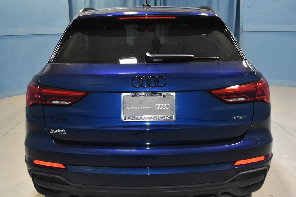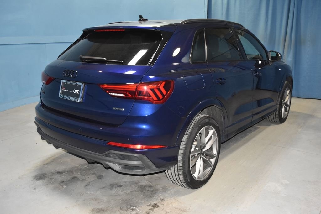 2025 Audi Q3 Premium S Line quattro Certified. Recent Arrival! **Prices listed do not include a $250 documentation fee, applicable tax, title, tags, license, or $195 service and preparation. All pricing, vehicle information, and features (such as accessories and color) are believed to be accurate, but we do not warrant or guarantee such accuracy. The prices shown above may vary from region to region, and incentives are subject to change. Some offers listed may not be available to all customers. All online sale commitments are subject to confirmation of continued availability of vehicle. Once availability is confirmed, online sale agreement becomes binding upon the parties. If any information found on the website is thought to be erroneous, please verify information with a customer service representative. See dealer for full details. Alarm with Motion Sensor, Audi Advanced Key, Auto-Dimming Power-Folding Exterior Mirrors, Auto-Dimming Rear-View Mirror, Black Exterior Trim, Black Optic Sport Package, Black Roof Rails, Convenience Package, Driver Seat Memory, Garage Door Opener (HomeLink), LED Interior Lighting Package, SiriusXM with 360L (3 Months Trial), Sport Front Bucket Seats, Wheels: 19 5-Double-Arm Design, Wireless Phone Charging Pad, 10 Speakers, 4-Wheel Disc Brakes, ABS brakes, Air Conditioning, Alloy wheels, AM/FM radio, Audi Beam-Rings, Audi Cargo Box, Audi Guard All-Weather Mats, Audi smartphone interface (Apple CarPlay/Android Auto), Auto High-beam Headlights, Automatic temperature control, Black Audi Rings and Badges, Brake assist, Bumpers: body-color, Delay-off headlights, Driver door bin, Driver vanity mirror, Dual front impact airbags, Dual front side impact airbags, Electronic Stability Control, Emergency communication system: Audi connect CARE, Exterior Parking Camera Rear, Four wheel independent suspension, Front anti-roll bar, Front Bucket Seats, Front Center Armrest, Front dual zone A/C, Front fog lights, Front reading lights, Fully automatic headlights, Heated door mirrors, Heated Front Bucket Seats, Heated front seats, Illuminated entry, Knee airbag, Leather Seating Surfaces, Leather Shift Knob, Leather steering wheel, Low tire pressure warning, Occupant sensing airbag, Outside temperature display, Overhead airbag, Overhead console, Panic alarm, Passenger door bin, Passenger vanity mirror, Power door mirrors, Power driver seat, Power Liftgate, Power moonroof: Panoramic, Power passenger seat, Power steering, Power windows, Radio data system, Radio: Audi Sound System, Rain sensing wipers, Rear air conditioning, Rear anti-roll bar, Rear reading lights, Rear seat center armrest, Rear window defroster, Rear window wiper, Remote keyless entry, Speed control, Speed-sensing steering, Split folding rear seat, Spoiler, Steering wheel mounted audio controls, Tachometer, Telescoping steering wheel, Tilt steering wheel, Traction control, Trip computer, Turn signal indicator mirrors, Variably intermittent wipers, Wheels: 18 5-V-Spoke-S Design, Alarm with Motion Sensor, Audi Advanced Key, Auto-Dimming Power-Folding Exterior Mirrors, Auto-Dimming Rear-View Mirror, Black Exterior Trim, Black Optic Sport Package, Black Roof Rails, Convenience Package, Driver Seat Memory, Garage Door Opener (HomeLink), LED Interior Lighting Package, SiriusXM with 360L (3 Months Trial), Sport Front Bucket Seats, Wheels: 19 5-Double-Arm Design, Wireless Phone Charging Pad. CARFAX One-Owner. Clean CARFAX. Audi Certified pre-owned Details:
