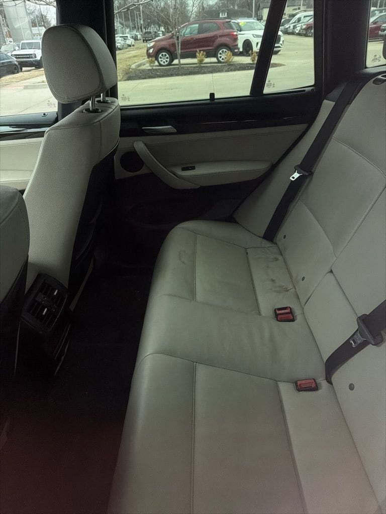 2012 BMW X3 xDrive35i Recent Arrival! VEHICLE SOLD AS-IS. We want you to shop confidently for your next used car at The BIG Ford Store, D-Patrick Ford. We are located on Highway 41 and Walnut in Evansville, right next to the Lloyd Expressway. This vehicle’s low price is reflective of its age, condition, and mileage and we do not warrant its mechanical or overall condition. This vehicle is provided with a CarFax vehicle history report. This is an AS-IS vehicle and is not available for additional service plans. *Prices listed do not include a $250 documentation fee, applicable tax, title, tags, license, or $195 service and preparation. All pricing, vehicle information, and features (such as accessories and color) are believed to be accurate, but we do not warrant or guarantee such accuracy. The prices shown above may vary from region to region, and incentives are subject to change. Some offers listed may not be available to all customers. All online sale commitments are subject to confirmation of continued availability of vehicle. Once availability is confirmed, online sale agreement becomes binding upon the parties. If any information found on the website is thought to be erroneous, please verify information with a customer service representative. See dealer for full details. Looking to sell your current vehicle? We buy cars for cash. Every test drive at D-Patrick Ford in Evansville earns $10 to a local charity. Schedule your test drive today! 8-Speed Automatic, 12 Speakers, 3.385 Axle Ratio, 4-Wheel Disc Brakes, ABS brakes, Air Conditioning, Alloy wheels, AM/FM radio, Anti-whiplash front head restraints, Automatic temperature control, BMW Apps, Brake assist, CD player, Delay-off headlights, Driver door bin, Driver vanity mirror, Dual front impact airbags, Dual front side impact airbags, Electronic Stability Control, Four wheel independent suspension, Front anti-roll bar, Front Bucket Seats, Front dual zone A/C, Front fog lights, Front reading lights, Fully automatic headlights, Genuine wood console insert, Genuine wood dashboard insert, Genuine wood door panel insert, Illuminated entry, Leatherette Upholstery, Low tire pressure warning, M Sport Package, Memory seat, Occupant sensing airbag, Outside temperature display, Overhead airbag, Panic alarm, Passenger door bin, Passenger vanity mirror, Performance Control, Power door mirrors, Power driver seat, Power passenger seat, Power steering, Power windows, Radio data system, Rain sensing wipers, Rear anti-roll bar, Rear fog lights, Rear reading lights, Rear window defroster, Rear window wiper, Rear-View Camera w/Top View, Remote keyless entry, Security system, Smartphone Integration, Speed control, Speed-sensing steering, Speed-Sensitive Wipers, Split folding rear seat, Spoiler, Sport Seats, Sport steering wheel, Steering wheel mounted audio controls, Tachometer, Telescoping steering wheel, Tilt steering wheel, Traction control, Trip computer, Variably intermittent wipers, 8-Speed Automatic. 4D Sport Utility xDrive35i 8-Speed Automatic 3.0L I6 DOHC 24V TwinPower Turbo AWD Deep Sea Blue Metallic CALL TODAY (812) 625-4823 OR SHOP ONLINE AT WWW.DPATRICKFORD.COM.