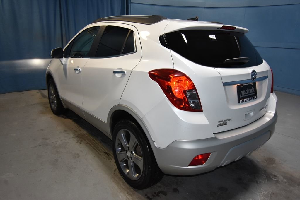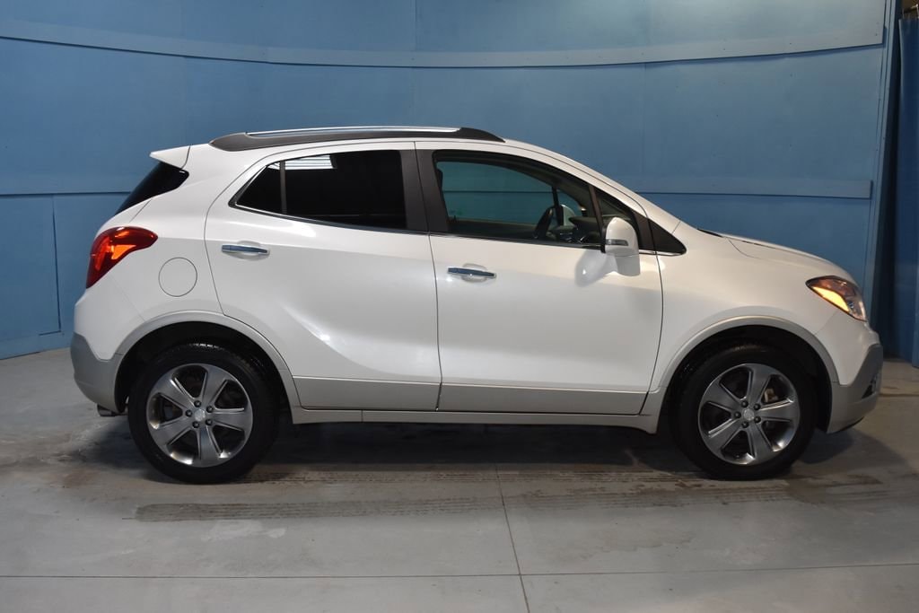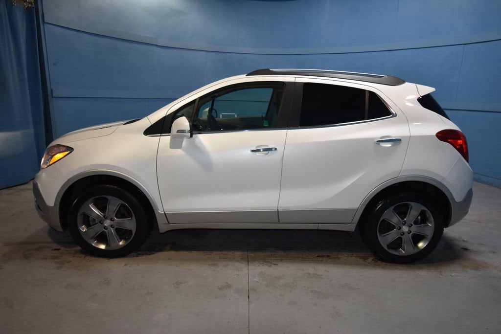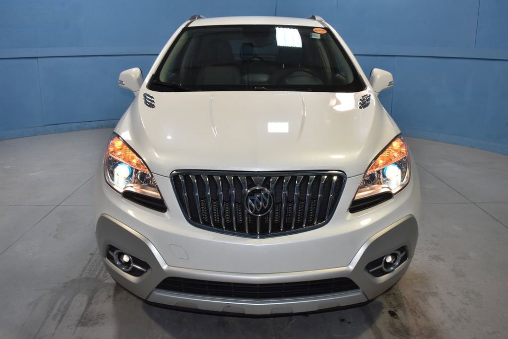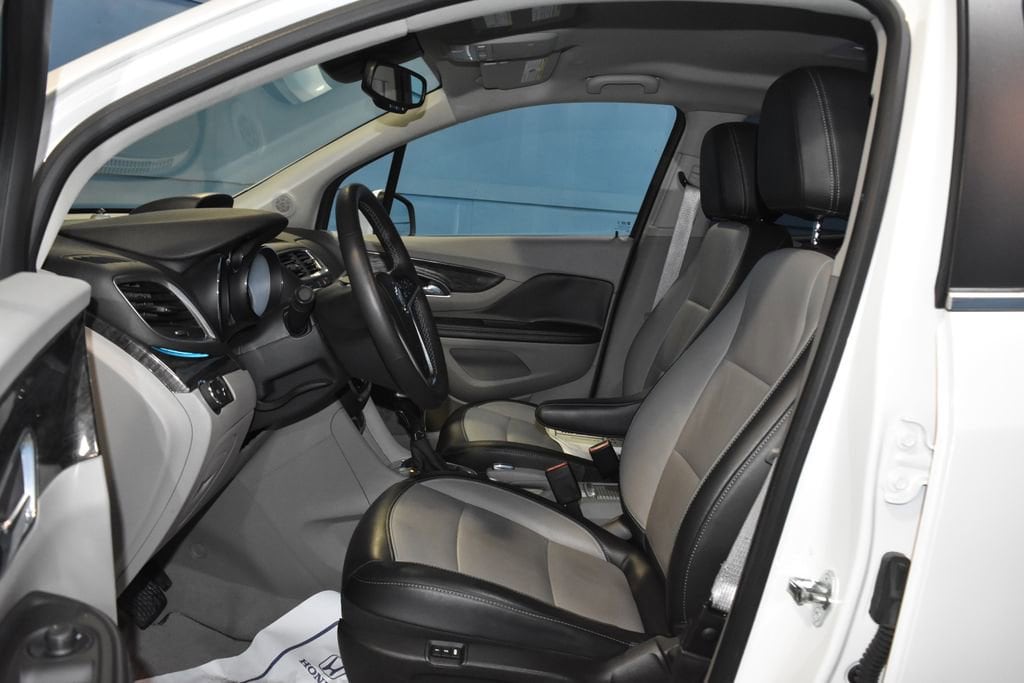 2014 Buick Encore Leather Recent Arrival! **Prices listed do not include a $250 documentation fee, applicable tax, title, tags, license, or $195 service and preparation. All pricing, vehicle information, and features (such as accessories and color) are believed to be accurate, but we do not warrant or guarantee such accuracy. The prices shown above may vary from region to region, and incentives are subject to change. Some offers listed may not be available to all customers. All online sale commitments are subject to confirmation of continued availability of vehicle. Once availability is confirmed, online sale agreement becomes binding upon the parties. If any information found on the website is thought to be erroneous, please verify information with a customer service representative. See dealer for full details. 120-Volt Power Outlet, 3.53 Final Drive Ratio, 4-Wheel Disc Brakes, 6 Speakers, ABS brakes, Air Conditioning, Alloy wheels, AM/FM radio: SiriusXM, Auto-Dimming Inside Rear-View Mirror, Auto-dimming Rear-View mirror, Automatic temperature control, Brake assist, Bumpers: body-color, CD player, Compass, Delay-off headlights, Driver door bin, Driver vanity mirror, Driver's Seat Mounted Armrest, Dual front impact airbags, Dual front side impact airbags, Dual-Zone Automatic Climate Control, Electronic Stability Control, Emergency communication system: OnStar Directions & Connections, Exterior Parking Camera Rear, Front anti-roll bar, Front Bucket Seats, Front dual zone A/C, Front Fog Lamps, Front fog lights, Front reading lights, Front wheel independent suspension, Fully automatic headlights, Heated door mirrors, Heated Driver & Front Passenger Seats, Heated front seats, Heated steering wheel, Illuminated entry, Knee airbag, Leather steering wheel, Leather-Appointed Seat Trim, Low tire pressure warning, Memory seat, Occupant sensing airbag, Outside temperature display, Overhead airbag, Panic alarm, Passenger door bin, Passenger vanity mirror, Power door mirrors, Power driver seat, Power passenger seat, Power steering, Power windows, Premium audio system: IntelliLink, Radio data system, Radio: AM/FM Audio System w/MP3 CD Player, Rear seat center armrest, Rear side impact airbag, Rear window defroster, Rear window wiper, Remote keyless entry, Remote Vehicle Starter System, Ride & Handling Suspension, Roof rack: rails only, Security system, SiriusXM Satellite Radio, Speed control, Speed-sensing steering, Split folding rear seat, Spoiler, Steering wheel mounted audio controls, Tachometer, Telescoping steering wheel, Tilt steering wheel, Traction control, Trip computer, Turn signal indicator mirrors, Variably intermittent wipers, Wheels: 18 Painted Cast Aluminum. Clean CARFAX. 4D Sport Utility Leather 6-Speed Automatic ECOTEC 1.4L I4 SMPI DOHC Turbocharged VVT AWD White Pearl Metallic (812) 477-6201 and shop online at www.dpathonda.com.