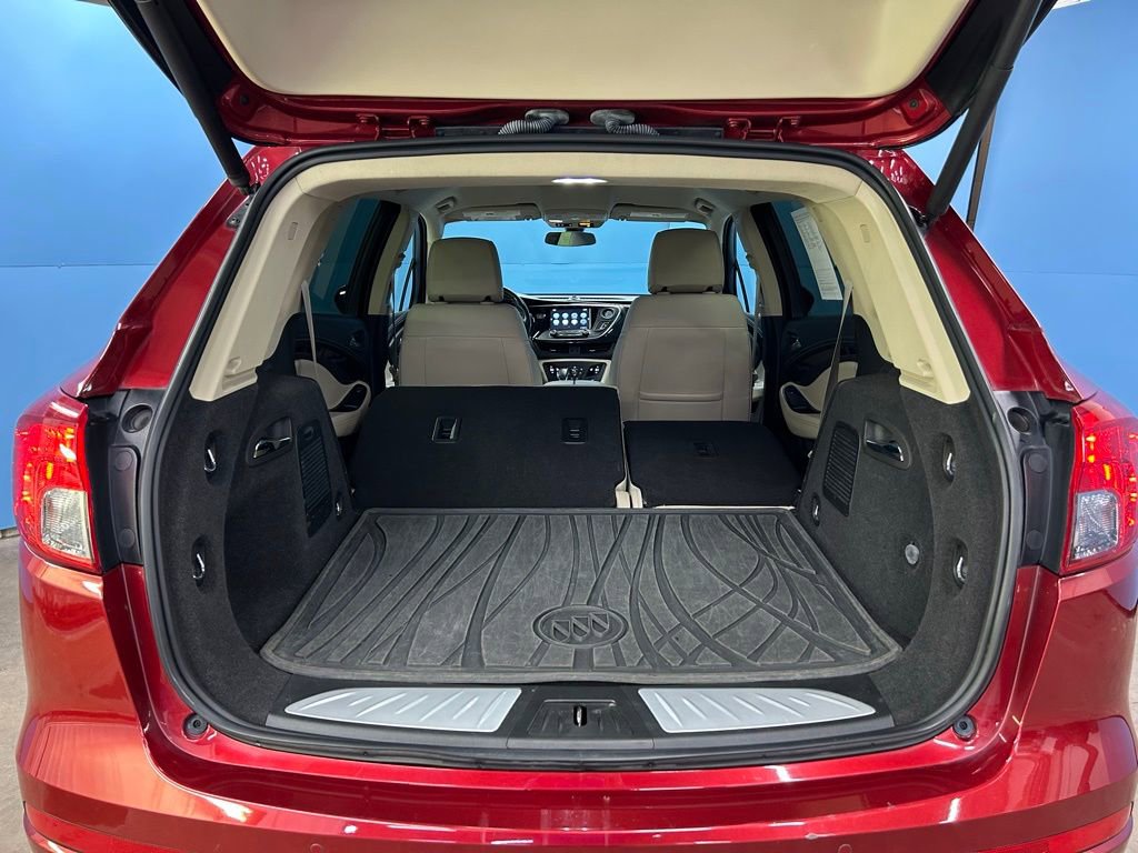 2017 Buick Envision Essence We want you to shop confidently for your next used car at D-Patrick Lebanon Ford and We make it EASY! Buy this used vehicle 100% online or in-store, EASY. Saving time at the dealership, EASY! Financing, EASY! Get pre-approved online or in-store with one of our many lenders, EASY. Finding the car you love at the price you want, EASY! We also offer extended service plans, vehicle protection plans, and offer a free to you CarFax vehicle history report. *Prices listed do not include a $250 documentation fee, applicable tax, title, tags, license, or $195 service and preparation. All pricing, vehicle information, and features (such as accessories and color) are believed to be accurate, but we do not warrant or guarantee such accuracy. The prices shown above may vary from region to region, and incentives are subject to change. Some offers listed may not be available to all customers. All online sale commitments are subject to confirmation of continued availability of vehicle. Once availability is confirmed, online sale agreement becomes binding upon the parties. If any information found on the website is thought to be erroneous, please verify information with a customer service representative. See dealer for full details. Looking to sell your current vehicle? We buy cars for cash. 18" 10-Spoke Polished Aluminum Wheels, 3.50 Final Drive Axle Ratio, 4-Wheel Disc Brakes, 6 Speakers, 6-Speaker Audio System Feature, ABS brakes, Air Conditioning, All-Weather Cargo Mat (LPO), All-Weather Floor Mats, Alloy wheels, AM/FM radio: SiriusXM, Apple CarPlay/Android Auto, Auto-dimming door mirrors, Auto-dimming Rear-View mirror, Automatic temperature control, Brake assist, Buick Interior Protection Package (LPO), Bumpers: body-color, Compass, Delay-off headlights, Driver 8-Way Power Seat Adjuster, Driver door bin, Driver vanity mirror, Dual front impact airbags, Dual front side impact airbags, Electronic Stability Control, Emergency communication system: OnStar Guidance, Exterior Parking Camera Rear, Four wheel independent suspension, Front anti-roll bar, Front Bucket Seats, Front Center Armrest, Front dual zone A/C, Front fog lights, Front Passenger 8-Way Power Seat Adjuster, Front reading lights, Fully automatic headlights, Garage door transmitter, Heated door mirrors, Heated Driver & Front Passenger Seats, Heated front seats, Heated rear seats, Heated steering wheel, Illuminated entry, Knee airbag, Low tire pressure warning, Memory seat, Occupant sensing airbag, Outside temperature display, Overhead airbag, Overhead console, Panic alarm, Passenger door bin, Passenger vanity mirror, Perforated Leather-Appointed Seat Trim, Power door mirrors, Power driver seat, Power Liftgate, Power passenger seat, Power steering, Power windows, Preferred Equipment Group 1SL, Premium audio system: IntelliLink, Radio data system, Radio: Buick IntelliLink AM/FM Stereo, Radio: Buick IntelliLink AM/FM Stereo w/Navigation, Rear air conditioning, Rear anti-roll bar, Rear Parking Sensors, Rear reading lights, Rear seat center armrest, Rear side impact airbag, Rear window defroster, Rear window wiper, Remote keyless entry, Roof rack: rails only, Security system, SiriusXM Satellite Radio, Speed control, Speed-sensing steering, Split folding rear seat, Spoiler, Steering wheel mounted audio controls, Tachometer, Telescoping steering wheel, Tilt steering wheel, Traction control, Trip computer, Turn signal indicator mirrors, Variably intermittent wipers. CARFAX One-Owner. 4D Sport Utility Essence 6-Speed Automatic 2.5L 4-Cylinder DGI DOHC VVT FWD Chili Red Metallic CALL US TODAY BEFORE THIS ONE GETS AWAY-- (765) 204-6248 or shop online at www.dpatricklebanonford.com.