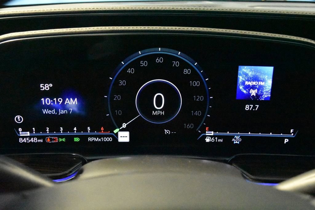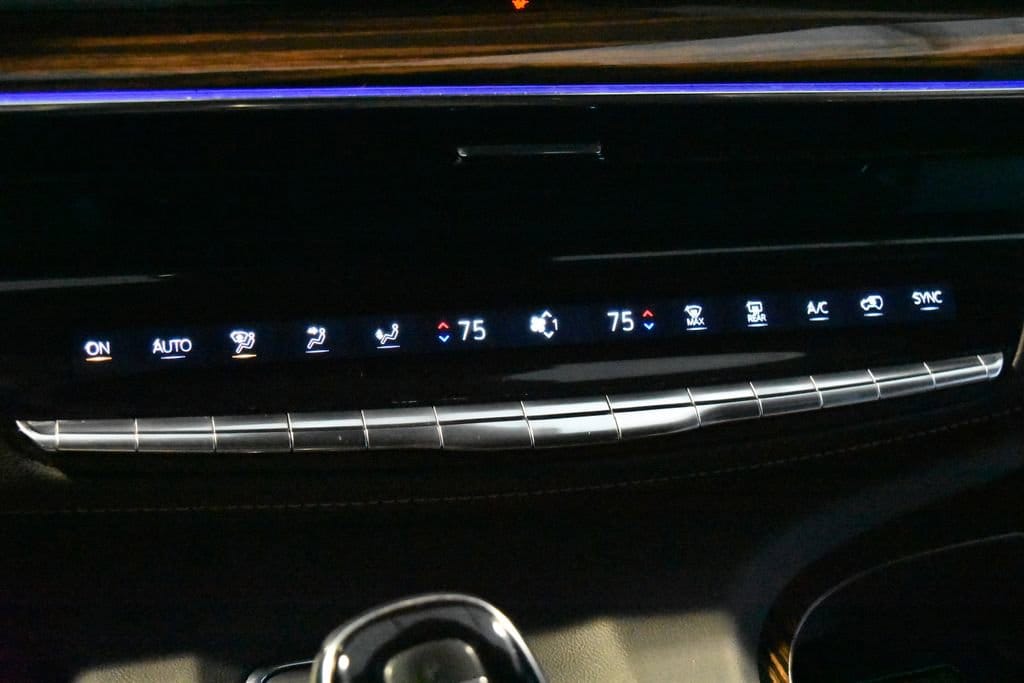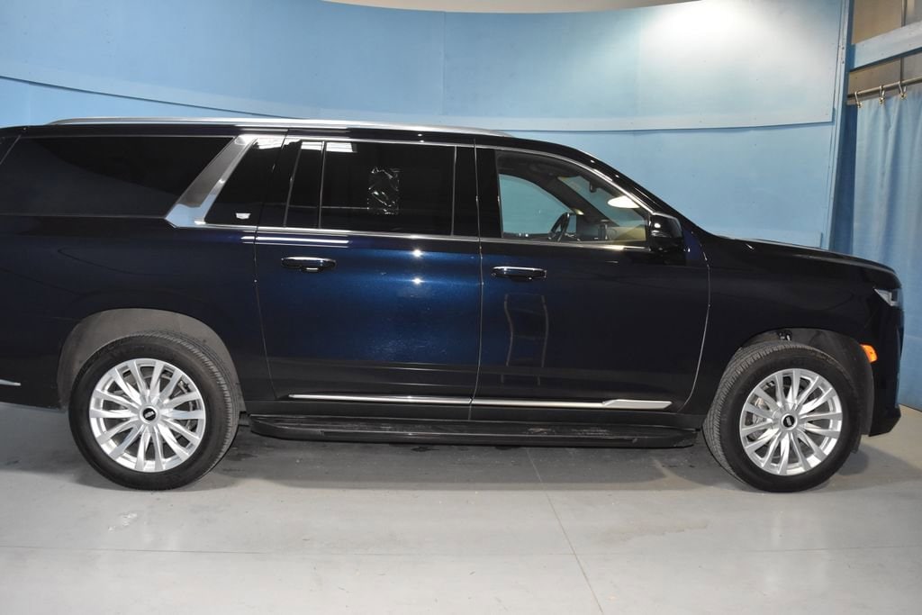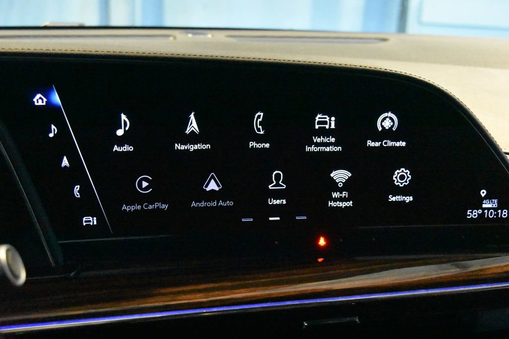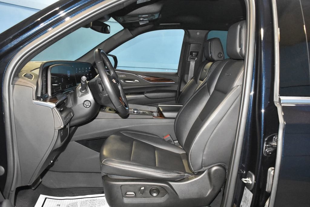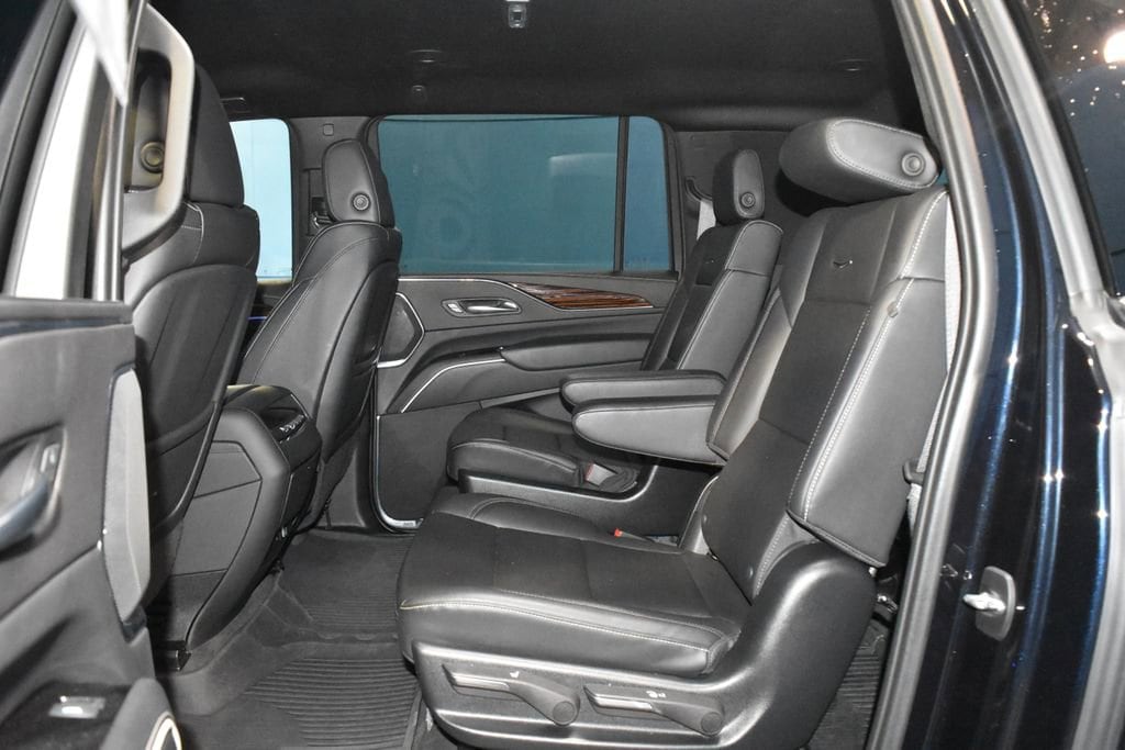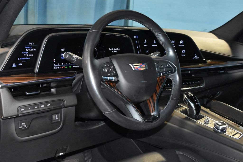 • LICENSE PLATE BRACKET FRONT,REAR AXLE 3.23 RATIO,TRANSMISSION 10-SPEED AUTOMATIC electronically controlled with overdrive tow/haul mode and tap up/tap down shifting (STD),WHEELS 22 (55.9 CM) 14-SPOKE ALLOY WITH BRIGHT SILVER FINISH (STD),DARK MOON BLUE METALLIC,SEATS FRONT BUCKET (Includes 12-way driver and front passenger adjustments. Beginning with start of production vehicles will be forced to include (R6S) Not Equipped with 4-Way Driver and Front Passenger Power Lumbar which removes 4-way driver and front passenger power lumbar. Vehicles will be equipped with 2-way driver and front passenger power lumbar. See dealer for details.) (STD),SEATS SECOND ROW BUCKET POWER RELEASE (STD),WINDOW CONTROL ALL WINDOWS EXPRESS-UP/DOWN (auto Express-Up/Down via key fob) (Beginning with start of production vehicles will be forced to include (00N) Not Equipped with 2nd Row Express-Up Window Control which removes only 2nd Row Express-Up Window Control functionality. See dealer for details or the window label for the features on a specific vehicle.),JET BLACK INTELUXE SEATS (With Linear Tiger wood trim.),3 YEARS OF ONSTAR & CONNECTED SERVICES PLAN see onstar.com for information. Access the entire suite of OnStar Safety & Security Services and Connected Services. For retail customers this includes the OnStar Guardian app 36 months of SiriusXM with 360L connectivity for available In-Vehicle Apps In-Vehicle Wi-Fi Hotspot data and Remote Access through the myCadillac mobile app. Fleet customers will receive OnStar Vehicle Insights instead of Remote Access Eligible vehicles receive 3-years of the OnStar and Connected Services Premium Plan including the Connected Vehicle Plan and the OnStar Safety & Security Plan. Connected Vehicle Plan includes connectivity for available in-vehicle apps Remote Access Plan (excluding Fleet vehicles which will receive OnStar Vehicle Insights) and In-Vehicle Wi-Fi Hotspot data. OnStar Safety & Security Plan includes access to the OnStar Guardian App Automatic Crash Response Emergency Services Crisis Assist Roadside Assistance and Stolen Vehicle Ass,NOT EQUIPPED WITH 4-WAY DRIVER AND FRONT PASSENGER POWER LUMBAR see dealer for details. (Beginning with start of production through December 31 2022 vehicles will be forced to include (R6S) Not Equipped with 4-Way Driver and Front Passenger Power Lumbar which removes 4-way driver and front passenger power lumbar. Vehicles will be equipped with 2-way driver and front passenger power lumbar. See the window label for the features on a specific vehicle.),NOT EQUIPPED WITH 2ND ROW EXPRESS-UP WINDOW CONTROL see dealer for details. (Beginning with start of production vehicles will be forced to include (00N) Not Equipped with 2nd Row Express-Up Window Control which removes only 2nd Row Express-Up Window Control functionality. See the window label for the features on a specific vehicle.),OLED INFOTAINMENT EXPERIENCE WITH NAVIGATION AM/FM/SiriusXM with 360L with 16.9 diagonal color information display (displays and controls navigation music and all features and functions of the vehicle) personalized profiles for each driver's settings Natural Voice Recognition Phone Integration for Wireless Apple CarPlay/Wireless Android Auto capability for compatible phone Connected Apps and Teen Driver (STD),SEAT ADJUSTER FRONT PASSENGER 2-WAY POWER LUMBAR (Beginning with start of production through December 31 2022 vehicles will be forced to include (R6S) Not Equipped with 4-Way Driver and Front Passenger Power Lumbar which removes 4-way driver and front passenger power lumbar. Vehicles will be equipped with 2-way driver and front passenger power lumbar. See dealer for details or the window label for the features on a specific vehicle.),ENGINE 6.2L V8 WITH DYNAMIC FUEL MANAGEMENT Direct Injection and Variable Valve Timing includes aluminum block construction (420 hp [313.2 kW] @ 5600 rpm 460 lb-ft of torque [623.7 Nm] @ 4100 rpm) (STD),LUXURY PREFERRED EQUIPMENT GROUP includes standard equipment,SEAT ADJUSTER DRIVER 2-WAY POWER LUMBAR (Beginning with start of production through December 31 2022 vehicles will be forced to include (R6S) Not Equipped with 4-Way Driver and Front Passenger Power Lumbar which removes 4-way driver and front passenger power lumbar. Vehicles will be equipped with 2-way driver and front passenger power lumbar. See dealer for details or the window label for the features on a specific vehicle.),Keyless Start,Locking/Limited Slip Differential,Four Wheel Drive,Tow Hitch,Air Suspension,Power Steering,ABS,4-Wheel Disc Brakes,Aluminum Wheels,Tires - Front Performance,Tires - Rear Performance,Tires - Front All-Season,Tires - Rear All-Season,Luggage Rack,Running Boards/Side Steps,Automatic Headlights,Automatic Highbeams,Heated Mirrors,Power Mirror(s),Integrated Turn Signal Mirrors,Power Folding Mirrors,Privacy Glass,Intermittent Wipers,Variable Speed Intermittent Wipers,Rain Sensing Wipers,Remote Trunk Release,Power Liftgate,Hands-Free Liftgate,AM/FM Stereo,Navigation System,Satellite Radio,MP3 Capability,Bluetooth ® Connection,Auxiliary Audio Input,Smart Device Integration,Driver Restriction Features,Requires Subscription,Satellite Radio,Requires Subscription,HD Radio,Premium Sound System,Bluetooth ® Connection,WiFi Hotspot,Bluetooth ® Connection,Smart Device Integration,MP3 Capability,Bluetooth ® Connection,Auxiliary Audio Input,Bucket Seats,Bucket Seats,Rear Bucket Seats,Premium Synthetic Seats,Heated Front Seat(s),Heated Rear Seat(s),Power Driver Seat,Power Passenger Seat,Driver Adjustable Lumbar,Passenger Adjustable Lumbar,Adjustable Steering Wheel,Mirror Memory,Seat Memory,3rd Row Seat,Pass-Through Rear Seat,A/C,Rear A/C,Heated Rear Seat(s),Floor Mats,Adjustable Steering Wheel,Heated Steering Wheel,Cruise Control,Steering Wheel Audio Controls,Cruise Control,Steering Wheel Audio Controls,Heated Steering Wheel,Power Door Locks,Keyless Entry,Power Door Locks,Remote Engine Start,Universal Garage Door Opener,Cruise Control,Security 