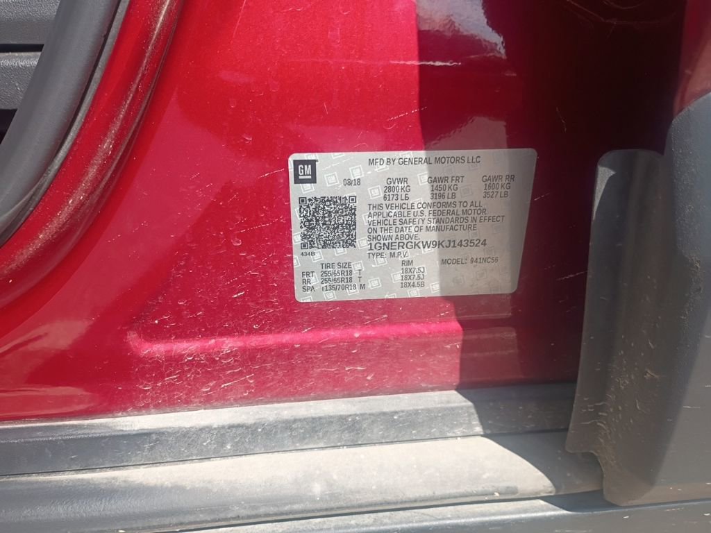 • LT CLOTH PREFERRED EQUIPMENT GROUP Includes Standard Equipment,TRANSMISSION 9-SPEED AUTOMATIC (STD),SEATS HEATED DRIVER AND FRONT PASSENGER,CONVENIENCE AND DRIVER CONFIDENCE PACKAGE includes (IO5) Chevrolet Infotainment with 8 diagonal color touch-screen (UDD) multi-color Driver Information Center display (KA1) heated front seats (UG1) Universal Home Remote (BTV) Remote Start (TB5) rear power liftgate (UKC) Lane Change Alert with Side Blind Zone Alert (UFG) Rear Cross Traffic Alert and (UD7) Rear Park Assist,JET BLACK PREMIUM CLOTH SEAT TRIM,DISPLAY 4.2 DRIVER INSTRUMENT INFORMATION ENHANCED MULTI-COLOR,UNIVERSAL HOME REMOTE INCLUDES GARAGE DOOR OPENER PROGRAMMABLE,REMOTE START,REAR CROSS TRAFFIC ALERT,SEATING 7-PASSENGER (2-2-3 SEATING CONFIGURATION) (STD),WHEELS 18 (45.7 CM) BRIGHT SILVER PAINTED ALUMINUM (STD),CAJUN RED TINTCOAT,REAR PARK ASSIST WITH AUDIBLE WARNING,SEATS FRONT BUCKET (STD),TIRES P255/65R18 ALL-SEASON BLACKWALL (STD),LIFTGATE REAR POWER,LICENSE PLATE FRONT MOUNTING PACKAGE (will be forced on orders with ship-to states that require a front license plate),LANE CHANGE ALERT with Side Blind Zone Alert,ENGINE 3.6L V6 SIDI VVT (310 hp [232.0 kW] @ 6800 rpm 266 lb-ft of torque [361 N-m] @ 2800 rpm) (STD),AUDIO SYSTEM CHEVROLET INFOTAINMENT SYSTEM with 8 diagonal color touch-screen and AM/FM stereo includes Bluetooth streaming audio for music and most phones