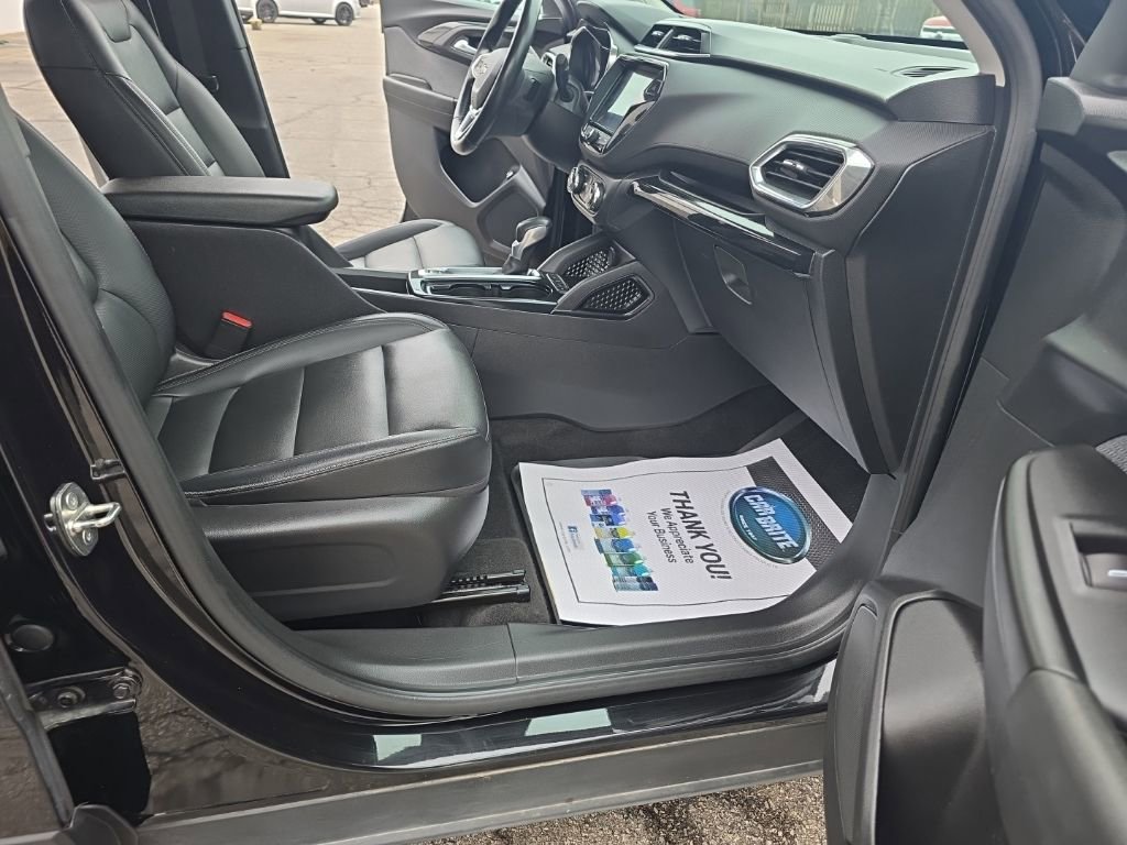 2021 Chevrolet TrailBlazer LT Recent Arrival! We want you to shop confidently for your next used car at D-Patrick Lebanon Ford and We make it EASY! Buy this used vehicle 100% online or in-store, EASY. Saving time at the dealership, EASY! Financing, EASY! Finding the car you love at the price you want, EASY! We also offer extended service plans, vehicle protection plans, and CarFax vehicle history report. *Prices listed do not include a $250 documentation fee, applicable tax, title, tags, license, or $195 service and preparation. All pricing, vehicle information, and features (such as accessories and color) are believed to be accurate, but we do not warrant or guarantee such accuracy. The prices shown above may vary from region to region, and incentives are subject to change. Some offers listed may not be available to all customers. All online sale commitments are subject to confirmation of continued availability of vehicle. Once availability is confirmed, online sale agreement becomes binding upon the parties. If any information found on the website is thought to be erroneous, please verify information with a customer service representative. See dealer for full details. Looking to sell your current vehicle? We buy cars for cash. 1 Type-A & 1 Type-C USB Charging-Only Ports, 120-Volt Power Outlet, 2-Way Power Driver Lumbar Seat Adjuster, 3.17 Axle Ratio, 4-Way Manual Front Passenger Seat Adjuster, 4-Wheel Disc Brakes, 6 Speakers, 6-Speaker Audio System Feature w/Amplifier, 8-Way Power Driver Seat Adjuster, 8" Diagonal Color Touchscreen Display, ABS brakes, Air Conditioning, Alloy wheels, AM/FM radio, Apple CarPlay/Android Auto, Auto High-beam Headlights, Black Grille Bar (LPO), Black Nameplate (LPO), Blackout Package (LPO), Brake assist, Bumpers: body-color, Cabin Humidity Sensor, Cloth Seat Trim, Compass, Convenience Package, Delay-off headlights, Driver & Front Passenger Illuminated Vanity Mirrors, Driver Confidence Package, Driver door bin, Driver vanity mirror, Dual front impact airbags, Dual front side impact airbags, Dual-Pane Panoramic Power Sunroof, Electronic Stability Control, Emergency communication system: OnStar and Chevrolet connected services capable, Exterior Parking Camera Rear, Flat-Folding Front Passenger Seatback, Front & Rear All-Weather Floor Liners (LPO), Front & Rear Black Bowtie Emblems (LPO), Front anti-roll bar, Front Bucket Seats, Front Center Armrest, Front fog lights, Front reading lights, Front wheel independent suspension, Fully automatic headlights, Hands-Free Power Programmable Liftgate, Heated door mirrors, Heated Driver & Front Passenger Seats, Heated front seats, Illuminated entry, Inside Rear-View Auto-Dimming Mirror, Knee airbag, Lane Change Alert w/Side Blind Zone Alert, Leather-Wrapped 3-Spoke Steering Wheel, Leather-Wrapped Shift Knob, Leatherette Seat Trim, Low tire pressure warning, Occupant sensing airbag, Overhead airbag, Overhead console, Panic alarm, Passenger door bin, Passenger vanity mirror, Power door mirrors, Power driver seat, Power steering, Power windows, Preferred Equipment Group 1LT, Premium Seating Package, Radio data system, Radio: Chevrolet Infotainment 3 System, Rear Center Armrest, Rear Cross Traffic Alert, Rear Park Assist, Rear side impact airbag, Rear window defroster, Rear window wiper, Remote keyless entry, Ride & Handling Suspension, Roof rack: rails only, Security system, Single-Zone Auto Climate Control Air Conditioning, SiriusXM Radio, Speed control, Split folding rear seat, Spoiler, Steering wheel mounted audio controls, Sun & Liftgate Package, Tachometer, Telescoping steering wheel, Tilt steering wheel, Traction control, Trip computer, Variably intermittent wipers, Wheels: 17" High Gloss Black Machined Aluminum, Wireless Apple CarPlay/Android Auto. CARFAX One-Owner. Clean CARFAX. 4D Sport Utility LT 9-Speed Automatic 1.3L Ecotec Turbo DOHC SIDI w/VVT AWD Mosaic Black Metallic CALL US TODAY BEFORE THIS ONE GETS AWAY-- (765) 204-6248 or shop online at www.dp