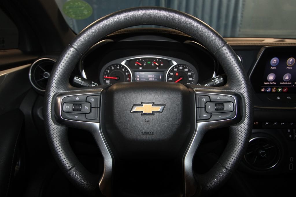 2022 Chevrolet Blazer LT We want you to shop confidently for your next used car at The BIG Ford Store, D-Patrick Ford. We are located on Highway 41 and Walnut in Evansville, right next to the Lloyd Expressway. Buy this used vehicle 100% online or in-store. This pre-owned vehicle was put through an extensive inspection before hitting our lot. Because of this, we are able to offer a 3-month/3,000-mile comprehensive limited warranty. You also get our Love It or Return It 5-day, 300-mile Exchange Policy. See our website for more details on both. We also offer extended service plans, vehicle protection plans, and offer a CarFax vehicle history report. *Prices listed do not include a $250 documentation fee, applicable tax, title, tags, license, or $195 service and preparation. All pricing, vehicle information, and features (such as accessories and color) are believed to be accurate, but we do not warrant or guarantee such accuracy. The prices shown above may vary from region to region, and incentives are subject to change. Some offers listed may not be available to all customers. All online sale commitments are subject to confirmation of continued availability of vehicle. Once availability is confirmed, online sale agreement becomes binding upon the parties. If any information found on the website is thought to be erroneous, please verify information with a customer service representative. See dealer for full details. Looking to sell your current vehicle? We buy cars for cash. Every test drive at D-Patrick Ford in Evansville earns $10 to a local charity. Schedule your test drive today! 170 Amp Alternator, 3.47 Final Drive Axle Ratio, 4-Wheel Disc Brakes, 6 Speakers, 6-Speaker Audio System Feature, ABS brakes, Air Conditioning, Alloy wheels, AM/FM radio: SiriusXM, Apple CarPlay/Android Auto, Auto High-beam Headlights, Automatic temperature control, Black Roof Rails, Brake assist, Bumpers: body-color, Child-Seat-Sensing Airbag, Compass, Convenience & Driver Confidence Package, Delay-off headlights, Driver door bin, Driver vanity mirror, Dual front impact airbags, Dual front side impact airbags, Electronic Stability Control, Emergency communication system: OnStar and Chevrolet connected services capable, Exterior Parking Camera Rear, Four wheel independent suspension, Front anti-roll bar, Front Bucket Seats, Front Center Armrest, Front dual zone A/C, Front reading lights, Fully automatic headlights, Heated door mirrors, Heated Driver & Front Passenger Seats, High-Intensity Discharge Headlights, Illuminated entry, Inside Rear-View Auto-Dimming Mirror, Knee airbag, Lane Change Alert w/Side Blind Zone Alert, Leather Shift Knob, Low tire pressure warning, Not Equipped w/Rear Park Assist, Occupant sensing airbag, Outside Heated Power-Adjustable Body-Color Mirrors, Outside temperature display, Overhead airbag, Overhead console, Panic alarm, Passenger door bin, Passenger vanity mirror, Power door mirrors, Power driver seat, Power steering, Power windows, Preferred Equipment Group 2LT, Premium Cloth Seat Trim, Radio data system, Radio: Chevrolet Infotainment 3 System, Rear anti-roll bar, Rear Cross Traffic Alert, Rear Park Assist w/Audible Warning, Rear Power Programmable Liftgate, Rear reading lights, Rear seat center armrest, Rear window defroster, Rear window wiper, Remote keyless entry, Remote Start, Ride & Handling Suspension, Security system, SiriusXM Radio, Speed control, Speed-sensing steering, Split folding rear seat, Spoiler, Steering wheel mounted audio controls, Tachometer, Telescoping steering wheel, Tilt steering wheel, Traction control, Trip computer, Universal Home Remote, Variably intermittent wipers, Voltmeter, Wheels: 18 Bright Silver Aluminum. CARFAX One-Owner. Clean CARFAX. 4D Sport Utility LT 9-Speed Automatic with Overdrive 2.0L Turbocharged FWD Black CALL TODAY (812) 625-4823 OR SHOP ONLINE AT WWW.DPATRICKFORD.COM.