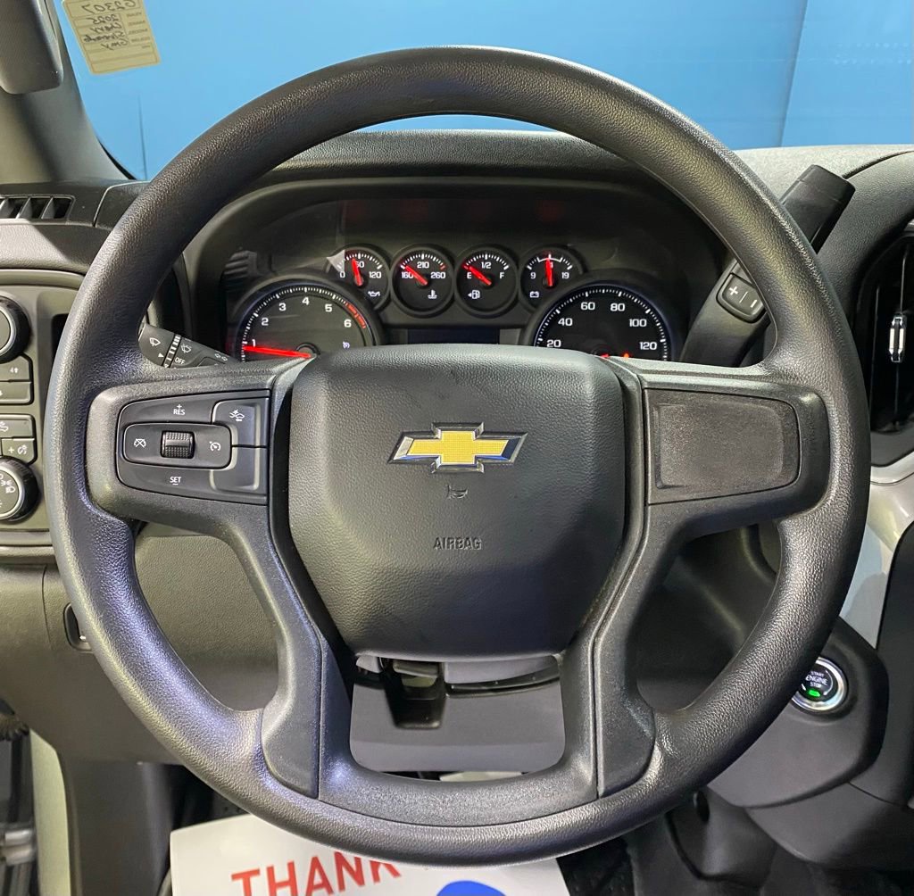 • SKID PLATES protect the oil pan front axle and transfer case,CUSTOM PREFERRED EQUIPMENT GROUP includes standard equipment,SNOW PLOW PREP/CAMPER PACKAGE includes (KW5) 220-amp alternator includes increased front GAWR on Heavy Duty models (NZZ) skid plates (transfer case and oil pan) pass through dash grommet hole and roof emergency light provisions.,HILL DESCENT CONTROL,CHEVYTEC SPRAY-ON BEDLINER Black (does not include spray-on liner on tailgate due to Black composite inner panel),TRANSMISSION ALLISON 10-SPEED AUTOMATIC (STD),JET BLACK CLOTH SEAT TRIM,SEATS FRONT 40/20/40 SPLIT-BENCH with covered armrest storage and under-seat storage (lockable) (STD),ENGINE 6.6L V8 with Direct Injection and Variable Valve Timing gasoline (401 hp [299 kW] @ 5200 rpm 464 lb-ft of torque [629 N-m] @ 4000 rpm) (STD),WHEELS 20 (50.8 CM) MACHINED ALUMINUM with Grazen Metallic painted accents 10-spoke (STD),GOOSENECK/5TH WHEEL PREP PACKAGE Hitch platform to accept Gooseneck or 5th Wheel hitch. Includes hitch platform with tray to accept ball stamped bed holes with removable caps installed and bed mounted 7-pin trailer harness (similar to UY2 harness). (Includes (CGN) Chevytec spray-on bedliner.),STERLING GRAY METALLIC,AUDIO SYSTEM CHEVROLET INFOTAINMENT 3 SYSTEM 7 diagonal HD color touchscreen AM/FM stereo Bluetooth audio streaming for 2 active devices voice command pass-through to phone Wireless Apple CarPlay and Wireless Android Auto compatibility (STD),Z71 OFF-ROAD PACKAGE includes (Z71) Off-Road suspension with off-road tuned twin tube Rancho shocks (JHD) Hill Descent Control and (NZZ) skid plates (transfer case and oil pan),ALTERNATOR 220 AMPS,REAR AXLE 3.73 RATIO,LPO ASSIST STEPS - 4 BLACK - ROUND (dealer-installed),GVWR 10 850 LBS. (4921 KG),Tow Hitch,Keyless Start,Locking/Limited Slip Differential,Four Wheel Drive,Tow Hooks,Power Steering,ABS,4-Wheel Disc Brakes,Aluminum Wheels,Tires - Front All-Terrain,Tires - Rear All-Terrain,Conventional Spare Tire,Daytime Running Lights,Automatic Highbeams,Heated Mirrors,Power Mirror(s),Integrated Turn Signal Mirrors,Privacy Glass,AM/FM Stereo,MP3 Capability,Bluetooth Connection,Auxiliary Audio Input,Smart Device Integration,Requires Subscription,Satellite Radio,Requires Subscription,Bluetooth Connection,Smart Device Integration,Bluetooth Connection,WiFi Hotspot,Split Bench Seat,Cloth Seats,Pass-Through Rear Seat,Rear Bench Seat,Floor Mats,Floor Mats,Adjustable Steering Wheel,Power Windows,Power Windows,Power Door Locks,Keyless Entry,Power Door Locks,Cruise Control,MP3 Capability,Auxiliary Audio Input,Power Outlet,A/C,A/C,Rear A/C,Front Collision Mitigation,Front Collision Warning,Front Collision Mitigation,Traction Control,Stability Control,Daytime Running Lights,Driver Air Bag,Passenger Air Bag,Front Side Air Bag,Front Head Air Bag,Rear Head Air Bag,Passenger Air Bag Sensor,Telematics,Requires Subscription,Back-Up Camera,Lane Departure Warning,Front Collision Warning,Driver Restriction Features,Tire Pressure Monitor,Navigation System,Telematics,Requires Subscription