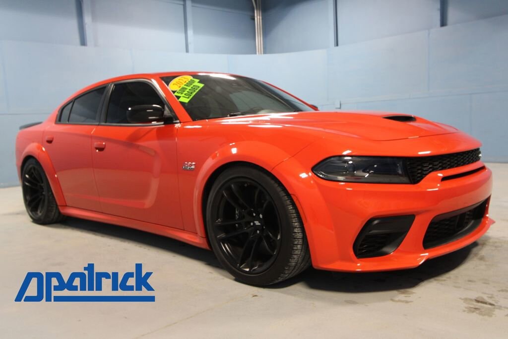 2023 Dodge Charger R/T Scat Pack Widebody Recent Arrival! We want you to shop confidently for your next used car at The BIG Ford Store, D-Patrick Ford. We are located on Highway 41 and Walnut in Evansville, right next to the Lloyd Expressway. Buy this used vehicle 100% online or in-store. This pre-owned vehicle was put through an extensive inspection before hitting our lot. Because of this, we are able to offer a 3-month/3,000-mile comprehensive limited warranty. You also get our Love It or Return It 5-day, 300-mile Exchange Policy. See our website for more details on both. We also offer extended service plans, vehicle protection plans, and offer a free to you CarFax vehicle history report. *Prices listed do not include a $250 documentation fee, applicable tax, title, tags, license, or $195 service and preparation. All pricing, vehicle information, and features (such as accessories and color) are believed to be accurate, but we do not warrant or guarantee such accuracy. The prices shown above may vary from region to region, and incentives are subject to change. Some offers listed may not be available to all customers. All online sale commitments are subject to confirmation of continued availability of vehicle. Once availability is confirmed, online sale agreement becomes binding upon the parties. If any information found on the website is thought to be erroneous, please verify information with a customer service representative. See dealer for full details. Looking to sell your current vehicle? We buy cars for cash. Every test drive at D-Patrick Ford in Evansville earns $10 to a local charity. Schedule your test drive today! Black Artificial Leather, 1-Yr SiriusXM Guardian Trial, 19 harman/kardon GreenEdge Speakers, 2-Piece Shark Fin Antenna, 4-Wheel Disc Brakes, 4G LTE Wi-Fi Hot Spot, 5-Year SiriusXM Traffic Service, 6 Speakers, 8.4 Touchscreen Display, ABS brakes, Adaptive Damping Suspension (DISC), Air Conditioning, Alloy wheels, AM/FM radio: SiriusXM, Anti-whiplash front head restraints, Apple CarPlay, Apple CarPlay/Android Auto, Auto-Dimming Exterior Driver Mirror, Auto-dimming Rear-View mirror, Automatic temperature control, Blind Spot & Cross Path Detection, Blind Spot Memory/Power/Heat Mirror, Body Color Fender Flares, Brake assist, Brembo 6-Pot Fixed Front Caliper Brakes, Bumpers: body-color, Carbon/Suede Interior Package, Cloth Performance Seats w/Heat, Compass, Delay-off headlights, Driver door bin, Driver vanity mirror, Dual front impact airbags, Dual front side impact airbags, Electronic Stability Control, Emergency communication system: SiriusXM Guardian, Exterior Mirrors Courtesy Lamps, Exterior Mirrors w/Heating Element, For Details, Visit DriveUconnect.com, Four wheel independent suspension, Front anti-roll bar, Front Bucket Seats, Front Center Armrest, Front dual zone A/C, Front fog lights, Front Overhead LED Lighting, Front reading lights, Fully automatic headlights, Garage door transmitter: HomeLink, Google Android Auto, GPS Antenna Input, GPS Navigation, harman/kardon Audio Group, harman/kardon GreenEdge Amp, HD Radio, Heated door mirrors, Heated Front Seats, Heated front seats, Heated steering wheel, Illuminated entry, Integrated Center Stack Radio, Integrated Voice Command w/Bluetooth, Knee airbag, Leather Shift Knob, Low tire pressure warning, Media Hub (2 USB, AUX), Navigation & Travel Group, Occupant sensing airbag, Outside temperature display, Overhead airbag, Overhead console, Panic alarm, ParkView Rear Back-Up Camera, Passenger door bin, Passenger vanity mirror, Performance Shift Indicator, Plus Group, Power 2-Way Driver Lumbar Adjust, Power 2-Way Passenger Lumbar Adjust, Power door mirrors, Power driver seat, Power Front Driver/Passenger Seats, Power steering, Power Sunroof, Power Tilt/Telescope Steering Column, Power windows, Premium-Stitched Dash Panel, Quick Order Package 21V Scat Pack Widebody, Radio: Uconnect 4C Nav w/8.4 Display, Radio: Uconnect 4C w/8.4 Display, Rear anti-roll bar, Rear A