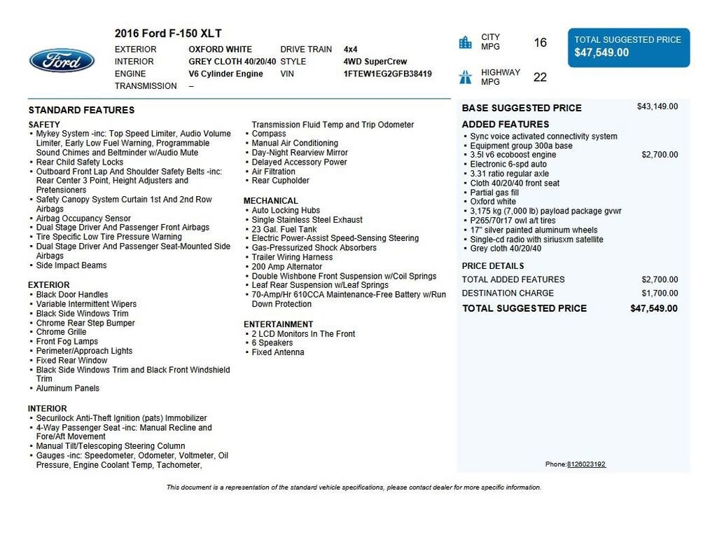 2016 Ford F-150 XLT We want you to shop confidently for your next used car at The BIG Ford Store, D-Patrick Ford. We are located on Highway 41 and Walnut in Evansville, right next to the Lloyd Expressway.