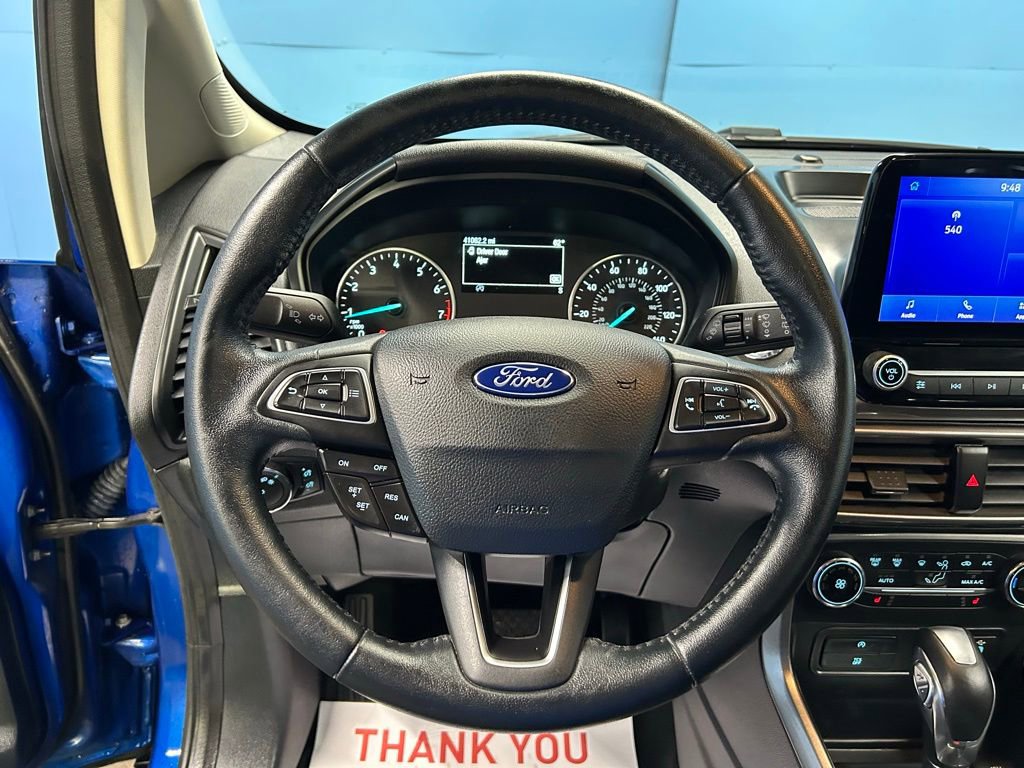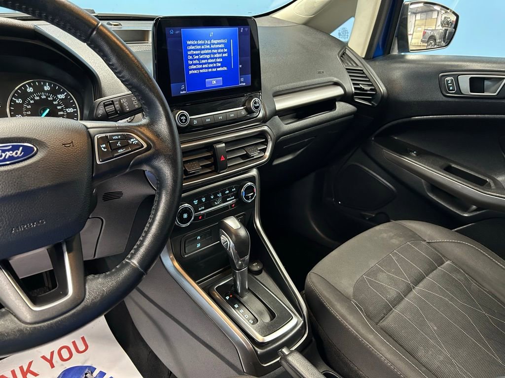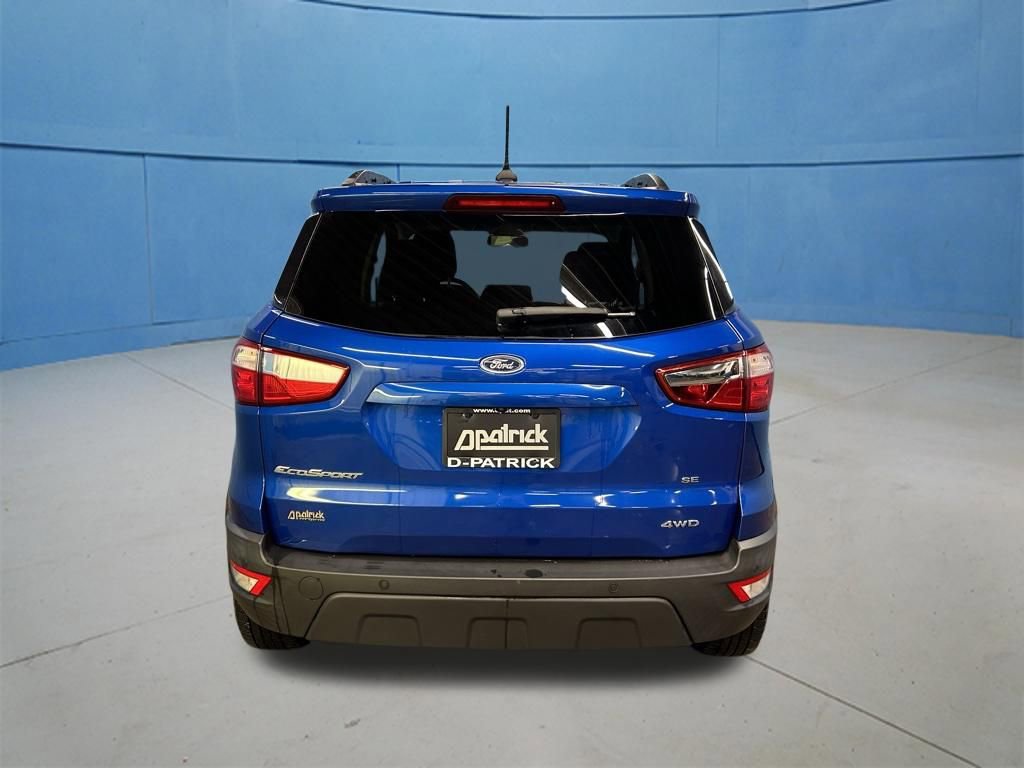 2020 Ford EcoSport SE Recent Arrival! We want you to shop confidently for your next used car at D-Patrick Lebanon Ford and We make it EASY! Buy this used vehicle 100% online or in-store, EASY. Saving time at the dealership, EASY! Financing, EASY! Finding the car you love at the price you want, EASY! This pre-owned vehicle was put through an extensive inspection before hitting our lot. Because of this, we are able to offer a 3-month/3,000-mile comprehensive limited warranty. You also get our Love It or Return It 5-day, 300-mile Exchange Policy. See our website for more details on both. We also offer extended service plans, vehicle protection plans, and CarFax vehicle history report. *Prices listed do not include a $250 documentation fee, applicable tax, title, tags, license, or $195 service and preparation. All pricing, vehicle information, and features (such as accessories and color) are believed to be accurate, but we do not warrant or guarantee such accuracy. The prices shown above may vary from region to region, and incentives are subject to change. Some offers listed may not be available to all customers. All online sale commitments are subject to confirmation of continued availability of vehicle. Once availability is confirmed, online sale agreement becomes binding upon the parties. If any information found on the website is thought to be erroneous, please verify information with a customer service representative. See dealer for full details. Looking to sell your current vehicle? We buy cars for cash. 3.51 Axle Ratio, 4-Wheel Disc Brakes, 6 Speakers, ABS brakes, Air Conditioning, Alloy wheels, AM/FM radio: SiriusXM, AppLink/Apple CarPlay and Android Auto, Automatic temperature control, Brake assist, Bumpers: body-color, Compass, Delay-off headlights, Driver door bin, Driver vanity mirror, Dual front impact airbags, Dual front side impact airbags, Electronic Stability Control, Emergency communication system: SYNC 3 911 Assist, Equipment Group 200A, Exterior Parking Camera Rear, Front anti-roll bar, Front Bucket Seats, Front Center Armrest, Front fog lights, Front reading lights, Front wheel independent suspension, Fully automatic headlights, Heated front seats, Illuminated entry, Knee airbag, Leather Shift Knob, Leather steering wheel, Low tire pressure warning, Occupant sensing airbag, Outside temperature display, Overhead airbag, Overhead console, Panic alarm, Passenger door bin, Passenger vanity mirror, Power door mirrors, Power driver seat, Power moonroof, Power steering, Power windows, Radio data system, Radio: AM/FM Stereo w/MP3 Capable, Rear anti-roll bar, Rear Parking Sensors, Rear seat center armrest, Rear side impact airbag, Rear window defroster, Rear window wiper, Remote keyless entry, Roof rack: rails only, SiriusXM Radio, Speed control, Speed-sensing steering, Split folding rear seat, Steering wheel mounted audio controls, SYNC 3 Communications & Entertainment System, Tachometer, Telescoping steering wheel, Tilt steering wheel, Tire Inflator & Sealant Kit, Traction control, Trip computer, Turn signal indicator mirrors, Unique Cloth Heated Front Bucket Seats, Variably intermittent wipers, Wheels: 16" Shadow Silver-Painted Aluminum. Clean CARFAX. 4D Sport Utility SE 6-Speed Automatic 2.0L I4 Ti-VCT GDI 4WD Lightning Blue CALL US TODAY BEFORE THIS ONE GETS AWAY-- (765) 204-6248 or shop online at www.dpatricklebanonford.com.