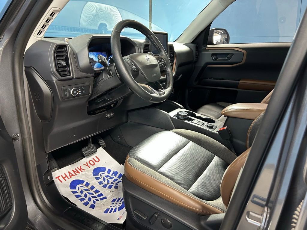 2021 Ford Bronco Sport Outer Banks We want you to shop confidently for your next used car at D-Patrick Lebanon Ford and We make it EASY! Buy this used vehicle 100% online or in-store, EASY. Saving time at the dealership, EASY! Financing, EASY! Finding the car you love at the price you want, EASY! This pre-owned vehicle was put through an extensive inspection before hitting our lot. Because of this, we are able to offer a 3-month/3,000-mile comprehensive limited warranty. You also get our Love It or Return It 5-day, 300-mile Exchange Policy. See our website for more details on both. We also offer extended service plans, vehicle protection plans, and CarFax vehicle history report. *Prices listed do not include a $250 documentation fee, applicable tax, title, tags, license, or $195 service and preparation. All pricing, vehicle information, and features (such as accessories and color) are believed to be accurate, but we do not warrant or guarantee such accuracy. The prices shown above may vary from region to region, and incentives are subject to change. Some offers listed may not be available to all customers. All online sale commitments are subject to confirmation of continued availability of vehicle. Once availability is confirmed, online sale agreement becomes binding upon the parties. If any information found on the website is thought to be erroneous, please verify information with a customer service representative. See dealer for full details. Looking to sell your current vehicle? We buy cars for cash. 3.80 Axle Ratio, 4-Wheel Disc Brakes, 6 Speakers, ABS brakes, Air Conditioning, Alloy wheels, AM/FM radio: SiriusXM, AM/FM Stereo, Auto High-beam Headlights, Auto-dimming Rear-View mirror, Automatic temperature control, Brake assist, Compass, Delay-off headlights, Driver door bin, Driver vanity mirror, Dual front impact airbags, Dual front side impact airbags, Electronic Stability Control, Emergency communication system: SYNC 3 911 Assist, Equipment Group 300A, Exterior Parking Camera Rear, Four wheel independent suspension, Front anti-roll bar, Front Bucket Seats, Front Center Armrest, Front dual zone A/C, Front fog lights, Front reading lights, Fully automatic headlights, HD Radio, Heated door mirrors, Heated front seats, Heated steering wheel, Illuminated entry, Knee airbag, Leather Trimmed Heated Sport Contour Bucket Seats, Low tire pressure warning, Occupant sensing airbag, Outer Banks Package (DISC), Outside temperature display, Overhead airbag, Overhead console, Panic alarm, Passenger door bin, Passenger vanity mirror, Power door mirrors, Power driver seat, Power Moonroof, Power passenger seat, Power steering, Power windows, Radio data system, Rain sensing wipers, Rear anti-roll bar, Rear Parking Sensors, Rear reading lights, Rear seat center armrest, Rear window defroster, Rear window wiper, Remote keyless entry, Roof rack: rails only, Security system, SiriusXM Radio, Speed control, Speed-sensing steering, Speed-Sensitive Wipers, Split folding rear seat, Steering wheel mounted audio controls, SYNC 3 Communications & Entertainment System, SYNC 3/Apple CarPlay/Android Auto, Tachometer, Telescoping steering wheel, Tilt steering wheel, Traction control, Trip computer, Variably intermittent wipers, Wheels: 18" Ebony Black-Painted Aluminum, Wireless Charging Pad. CARFAX One-Owner. 4D Sport Utility Outer Banks 8-Speed Automatic 1.5L EcoBoost 4WD Gray Metallic CALL US TODAY BEFORE THIS ONE GETS AWAY-- (765) 204-6248 or shop online at www.dpatricklebanonford.com.