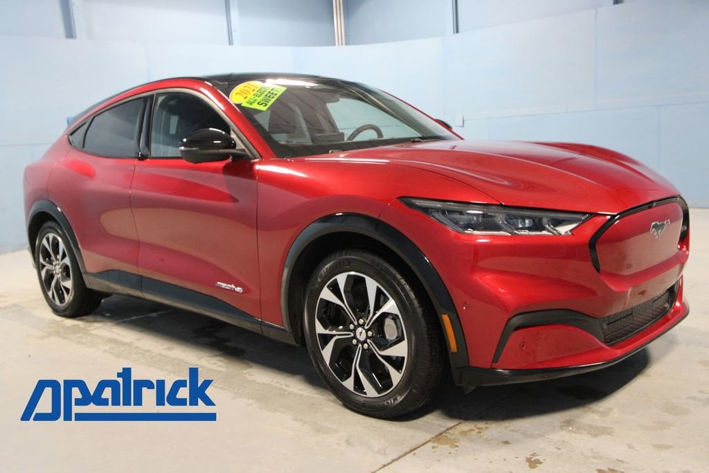 2021 Ford Mustang Mach-E Premium We want you to shop confidently for your next used car at The BIG Ford Store, D-Patrick Ford. We are located on Highway 41 and Walnut in Evansville, right next to the Lloyd Expressway. Buy this used vehicle 100% online or in-store. This pre-owned vehicle was put through an extensive inspection before hitting our lot. Because of this, we are able to offer a 3-month/3,000-mile comprehensive limited warranty. You also get our Love It or Return It 5-day, 300-mile Exchange Policy. See our website for more details on both. We also offer extended service plans, vehicle protection plans, and offer a CarFax vehicle history report. *Prices listed do not include a $250 documentation fee, applicable tax, title, tags, license, or $195 service and preparation. All pricing, vehicle information, and features (such as accessories and color) are believed to be accurate, but we do not warrant or guarantee such accuracy. The prices shown above may vary from region to region, and incentives are subject to change. Some offers listed may not be available to all customers. All online sale commitments are subject to confirmation of continued availability of vehicle. Once availability is confirmed, online sale agreement becomes binding upon the parties. If any information found on the website is thought to be erroneous, please verify information with a customer service representative. See dealer for full details. Looking to sell your current vehicle? We buy cars for cash. Every test drive at D-Patrick Ford in Evansville earns $10 to a local charity. Schedule your test drive today! 10 Speakers, 4-Wheel Disc Brakes, ABS brakes, Air Conditioning, Alloy wheels, AM/FM radio: SiriusXM, AM/FM Stereo, Apple CarPlay/Android Auto, Auto High-beam Headlights, Auto-dimming Rear-View mirror, Automatic temperature control, Axle Ratio: 9.05, Brake assist, Bumpers: body-color, Compass, Delay-off headlights, Driver door bin, Driver vanity mirror, Dual front impact airbags, Dual front side impact airbags, Electronic Stability Control, Emergency communication system: 911 Assist, Equipment Group 300A, Exterior Parking Camera Rear, Four wheel independent suspension, Front anti-roll bar, Front Bucket Seats, Front Center Armrest, Front dual zone A/C, Front reading lights, Fully automatic headlights, Garage door transmitter, Heated door mirrors, Heated front seats, Heated Perforated ActiveX Bucket Seats, Heated steering wheel, Illuminated entry, Knee airbag, Low tire pressure warning, Memory seat, Navigation system: Connected Navigation, Occupant sensing airbag, Outside temperature display, Overhead airbag, Overhead console, Panic alarm, Passenger door bin, Passenger vanity mirror, Power door mirrors, Power driver seat, Power Liftgate, Power passenger seat, Power steering, Power windows, Radio data system, Rain sensing wipers, Rear anti-roll bar, Rear seat center armrest, Rear side impact airbag, Rear window defroster, Rear window wiper, Remote keyless entry, Security system, SiriusXM Radio w/360L, Speed control, Speed-sensing steering, Speed-Sensitive Wipers, Split folding rear seat, Spoiler, Steering wheel mounted audio controls, SYNC 4A w/Enhanced Voice Recognition, Telescoping steering wheel, Tilt steering wheel, Traction control, Trip computer, Turn signal indicator mirrors, Variably intermittent wipers, Wheels: 19 Machined-Face Aluminum. 4D Sport Utility Premium Single-Speed Automatic Dual Electric Motor AWD Red Metallic CALL TODAY (812) 625-4823 OR SHOP ONLINE AT WWW.DPATRICKFORD.COM.