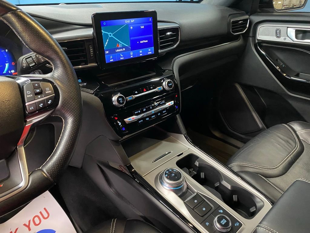 2022 Ford Explorer ST We want you to shop confidently for your next used car at D-Patrick Lebanon Ford and We make it EASY! Buy this used vehicle 100% online or in-store, EASY. Saving time at the dealership, EASY! Financing, EASY! Get pre-approved online or in-store with one of our many lenders, EASY. Finding the car you love at the price you want, EASY! We also offer extended service plans, vehicle protection plans, and offer a free to you CarFax vehicle history report. *Prices listed do not include a $250 documentation fee, applicable tax, title, tags, license, or $195 service and preparation. All pricing, vehicle information, and features (such as accessories and color) are believed to be accurate, but we do not warrant or guarantee such accuracy. The prices shown above may vary from region to region, and incentives are subject to change. Some offers listed may not be available to all customers. All online sale commitments are subject to confirmation of continued availability of vehicle. Once availability is confirmed, online sale agreement becomes binding upon the parties. If any information found on the website is thought to be erroneous, please verify information with a customer service representative. See dealer for full details. Looking to sell your current vehicle? We buy cars for cash. 4WD, 110V/150W AC Power Outlet, 1st Row Heated Seats, 20" Machined Aluminum w/Painted Pockets Wheels, 3.58 Non-Limited-Slip Rear Axle Ratio, 360-Degree Camera w/Split View, 3rd row seats: bench, 4-Wheel Disc Brakes, 6 Speakers, ABS brakes, Air Conditioning, Alloy wheels, AM/FM radio: SiriusXM, AM/FM Stereo, Auto High-beam Headlights, Auto-Dimming Rearview Mirror (Interior), Automatic temperature control, Black Roof-Rack Side Rails, Brake assist, Bumpers: body-color, Cargo Area Management System, Compass, Delay-off headlights, Driver door bin, Driver vanity mirror, Dual front impact airbags, Dual front side impact airbags, Electronic Stability Control, Emergency communication system: SYNC 3 911 Assist, Equipment Group 401A, Evasive Steering Assist, Exterior Parking Camera Rear, Ford Co-Pilot360 Assist+, FordPass Connect, Four wheel independent suspension, Front & Second Row Floor Liners (16B), Front anti-roll bar, Front Bucket Seats, Front Center Armrest, Front dual zone A/C, Front fog lights, Front Parking Sensors, Front Rain-Sensing Wipers, Front reading lights, Fully automatic headlights, Hands-Free Foot-Activated Liftgate, Heated door mirrors, Heated front seats, Heated steering wheel, Illuminated entry, Intelligent Adaptive Cruise Control, Knee airbag, Leather steering wheel, Low tire pressure warning, Memory Driver's Seat, Memory seat, Occupant sensing airbag, Outside temperature display, Overhead airbag, Overhead console, Panic alarm, Passenger door bin, Passenger vanity mirror, Performance Front & Rear Brakes, Power door mirrors, Power driver seat, Power Liftgate, Power passenger seat, Power steering, Power Tilt/Telescoping Steering Column, Power windows, Radio: B&O Sound System by Bang & Olufsen, Rear air conditioning, Rear anti-roll bar, Rear Auxiliary Controls Credit, Rear reading lights, Rear window defroster, Rear window wiper, Remote keyless entry, Reverse Brake Assist, Second Row Heated Seats, Security system, SelectShift Capability w/Paddle Shifters, Sideview Mirrors w/Gloss Black Caps, Speed control, Speed Sign Recognition, Speed-sensing steering, Speed-Sensitive Wipers, Split folding rear seat, Spoiler, Sport steering wheel, ST High Package, ST Street Pack, Steering wheel mounted audio controls, SYNC 3 Communications & Entertainment System, SYNC 3/Apple CarPlay/Android Auto, Tachometer, Telescoping steering wheel, Third Row PowerFold (Folds Flat), Tilt steering wheel, Traction control, Trip computer, Universal Garage Door Opener (UGDO), Variably intermittent wipers, Ventilated front seats, Voice-Activated Touchscreen Navigation System, Wheels: 21" Aluminum, Wireless Charging Pad, 4WD. CARFAX One-Owner. 4D Sport Utility