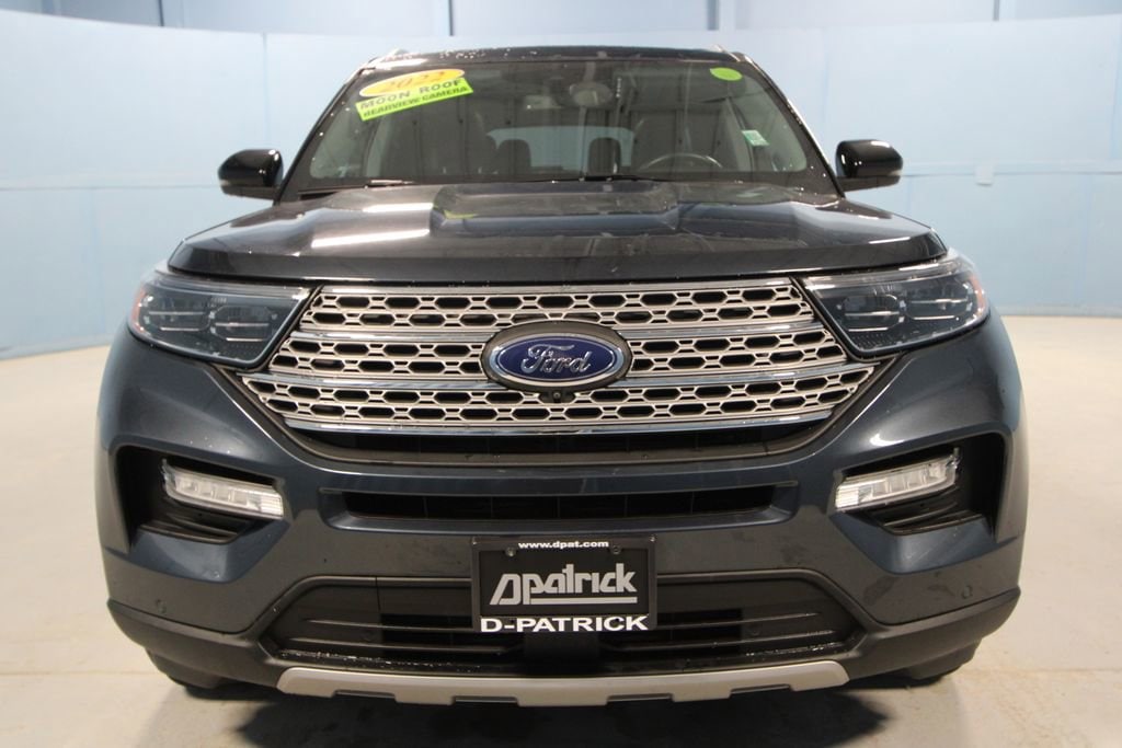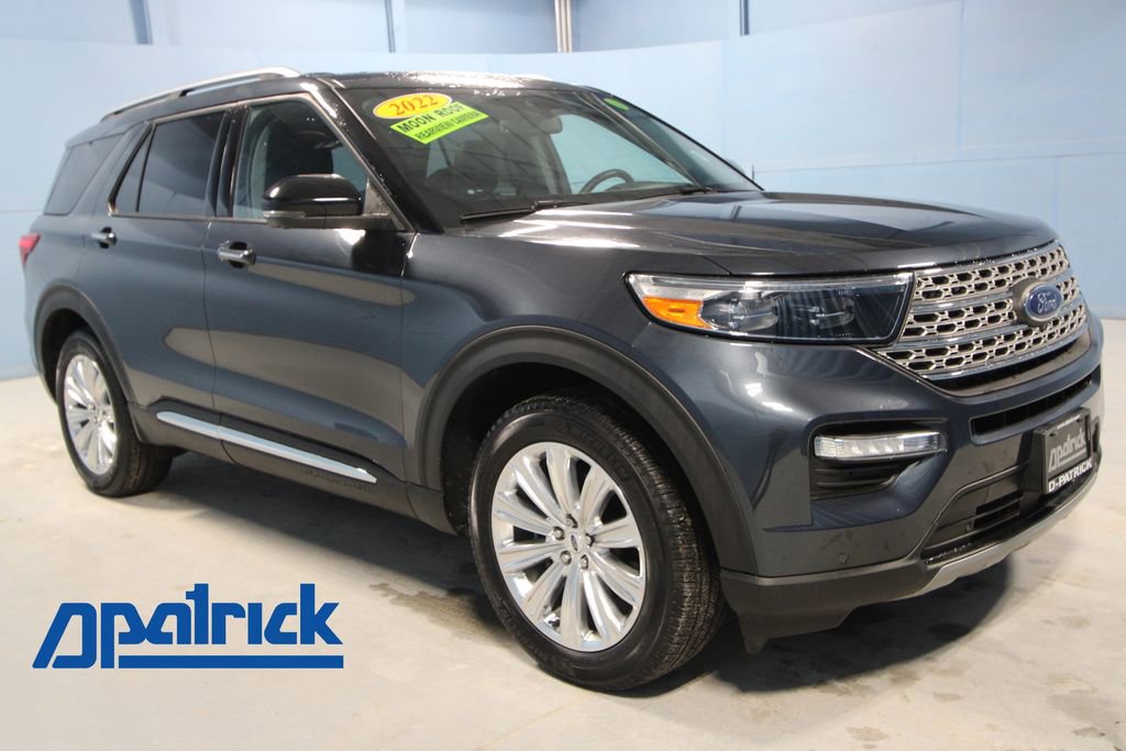 2022 Ford Explorer Limited We want you to shop confidently for your next used car at The BIG Ford Store, D-Patrick Ford. We are located on Highway 41 and Walnut in Evansville, right next to the Lloyd Expressway. Buy this used vehicle 100% online or in-store. This pre-owned vehicle was put through an extensive inspection before hitting our lot. Because of this, we are able to offer a 3-month/3,000-mile comprehensive limited warranty. You also get our Love It or Return It 5-day, 300-mile Exchange Policy. See our website for more details on both. We also offer extended service plans, vehicle protection plans, and offer a CarFax vehicle history report. *Prices listed do not include a $250 documentation fee, applicable tax, title, tags, license, or $195 service and preparation. All pricing, vehicle information, and features (such as accessories and color) are believed to be accurate, but we do not warrant or guarantee such accuracy. The prices shown above may vary from region to region, and incentives are subject to change. Some offers listed may not be available to all customers. All online sale commitments are subject to confirmation of continued availability of vehicle. Once availability is confirmed, online sale agreement becomes binding upon the parties. If any information found on the website is thought to be erroneous, please verify information with a customer service representative. See dealer for full details. Looking to sell your current vehicle? We buy cars for cash. Every test drive at D-Patrick Ford in Evansville earns $10 to a local charity. Schedule your test drive today! 4WD, 110V/150W AC Power Outlet, 12 Speakers, 1st Row Heated Seats, 20 Premium Painted Aluminum Wheels, 3.58 Non-Limited-Slip Rear Axle Ratio, 3rd Row PowerFold Seat, 3rd row seats: bench, 4-Wheel Disc Brakes, 4G LTE Wi-Fi Hotspot Removal Credit, ABS brakes, Air Conditioning, Alloy wheels, AM/FM radio: SiriusXM, Auto High-beam Headlights, Auto Start-Stop Removal, Auto-dimming Rear-View mirror, Automatic temperature control, Brake assist, Bumpers: body-color, Class IV Trailer Tow Package, Compass, Delay-off headlights, Driver door bin, Driver vanity mirror, Dual front impact airbags, Dual front side impact airbags, Electronic Stability Control, Emergency communication system: SYNC 3 911 Assist, Equipment Group 301A, Exterior Parking Camera Rear, FordPass Connect, Four wheel independent suspension, Front & Second Row Floor Liners (16A), Front anti-roll bar, Front Bucket Seats, Front Center Armrest, Front dual zone A/C, Front fog lights, Front reading lights, Fully automatic headlights, Garage door transmitter, Hands-Free Foot-Activated Liftgate, Hands-Free Liftgate Delete, Heated door mirrors, Heated front seats, Heated rear seats, Heated steering wheel, Illuminated entry, Knee airbag, Leather Heated/Ventilated Captain's Chairs, Leather steering wheel, Limited Convenience Package, Low tire pressure warning, Memory Driver's Seat, Navigation System, Occupant sensing airbag, Outside temperature display, Overhead airbag, Overhead console, Panic alarm, Passenger door bin, Passenger vanity mirror, Power door mirrors, Power driver seat, Power Liftgate, Power passenger seat, Power steering, Power Tilt/Telescoping Steering Column, Power windows, Radio data system, Radio: B&O Sound System by Bang & Olufsen, Rain sensing wipers, Rear air conditioning, Rear anti-roll bar, Rear reading lights, Rear window defroster, Rear window wiper, Remote keyless entry, Roof rack: rails only, Security system, Sideview Mirrors w/Gloss Black Caps, Speed control, Speed-sensing steering, Speed-Sensitive Wipers, Split folding rear seat, Spoiler, Steering wheel mounted audio controls, SYNC 3 Communications & Entertainment System, SYNC 3/Apple CarPlay/Android Auto, Tachometer, Telescoping steering wheel, Tilt steering wheel, Traction control, Trip computer, Twin Panel Moonroof, Variably intermittent wipers, Ventilated front seats, Voice-Activated Touchscreen Navigation System, Wheels: