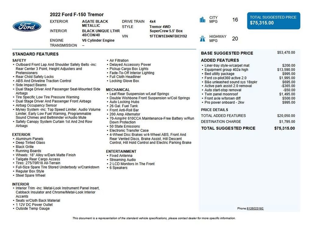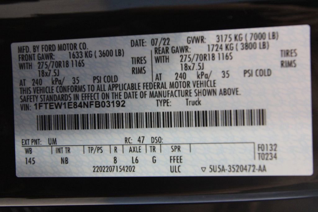 • ENGINE: 3.5L V6 ECOBOOST -inc: GVWR: 7 050 lbs Payload Package 3.31 Axle Ratio,Four Wheel Drive,Power Steering,ABS,4-Wheel Disc Brakes,Brake Assist,Aluminum Wheels,Tires - Front All-Terrain,Tires - Rear All-Terrain,Conventional Spare Tire,Tow Hooks,Heated Mirrors,Power Mirror(s),Rear Defrost,Intermittent Wipers,Variable Speed Intermittent Wipers,Privacy Glass,Daytime Running Lights,Automatic Headlights,Fog Lamps,Automatic Highbeams,AM/FM Stereo,Cloth Seats,Split Bench Seat,Driver Adjustable Lumbar,Passenger Adjustable Lumbar,Pass-Through Rear Seat,Rear Bench Seat,Adjustable Steering Wheel,WiFi Hotspot,Keyless Entry,Cruise Control,A/C,Driver Vanity Mirror,Passenger Vanity Mirror,Floor Mats,Bluetooth Connection,Telematics,Immobilizer,Security System,Stability Control,Front Side Air Bag,Front Collision Mitigation,Driver Monitoring,Rear Parking Aid,Blind Spot Monitor,Cross-Traffic Alert,Rear Collision Mitigation,Lane Keeping Assist,Tire Pressure Monitor,Driver Air Bag,Passenger Air Bag,Passenger Air Bag Sensor,Driver Restriction Features,Front Head Air Bag,Rear Head Air Bag,Child Safety Locks,Back-Up Camera