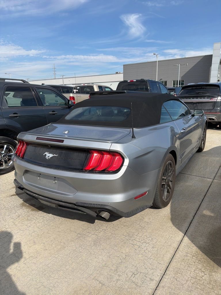 Every test drive at D-Patrick Ford in Evansville earns $10 to a local charity. Schedule your test drive today! 4-Wheel Disc Brakes, 9 Speakers, ABS brakes, ActiveX Bucket Seats, Air Conditioning, Alloy wheels, AM/FM radio: SiriusXM, AM/FM Stereo, Auto High-beam Headlights, Auto-dimming Rear-View mirror, Automatic temperature control, Brake assist, Bumpers: body-color, Climate Controlled Heated/Cooled Front Seats, Compass, Convertible roof lining, Delay-off headlights, Driver door bin, Driver vanity mirror, Dual front impact airbags, Dual front side impact airbags, Electronic Stability Control, Emergency communication system: 911 Assist, Exterior Parking Camera Rear, Four wheel independent suspension, Front anti-roll bar, Front Bucket Seats, Front Center Armrest, Front dual zone A/C, Front reading lights, Fully automatic headlights, Glass rear window, Heated door mirrors, Heated front seats, Illuminated entry, Knee airbag, Leather Shift Knob, Low tire pressure warning, Occupant sensing airbag, Outside temperature display, Overhead console, Panic alarm, Passenger door bin, Passenger vanity mirror, Power convertible roof, Power door mirrors, Power driver seat, Power passenger seat, Power steering, Power windows, Radio data system, Rain sensing wipers, Rear anti-roll bar, Rear Parking Sensors, Rear window defroster, Remote keyless entry, Security system, SiriusXM Radio, Speed control, Speed-sensing steering, Speed-Sensitive Wipers, Spoiler, Steering wheel mounted audio controls, SYNC 3 Communications & Entertainment System, Tachometer, Telescoping steering wheel, Tilt steering wheel, Traction control, Trip computer, Variably intermittent wipers, Ventilated front seats, Voltmeter, Wheels: 18 x 8 Machined-Face Aluminum. 2D Convertible EcoBoost Premium 10-Speed Automatic EcoBoost 2.3L I4 GTDi DOHC Turbocharged VCT RWD Silver Metallic CALL TODAY (812) 625-4823 OR SHOP ONLINE AT WWW.DPATRICKFORD.COM.