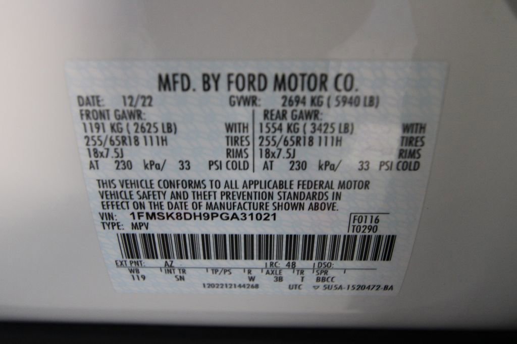 • ENGINE: 2.3L ECOBOOST I-4 -inc: auto start-stop technology (STD),Turbocharged,Four Wheel Drive,Power Steering,ABS,4-Wheel Disc Brakes,Brake Assist,Aluminum Wheels,Tires - Front All-Season,Tires - Rear All-Season,Temporary Spare Tire,Temporary Spare Tire,Heated Mirrors,Power Mirror(s),Rear Defrost,Privacy Glass,Intermittent Wipers,Variable Speed Intermittent Wipers,Rear Spoiler,Remote Trunk Release,Power Liftgate,Power Door Locks,Daytime Running Lights,Automatic Headlights,LED Headlights,Automatic Highbeams,AM/FM Stereo,Satellite Radio,Requires Subscription,MP3 Capability,Steering Wheel Audio Controls,Hard Disk Drive Media Storage,MP3 Capability,Telematics,Auxiliary Audio Input,Smart Device Integration,Requires Subscription,Bluetooth Connection,Bucket Seats,Bucket Seats,Rear Bucket Seats,Adjustable Steering Wheel,Trip Computer,Power Windows,3rd Row Seat,Leather Steering Wheel,Keyless Entry,Power Door Locks,Keyless Entry,Power Door Locks,Keyless Start,Cruise Control,Climate Control,Multi-Zone A/C,A/C,A/C,Rear A/C,Power Driver Seat,Power Passenger Seat,Cloth Seats,Heated Front Seat(s),Driver Adjustable Lumbar,Driver Vanity Mirror,Passenger Vanity Mirror,Driver Illuminated Vanity Mirror,Passenger Illuminated Visor Mirror,Floor Mats,Keyless Start,Smart Device Integration,Requires Subscription,Smart Device Integration,WiFi Hotspot,Power Windows,Power Door Locks,Trip Computer,Immobilizer,Security System,Traction Control,Stability Control,Traction Control,Front Side Air Bag,Telematics,Requires Subscription,Rear Parking Aid,Blind Spot Monitor,Cross-Traffic Alert,Lane Departure Warning,Lane Keeping Assist,Lane Departure Warning,Front Collision Mitigation,Driver Monitoring,Tire Pressure Monitor,Driver Air Bag,Passenger Air Bag,Front Head Air Bag,Rear Head Air Bag,Passenger Air Bag Sensor,Knee Air Bag,Driver Restriction Features,Child Safety Locks,Back-Up Camera