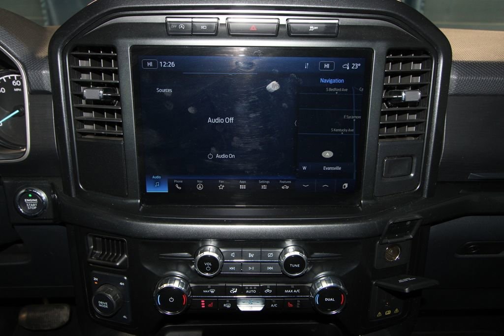 2023 Ford F-150 XLT We want you to shop confidently for your next used car at The BIG Ford Store, D-Patrick Ford. We are located on Highway 41 and Walnut in Evansville, right next to the Lloyd Expressway. Buy this used vehicle 100% online or in-store. This pre-owned vehicle was put through an extensive inspection before hitting our lot. Because of this, we are able to offer a 3-month/3,000-mile comprehensive limited warranty. You also get our Love It or Return It 5-day, 300-mile Exchange Policy. See our website for more details on both. We also offer extended service plans, vehicle protection plans, and offer a CarFax vehicle history report. *Prices listed do not include a $250 documentation fee, applicable tax, title, tags, license, or $195 service and preparation. All pricing, vehicle information, and features (such as accessories and color) are believed to be accurate, but we do not warrant or guarantee such accuracy. The prices shown above may vary from region to region, and incentives are subject to change. Some offers listed may not be available to all customers. All online sale commitments are subject to confirmation of continued availability of vehicle. Once availability is confirmed, online sale agreement becomes binding upon the parties. If any information found on the website is thought to be erroneous, please verify information with a customer service representative. See dealer for full details. Looking to sell your current vehicle? We buy cars for cash. Every test drive at D-Patrick Ford in Evansville earns $10 to a local charity. Schedule your test drive today! 4WD, 3.55 Axle Ratio, 3.73 Axle Ratio, 4-Wheel Disc Brakes, 6 Speakers, ABS brakes, Accent-Color Step Bars, Air Conditioning, Alloy wheels, AM/FM radio, Auto High-beam Headlights, Auto-Dimming Rear-View Mirror, Bed Utility Package, Black 2-Bar Style Grille w/Black Surround/Accents, Body-Color Door & Tailgate Handles, Box Side Decals, BoxLink, Brake assist, Bumpers: chrome, Class IV Trailer Hitch Receiver, Cloth 40/20/40 Front Seat, Compass, Delay-off headlights, Driver door bin, Driver vanity mirror, Dual front impact airbags, Dual front side impact airbags, Electronic Stability Control, Emergency communication system: SYNC 4 911 Assist, Equipment Group 302A High, Extended Range 36 Gallon Fuel Tank, Exterior Parking Camera Rear, Front anti-roll bar, Front Center Armrest w/Storage, Front fog lights, Front reading lights, Front wheel independent suspension, Fully automatic headlights, GVWR: 6,470 lbs Payload Package, Heated door mirrors, Illuminated entry, LED Reflector Headlamps, LED Sideview Mirror Spotlights, Low tire pressure warning, Occupant sensing airbag, Onboard 400W Outlet, Onboard Scale w/Smart Hitch, Outside temperature display, Overhead airbag, Overhead console, Panic alarm, Passenger door bin, Passenger vanity mirror, Power door mirrors, Power Glass Heated Sideview Mirrors, Power steering, Power windows, Power-Sliding Rear Window, Radio data system, Radio: AM/FM SiriusXM w/360L, Radio: AM/FM Stereo w/6 Speakers, Rear reading lights, Rear step bumper, Rear window defroster, Remote keyless entry, Remote Start System, Security system, Speed control, Speed-sensing steering, Split folding rear seat, Steering wheel mounted audio controls, SYNC 4, SYNC 4 w/Enhanced Voice Recognition, Tachometer, Tailgate Step w/Tailgate Work Surface, Telescoping steering wheel, Tilt steering wheel, Tough Bed Spray-In Bedliner, Traction control, Trip computer, Unique Sport Cloth 40/Console/40 Front-Seats, Variably intermittent wipers, Voltmeter, Wheels: 17 Silver Painted Aluminum, Wheels: 18 6-Spoke Machined Aluminum, XLT Sport Appearance Package, Zone Lighting, 4WD. Clean CARFAX. 4D SuperCrew XLT 10-Speed Automatic 2.7L V6 EcoBoost 4WD Agate Black Metallic CALL TODAY (812) 625-4823 OR SHOP ONLINE AT WWW.DPATRICKFORD.COM.