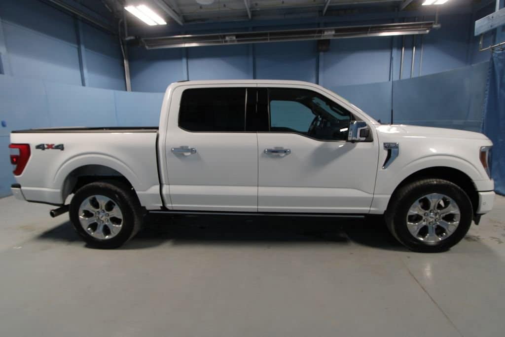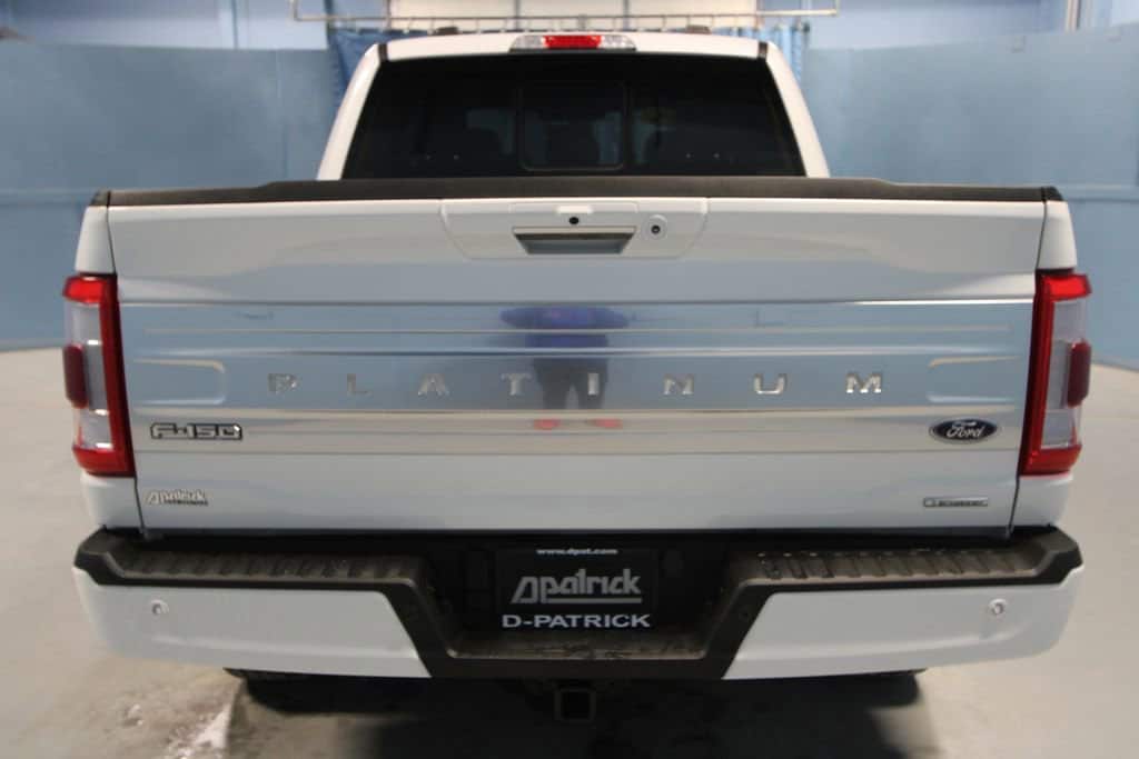 2023 Ford F-150 Platinum We want you to shop confidently for your next used car at The BIG Ford Store, D-Patrick Ford. We are located on Highway 41 and Walnut in Evansville, right next to the Lloyd Expressway. Buy this used vehicle 100% online or in-store. This pre-owned vehicle was put through an extensive inspection before hitting our lot. Because of this, we are able to offer a 3-month/3,000-mile comprehensive limited warranty. You also get our Love It or Return It 5-day, 300-mile Exchange Policy. See our website for more details on both. We also offer extended service plans, vehicle protection plans, and offer a CarFax vehicle history report. *Prices listed do not include a $250 documentation fee, applicable tax, title, tags, license, or $195 service and preparation. All pricing, vehicle information, and features (such as accessories and color) are believed to be accurate, but we do not warrant or guarantee such accuracy. The prices shown above may vary from region to region, and incentives are subject to change. Some offers listed may not be available to all customers. All online sale commitments are subject to confirmation of continued availability of vehicle. Once availability is confirmed, online sale agreement becomes binding upon the parties. If any information found on the website is thought to be erroneous, please verify information with a customer service representative. See dealer for full details. Looking to sell your current vehicle? We buy cars for cash. Every test drive at D-Patrick Ford in Evansville earns $10 to a local charity. Schedule your test drive today! 4WD, 20 Polished Aluminum Wheels, 3.31 Axle Ratio, 360 Degree Camera, 4-Wheel Disc Brakes, 8 Speakers, ABS brakes, Active Park Assist 2.0 Removal, Adjustable pedals, Air Conditioning, Alloy wheels, AM/FM radio: SiriusXM with 360L, Auto High-beam Headlights, Auto tilt-away steering wheel, Auto-dimming door mirrors, Auto-dimming Rear-View mirror, Automatic temperature control, Bed Utility Package, BoxLink, Brake assist, Bumpers: body-color, Center High-Mounted Stop Lamp CHMSL Camera Removal, Class IV Trailer Hitch Receiver, Compass, Delay-off headlights, Driver door bin, Driver vanity mirror, Dual front impact airbags, Dual front side impact airbags, Electronic Stability Control, Emergency communication system: SYNC 4 911 Assist, Equipment Group 701A High, Extended Range 36 Gallon Fuel Tank, Exterior Parking Camera Rear, Ford BlueCruise 1.0, Front anti-roll bar, Front Bucket Seats, Front Center Armrest, Front dual zone A/C, Front fog lights, Front reading lights, Front wheel independent suspension, Fully automatic headlights, Garage door transmitter, Heated door mirrors, Heated front seats, Heated rear seats, Heated steering wheel, Illuminated entry, Inclination/Intrusion Sensor Removal, Integrated Trailer Brake Controller, Interior Work Surface, LED Sideview Mirror Spotlights, Low tire pressure warning, Memory seat, Multicontour Seats w/Active Motion Removal, Occupant sensing airbag, Outside temperature display, Overhead airbag, Overhead console, Panic alarm, Passenger door bin, Passenger vanity mirror, Pedal memory, Power door mirrors, Power driver seat, Power passenger seat, Power steering, Power windows, Radio data system, Radio: B&O Sound System by Bang & Olufsen, Radio: B&O Unleashed Sound System by Bang & Olufsen, Rain sensing wipers, Rear reading lights, Rear seat center armrest, Rear step bumper, Rear window defroster, Remote keyless entry, Security system, Speed control, Speed-sensing steering, Split folding rear seat, Steering Wheel Heat Removal (DISC), Steering wheel memory, Steering wheel mounted audio controls, SYNC 4 w/Enhanced Voice Recognition, Tachometer, Tailgate Step w/Tailgate Work Surface, Telescoping steering wheel, Tilt steering wheel, Traction control, Tray Style Floor Liner, Trip computer, Turn signal indicator mirrors, Twin Panel Moonroof, Variably intermittent wipers, Ventilated front seats, Voltmeter, 4WD. Clean CARFAX. 4D