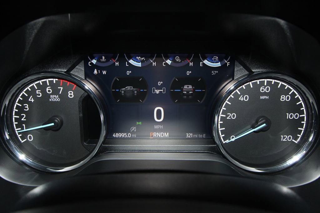 • ENGINE: 5.0L V8 -inc: auto start-stop technology and flex-fuel capability GVWR: 7 050 lbs Payload Package 3.31 Axle Ratio,ENGINE: 5.0L V8 -inc: flex-fuel capability GVWR: 7 050 lbs Payload Package 3.31 Axle Ratio,Four Wheel Drive,Power Steering,ABS,4-Wheel Disc Brakes,Brake Assist,Aluminum Wheels,Tires - Front All-Terrain,Tires - Rear All-Terrain,Conventional Spare Tire,Tow Hooks,Heated Mirrors,Power Mirror(s),Rear Defrost,Intermittent Wipers,Variable Speed Intermittent Wipers,Privacy Glass,Daytime Running Lights,Automatic Headlights,Fog Lamps,Automatic Highbeams,AM/FM Stereo,Cloth Seats,Split Bench Seat,Driver Adjustable Lumbar,Passenger Adjustable Lumbar,Pass-Through Rear Seat,Rear Bench Seat,Adjustable Steering Wheel,WiFi Hotspot,Keyless Entry,Cruise Control,A/C,Driver Vanity Mirror,Passenger Vanity Mirror,Floor Mats,Bluetooth Connection,Telematics,Security System,Immobilizer,Stability Control,Front Side Air Bag,Front Collision Mitigation,Driver Monitoring,Rear Parking Aid,Blind Spot Monitor,Cross-Traffic Alert,Rear Collision Mitigation,Lane Keeping Assist,Tire Pressure Monitor,Driver Air Bag,Passenger Air Bag,Passenger Air Bag Sensor,Driver Restriction Features,Front Head Air Bag,Rear Head Air Bag,Child Safety Locks,Back-Up Camera