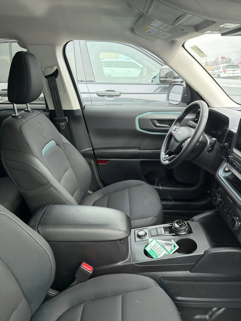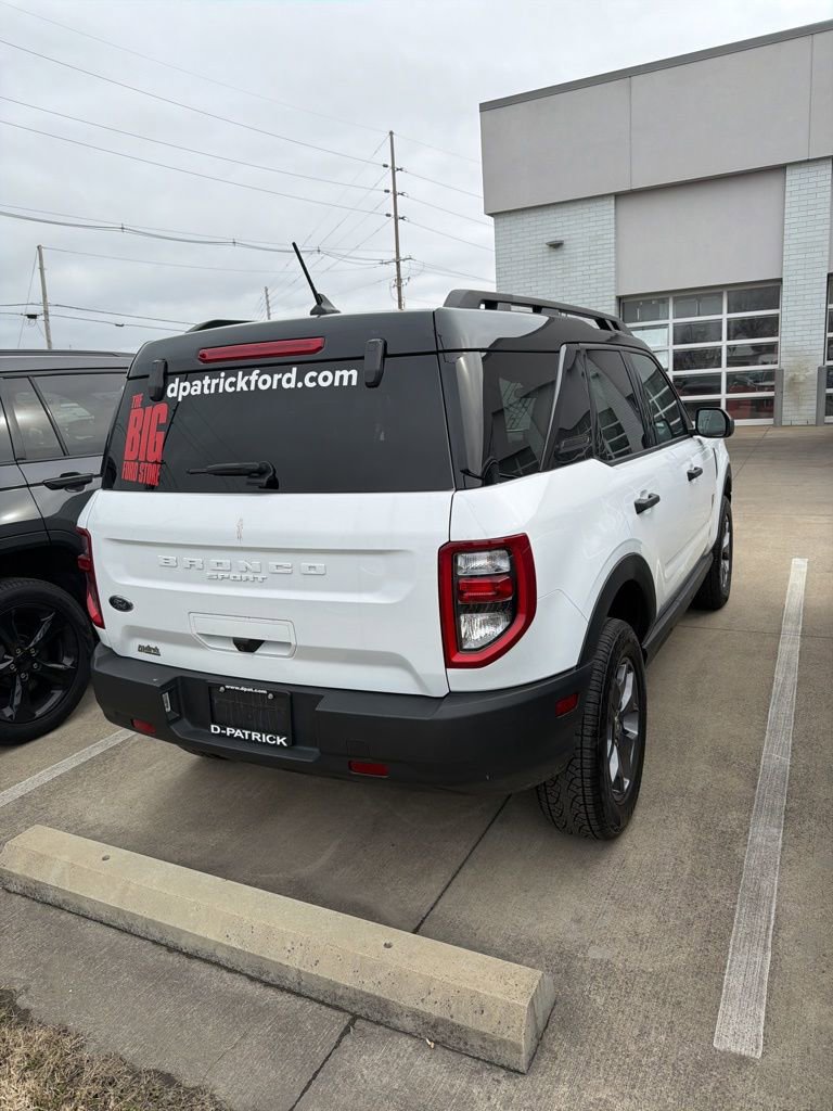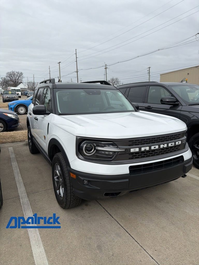 2024 Ford Bronco Sport Badlands Recent Arrival! We want you to shop confidently for your next used car at The BIG Ford Store, D-Patrick Ford. We are located on Highway 41 and Walnut in Evansville, right next to the Lloyd Expressway. Buy this used vehicle 100% online or in-store. This pre-owned vehicle was put through an extensive inspection before hitting our lot. Because of this, we are able to offer a 3-month/3,000-mile comprehensive limited warranty. You also get our Love It or Return It 5-day, 300-mile Exchange Policy. See our website for more details on both. We also offer extended service plans, vehicle protection plans, and offer a CarFax vehicle history report. *Prices listed do not include a $250 documentation fee, applicable tax, title, tags, license, or $195 service and preparation. All pricing, vehicle information, and features (such as accessories and color) are believed to be accurate, but we do not warrant or guarantee such accuracy. The prices shown above may vary from region to region, and incentives are subject to change. Some offers listed may not be available to all customers. All online sale commitments are subject to confirmation of continued availability of vehicle. Once availability is confirmed, online sale agreement becomes binding upon the parties. If any information found on the website is thought to be erroneous, please verify information with a customer service representative. See dealer for full details. Looking to sell your current vehicle? We buy cars for cash. Every test drive at D-Patrick Ford in Evansville earns $10 to a local charity. Schedule your test drive today! 3.80 Axle Ratio, 4-Wheel Disc Brakes, 6 Speakers, ABS brakes, Air Conditioning, Alloy wheels, AM/FM radio: SiriusXM, AM/FM Stereo, Auto High-beam Headlights, Automatic temperature control, Brake assist, Compass, Delay-off headlights, Driver door bin, Driver vanity mirror, Dual front impact airbags, Dual front side impact airbags, Electronic Stability Control, Emergency communication system: SYNC 3 911 Assist, Equipment Group 400A, Four wheel independent suspension, Front anti-roll bar, Front Bucket Seats, Front Center Armrest, Front fog lights, Front reading lights, Fully automatic headlights, Heated door mirrors, Illuminated entry, Knee airbag, Low tire pressure warning, Occupant sensing airbag, Outside temperature display, Overhead airbag, Overhead console, Panic alarm, Passenger door bin, Passenger vanity mirror, Power door mirrors, Power driver seat, Power steering, Power windows, Radio data system, Rear anti-roll bar, Rear reading lights, Rear seat center armrest, Rear window defroster, Rear window wiper, Remote keyless entry, Security system, SiriusXM, Speed control, Speed-sensing steering, Speed-Sensitive Wipers, Split folding rear seat, Steering wheel mounted audio controls, SYNC 3 Communications & Entertainment System, Tachometer, Telescoping steering wheel, Tilt steering wheel, Traction control, Trip computer, Unique Style Cloth Sport Contour Bucket Seats, Variably intermittent wipers, Wheels: 17 Carbonized Gray-Painted Aluminum. CARFAX One-Owner. 4D Sport Utility Badlands 8-Speed Automatic EcoBoost 2.0L I4 GTDi DOHC Turbocharged VCT 4WD Oxford White CALL TODAY (812) 625-4823 OR SHOP ONLINE AT WWW.DPATRICKFORD.COM.
