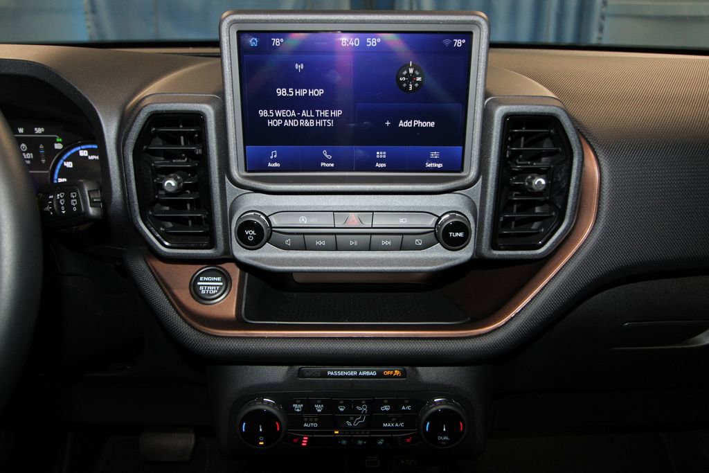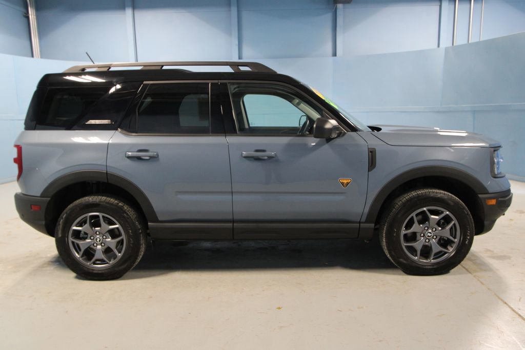 2024 Ford Bronco Sport Badlands We want you to shop confidently for your next used car at The BIG Ford Store, D-Patrick Ford. We are located on Highway 41 and Walnut in Evansville, right next to the Lloyd Expressway. Buy this used vehicle 100% online or in-store. This pre-owned vehicle was put through an extensive inspection before hitting our lot. Because of this, we are able to offer a 3-month/3,000-mile comprehensive limited warranty. You also get our Love It or Return It 5-day, 300-mile Exchange Policy. See our website for more details on both. We also offer extended service plans, vehicle protection plans, and offer a free to you CarFax vehicle history report. *Prices listed do not include a $250 documentation fee, applicable tax, title, tags, license, or $195 service and preparation. All pricing, vehicle information, and features (such as accessories and color) are believed to be accurate, but we do not warrant or guarantee such accuracy. The prices shown above may vary from region to region, and incentives are subject to change. Some offers listed may not be available to all customers. All online sale commitments are subject to confirmation of continued availability of vehicle. Once availability is confirmed, online sale agreement becomes binding upon the parties. If any information found on the website is thought to be erroneous, please verify information with a customer service representative. See dealer for full details. Looking to sell your current vehicle? We buy cars for cash. Every test drive at D-Patrick Ford in Evansville earns $10 to a local charity. Schedule your test drive today! 3.80 Axle Ratio, 4-Wheel Disc Brakes, 6 Speakers, ABS brakes, Air Conditioning, Alloy wheels, AM/FM radio: SiriusXM, AM/FM Stereo, Auto High-beam Headlights, Auto-Dimming Rear-View Mirror, Automatic temperature control, Body-Colored Door Handles, Brake assist, Compass, Delay-off headlights, Driver door bin, Driver vanity mirror, Dual front impact airbags, Dual front side impact airbags, Dual-Zone Electronic Automatic Temperature Control, Electronic Stability Control, Emergency communication system: SYNC 3 911 Assist, Equipment Group 400A, Four wheel independent suspension, Front anti-roll bar, Front Bucket Seats, Front Center Armrest, Front fog lights, Front reading lights, Fully automatic headlights, HD Radio, Heated door mirrors, Heated Steering Wheel, Illuminated entry, Knee airbag, Leather-Trimmed 2-Tone Heated Front Bucket Seats, Low tire pressure warning, Memory Driver's Seat & Sideview Mirror, Occupant sensing airbag, Outside temperature display, Overhead airbag, Overhead console, Panic alarm, Passenger door bin, Passenger vanity mirror, Power door mirrors, Power driver seat, Power steering, Power windows, Premium Package, Radio data system, Rear anti-roll bar, Rear Parking Sensors, Rear reading lights, Rear seat center armrest, Rear window defroster, Rear window wiper, Remote keyless entry, Remote Start System, Security system, SiriusXM, Speed control, Speed-sensing steering, Speed-Sensitive Wipers, Split folding rear seat, Steering wheel mounted audio controls, SYNC 3 Communications & Entertainment System, Tachometer, Telescoping steering wheel, Tilt steering wheel, Traction control, Trip computer, Unique Style Cloth Sport Contour Bucket Seats, Universal Garage Door Opener (UGDO), Variably intermittent wipers, Wheels: 17 Carbonized Gray-Painted Aluminum, Wireless Charging Pad. CARFAX One-Owner. Clean CARFAX. 4D Sport Utility Badlands 8-Speed Automatic EcoBoost 2.0L I4 GTDi DOHC Turbocharged VCT 4WD Azure Gray Metallic CALL TODAY (812) 625-4823 OR SHOP ONLINE AT WWW.DPATRICKFORD.COM.