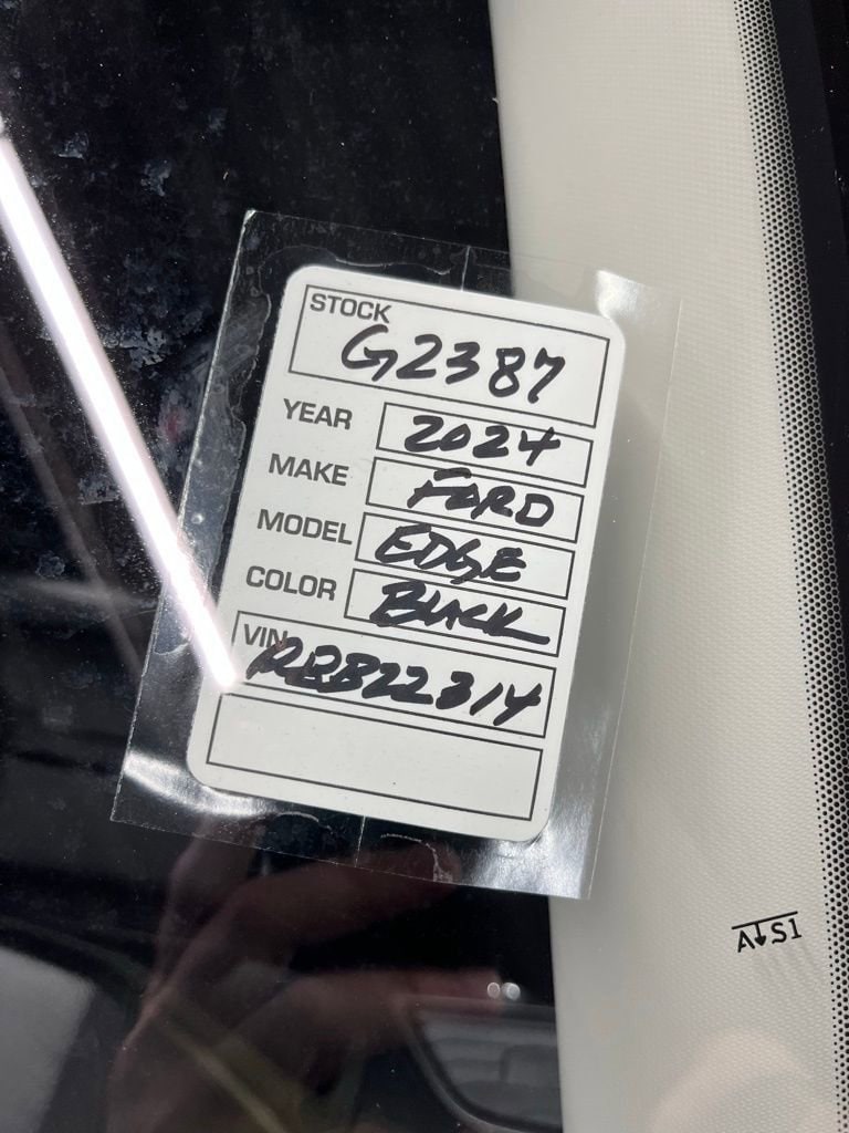 2024 Ford Edge SE We want you to shop confidently for your next used car at D-Patrick Lebanon Ford and We make it EASY! Buy this used vehicle 100% online or in-store, EASY. Saving time at the dealership, EASY! Financing, EASY! Get pre-approved online or in-store with one of our many lenders, EASY. Finding the car you love at the price you want, EASY! This pre-owned vehicle was put through an extensive inspection before hitting our lot. Because of this, we are able to offer a 3-month/3,000-mile comprehensive limited warranty. You also get our Love It or Return It 5-day, 300-mile Exchange Policy. See our website for more details on both. We also offer extended service plans, vehicle protection plans, and offer a free to you CarFax vehicle history report. *Prices listed do not include a $250 documentation fee, applicable tax, title, tags, license, or $195 service and preparation. All pricing, vehicle information, and features (such as accessories and color) are believed to be accurate, but we do not warrant or guarantee such accuracy. The prices shown above may vary from region to region, and incentives are subject to change. Some offers listed may not be available to all customers. All online sale commitments are subject to confirmation of continued availability of vehicle. Once availability is confirmed, online sale agreement becomes binding upon the parties. If any information found on the website is thought to be erroneous, please verify information with a customer service representative. See dealer for full details. Looking to sell your current vehicle? We buy cars for cash. AWD, 3.80 Axle Ratio, 4-Wheel Disc Brakes, 6 Speakers, ABS brakes, Air Conditioning, Alloy wheels, AM/FM radio: SiriusXM with 360L, AM/FM Stereo, Auto High-beam Headlights, Automatic temperature control, Brake assist, Bumpers: body-color, Cloth Bucket Seats, Compass, Delay-off headlights, Driver door bin, Driver vanity mirror, Dual front impact airbags, Dual front side impact airbags, Electronic Stability Control, Emergency communication system: SYNC 4 911 Assist, Equipment Group 100A, FordPass Connect, Four wheel independent suspension, Front anti-roll bar, Front Bucket Seats, Front Center Armrest w/Storage, Front dual zone A/C, Front reading lights, Fully automatic headlights, Illuminated entry, Knee airbag, Low tire pressure warning, Occupant sensing airbag, Outside temperature display, Overhead airbag, Overhead console, Panic alarm, Passenger door bin, Passenger vanity mirror, Power door mirrors, Power steering, Power windows, Rear anti-roll bar, Rear reading lights, Rear seat center armrest, Rear window defroster, Rear window wiper, Remote keyless entry, SiriusXM w/360L, Speed control, Speed-Sensitive Wipers, Split folding rear seat, Spoiler, Steering wheel mounted audio controls, SYNC 4A w/Enhanced Voice Recognition, Tachometer, Telescoping steering wheel, Tilt steering wheel, Traction control, Trip computer, Variably intermittent wipers, Wheels: 18" Sparkle Silver-Painted Aluminum, AWD. CARFAX One-Owner. Clean CARFAX. 4D Sport Utility SE 8-Speed Automatic EcoBoost 2.0L I4 GTDi DOHC Turbocharged VCT AWD Agate Black Metallic CALL US TODAY BEFORE THIS ONE GETS AWAY-- (765) 204-6248 or shop online at www.dpatricklebanonford.com.