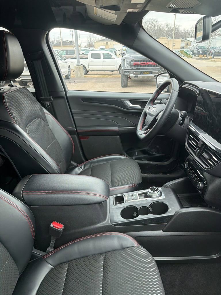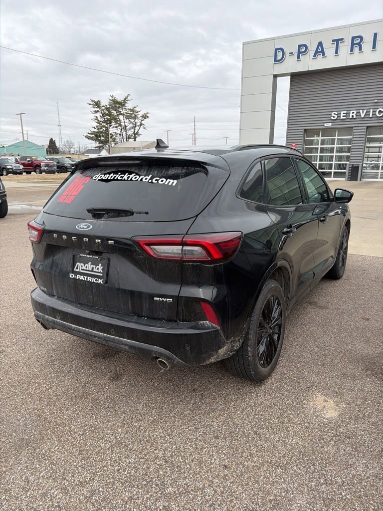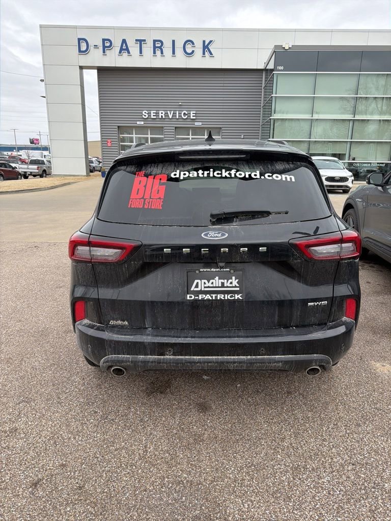 2024 Ford Escape ST-Line Elite Recent Arrival! We want you to shop confidently for your next used car at The BIG Ford Store, D-Patrick Ford. We are located on Highway 41 and Walnut in Evansville, right next to the Lloyd Expressway. Buy this used vehicle 100% online or in-store. This pre-owned vehicle was put through an extensive inspection before hitting our lot. Because of this, we are able to offer a 3-month/3,000-mile comprehensive limited warranty. You also get our Love It or Return It 5-day, 300-mile Exchange Policy. See our website for more details on both. We also offer extended service plans, vehicle protection plans, and offer a CarFax vehicle history report. *Prices listed do not include a $250 documentation fee, applicable tax, title, tags, license, or $195 service and preparation. All pricing, vehicle information, and features (such as accessories and color) are believed to be accurate, but we do not warrant or guarantee such accuracy. The prices shown above may vary from region to region, and incentives are subject to change. Some offers listed may not be available to all customers. All online sale commitments are subject to confirmation of continued availability of vehicle. Once availability is confirmed, online sale agreement becomes binding upon the parties. If any information found on the website is thought to be erroneous, please verify information with a customer service representative. See dealer for full details. Looking to sell your current vehicle? We buy cars for cash. Every test drive at D-Patrick Ford in Evansville earns $10 to a local charity. Schedule your test drive today! AWD, 2.91 Axle Ratio, 4-Wheel Disc Brakes, 6 Speakers, ABS brakes, Air Conditioning, Alloy wheels, AM/FM radio: SiriusXM, AM/FM Stereo, Auto High-beam Headlights, Auto-dimming Rear-View mirror, Automatic temperature control, Brake assist, Bumpers: body-color, Compass, Delay-off headlights, Driver door bin, Driver vanity mirror, Dual front impact airbags, Dual front side impact airbags, Electronic Fuel Door Release, Electronic Stability Control, Emergency communication system: SYNC 4 911 Assist, Equipment Group 501A, Exterior Parking Camera Rear, FordPass Connect, Four wheel independent suspension, Front anti-roll bar, Front Bucket Seats, Front Center Armrest, Front dual zone A/C, Front fog lights, Front reading lights, Fully automatic headlights, Garage door transmitter, Heated door mirrors, Heated front seats, Heated steering wheel, Heated Vinyl/Cloth Front Sport Contour Bucket Seats, Illuminated entry, Knee airbag, Low tire pressure warning, Memory seat, Navigation system: Connected Navigation, Neutral Towing Capability, Occupant sensing airbag, Outside temperature display, Overhead airbag, Overhead console, Panic alarm, Passenger door bin, Passenger vanity mirror, Pedestrian Alert Sounder, Power door mirrors, Power driver seat, Power Liftgate, Power passenger seat, Power steering, Power windows, Radio data system, Rain sensing wipers, Rear anti-roll bar, Rear reading lights, Rear seat center armrest, Rear window defroster, Rear window wiper, Remote keyless entry, Roof rack: rails only, Security system, Speed control, Speed-sensing steering, Speed-Sensitive Wipers, Split folding rear seat, Spoiler, Sport steering wheel, Steering wheel mounted audio controls, SYNC 4 w/Enhanced Voice Recognition, Tachometer, Telescoping steering wheel, Tilt steering wheel, Traction control, Trip computer, Variably intermittent wipers, Wheels: 19 Ebony-Painted Aluminum, Wheels: 19 Machined-Face Ebony-Painted Aluminum, AWD. CARFAX One-Owner. Clean CARFAX. 4D Sport Utility ST-Line Elite 8-Speed Automatic EcoBoost 2.0L I4 GTDi DOHC Turbocharged VCT AWD Agate Black Metallic CALL TODAY (812) 625-4823 OR SHOP ONLINE AT WWW.DPATRICKFORD.COM.