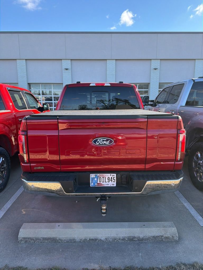 2024 Ford F-150 Lariat We want you to shop confidently for your next used car at The BIG Ford Store, D-Patrick Ford. We are located on Highway 41 and Walnut in Evansville, right next to the Lloyd Expressway. Buy this used vehicle 100% online or in-store. This pre-owned vehicle was put through an extensive inspection before hitting our lot. Because of this, we are able to offer a 3-month/3,000-mile comprehensive limited warranty. You also get our Love It or Return It 5-day, 300-mile Exchange Policy. See our website for more details on both. We also offer extended service plans, vehicle protection plans, and offer a CarFax vehicle history report. *Prices listed do not include a $250 documentation fee, applicable tax, title, tags, license, or $195 service and preparation. All pricing, vehicle information, and features (such as accessories and color) are believed to be accurate, but we do not warrant or guarantee such accuracy. The prices shown above may vary from region to region, and incentives are subject to change. Some offers listed may not be available to all customers. All online sale commitments are subject to confirmation of continued availability of vehicle. Once availability is confirmed, online sale agreement becomes binding upon the parties. If any information found on the website is thought to be erroneous, please verify information with a customer service representative. See dealer for full details. Looking to sell your current vehicle? We buy cars for cash. Every test drive at D-Patrick Ford in Evansville earns $10 to a local charity. Schedule your test drive today! 4WD, 3.31 Axle Ratio, 4 Pickup Box Tie-Down Plates, 4-Wheel Disc Brakes, 4x4 FX4 Off-Road Bodyside Decal, 8 Speakers, ABS brakes, Adjustable pedals, Air Conditioning, Alloy wheels, AM/FM radio: SiriusXM with 360L, Auto High-beam Headlights, Auto-dimming door mirrors, Auto-dimming Rear-View mirror, Automatic temperature control, Bed Utility Package, Brake assist, Bumpers: chrome, Chrome wheels, Compass, Delay-off headlights, Driver door bin, Driver vanity mirror, Dual front impact airbags, Dual front side impact airbags, Electronic Locking w/3.31 Axle Ratio, Electronic Locking w/3.55 Axle Ratio, Electronic Stability Control, Emergency communication system: SYNC 4 911 Assist, Equipment Group 502A High, Front anti-roll bar, Front Bucket Seats, Front Center Armrest, Front dual zone A/C, Front fog lights, Front reading lights, Front wheel independent suspension, Fully automatic headlights, FX4 Off-Road Package, Garage door transmitter, Heated door mirrors, Heated front seats, Heated steering wheel, Hill Descent Control, Illuminated entry, LED Box Lighting, Low tire pressure warning, Memory seat, Monotube Rear Shocks, Navigation system: Connected Navigation, Occupant sensing airbag, Off-Road Tuned Front Shock Absorbers, On-Board Scales w/Smart Hitch, Outside temperature display, Overhead airbag, Overhead console, Panic alarm, Passenger door bin, Passenger vanity mirror, Pedal memory, Power door mirrors, Power driver seat, Power passenger seat, Power steering, Power Tailgate, Power windows, Pro Access Tailgate, Radio data system, Radio: B&O Sound System by Bang & Olufsen, Rain sensing wipers, Rear reading lights, Rear seat center armrest, Rear step bumper, Rear window defroster, Remote keyless entry, Rock Crawl Mode, Security system, Speed control, Split folding rear seat, Steering wheel mounted audio controls, SYNC 4 w/Enhanced Voice Recognition, Tachometer, Telescoping steering wheel, Tilt steering wheel, Tow/Haul Package, Traction control, Trip computer, Turn signal indicator mirrors, Twin Panel Moonroof, Variably intermittent wipers, Ventilated front seats, Voltmeter, Wheels: 20 Chrome-Like PVD, 4WD. CARFAX One-Owner. Clean CARFAX. 4D SuperCrew Lariat 10-Speed Automatic 3.5L V6 EcoBoost 4WD Red Metallic CALL TODAY (812) 625-4823 OR SHOP ONLINE AT WWW.DPATRICKFORD.COM.