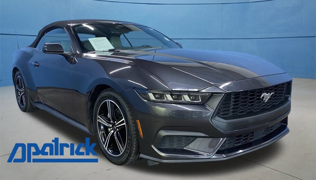2024 Ford Mustang EcoBoost Premium We want you to shop confidently for your next used car at D-Patrick Lebanon Ford and We make it EASY! Buy this used vehicle 100% online or in-store, EASY. Saving time at the dealership, EASY! Financing, EASY! Get pre-approved online or in-store with one of our many lenders, EASY. Finding the car you love at the price you want, EASY! This pre-owned vehicle was put through an extensive inspection before hitting our lot. Because of this, we are able to offer a 3-month/3,000-mile comprehensive limited warranty. You also get our Love It or Return It 5-day, 300-mile Exchange Policy. See our website for more details on both. We also offer extended service plans, vehicle protection plans, and offer a free to you CarFax vehicle history report. *Prices listed do not include a $250 documentation fee, applicable tax, title, tags, license, or $195 service and preparation. All pricing, vehicle information, and features (such as accessories and color) are believed to be accurate, but we do not warrant or guarantee such accuracy. The prices shown above may vary from region to region, and incentives are subject to change. Some offers listed may not be available to all customers. All online sale commitments are subject to confirmation of continued availability of vehicle. Once availability is confirmed, online sale agreement becomes binding upon the parties. If any information found on the website is thought to be erroneous, please verify information with a customer service representative. See dealer for full details. Looking to sell your current vehicle? We buy cars for cash. 4-Wheel Disc Brakes, 9 Speakers, ABS brakes, Air Conditioning, Alloy wheels, AM/FM radio: SiriusXM with 360L, AM/FM Stereo, Auto High-beam Headlights, Automatic temperature control, Brake assist, Bumpers: body-color, Compass, Convertible roof lining, Delay-off headlights, Driver door bin, Driver vanity mirror, Dual front impact airbags, Dual front side impact airbags, Electronic Stability Control, Emergency communication system: 911 Assist, Exterior Parking Camera Rear, Four wheel independent suspension, Front anti-roll bar, Front Bucket Seats, Front Center Armrest, Front dual zone A/C, Front reading lights, Fully automatic headlights, Glass rear window, Heated front seats, Illuminated entry, Knee airbag, Leather Shift Knob, Low tire pressure warning, Occupant sensing airbag, Outside temperature display, Overhead console, Panic alarm, Passenger door bin, Passenger vanity mirror, Power convertible roof, Power door mirrors, Power driver seat, Power steering, Power windows, Radio data system, Rain sensing wipers, Rear anti-roll bar, Rear Parking Sensors, Rear window defroster, Remote keyless entry, Security system, Speed control, Speed-sensing steering, Speed-Sensitive Wipers, Sport steering wheel, Steering wheel mounted audio controls, SYNC 4.0 QNX, Tachometer, Telescoping steering wheel, Tilt steering wheel, Traction control, Trip computer, Variably intermittent wipers, Voltmeter, Wheels: 18" x 8" Machined-Face Aluminum. CARFAX One-Owner. Clean CARFAX. 2D Convertible EcoBoost Premium 10-Speed Automatic EcoBoost 2.3L I4 GTDi DOHC Turbocharged VCT RWD Gray Metallic CALL US TODAY BEFORE THIS ONE GETS AWAY-- (765) 204-6248 or shop online at www.dpatricklebanonford.com.