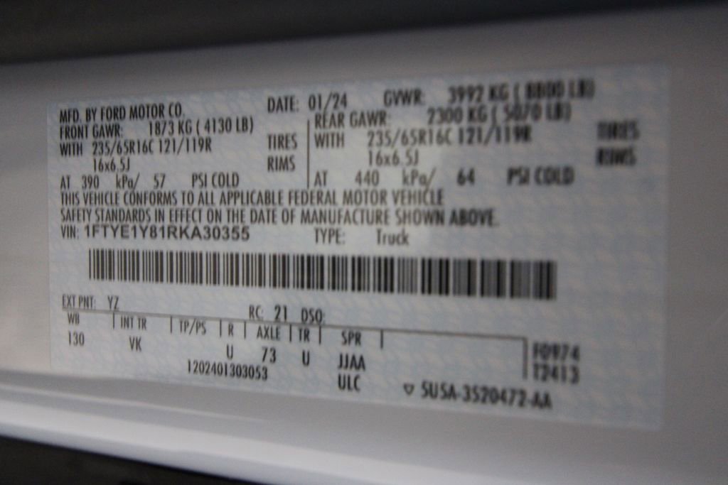 2024 Ford Transit-150 Base We want you to shop confidently for your next used car at The BIG Ford Store, D-Patrick Ford. We are located on Highway 41 and Walnut in Evansville, right next to the Lloyd Expressway. Buy this used vehicle 100% online or in-store. This pre-owned vehicle was put through an extensive inspection before hitting our lot. Because of this, we are able to offer a 3-month/3,000-mile comprehensive limited warranty. You also get our Love It or Return It 5-day, 300-mile Exchange Policy. See our website for more details on both. We also offer extended service plans, vehicle protection plans, and offer a CarFax vehicle history report. *Prices listed do not include a $250 documentation fee, applicable tax, title, tags, license, or $195 service and preparation. All pricing, vehicle information, and features (such as accessories and color) are believed to be accurate, but we do not warrant or guarantee such accuracy. The prices shown above may vary from region to region, and incentives are subject to change. Some offers listed may not be available to all customers. All online sale commitments are subject to confirmation of continued availability of vehicle. Once availability is confirmed, online sale agreement becomes binding upon the parties. If any information found on the website is thought to be erroneous, please verify information with a customer service representative. See dealer for full details. Looking to sell your current vehicle? We buy cars for cash. Every test drive at D-Patrick Ford in Evansville earns $10 to a local charity. Schedule your test drive today! 2 Additional Keys (4 Total), 3.73 Axle Ratio, 4 Speakers, 4-Wheel Disc Brakes, 6 Cargo Tie-Down Hooks, ABS brakes, Air Conditioning, AM/FM radio, AM/FM Stereo, Auto High-beam Headlights, Brake assist, Dark Palazzo Gray Vinyl Bucket Seats, Delay-off headlights, Driver door bin, Driver's Seat Mounted Armrest, Dual front impact airbags, Dual front side impact airbags, Electronic Stability Control, Exterior Parking Camera Rear, Fixed Rear Cargo Door Glass, Frame Mounted Hitch Receiver, Front & Rear Vinyl Floor Covering, Front anti-roll bar, Front Bucket Seats, Front License Plate Bracket, Front reading lights, Front wheel independent suspension, Fully automatic headlights, Heavy-Duty Trailer Tow Package, Illuminated entry, Load Area Protection Package, Low tire pressure warning, Occupant sensing airbag, Order Code 101A, Overhead airbag, Panic alarm, Passenger cancellable airbag, Passenger door bin, Passenger-Side B-Pillar Assist Handle, Power door mirrors, Power steering, Power windows, Rear-Window Defroster, Rearview Mirror, Remote keyless entry, Short-Arm Manual-Folding Power Adjust Mirrors, Speed control, Steering wheel mounted audio controls, Tachometer, Telescoping steering wheel, Tilt steering wheel, Tow/Haul Mode w/Trailering Wiring Provisions, Traction control, Variably intermittent wipers, Vinyl Front Bucket Seats, Wheels: 16 Silver Steel w/Black Hubcap. Clean CARFAX. 3D Cargo Van 10-Speed Automatic with Overdrive 3.5L V6 Flex Fuel RWD Oxford White CALL TODAY (812) 625-4823 OR SHOP ONLINE AT WWW.DPATRICKFORD.COM.