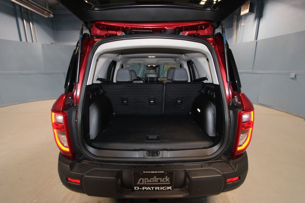 2025 Ford Bronco Sport Badlands We want you to shop confidently for your next used car at The BIG Ford Store, D-Patrick Ford. We are located on Highway 41 and Walnut in Evansville, right next to the Lloyd Expressway. Buy this used vehicle 100% online or in-store. This pre-owned vehicle was put through an extensive inspection before hitting our lot. Because of this, we are able to offer a 3-month/3,000-mile comprehensive limited warranty. You also get our Love It or Return It 5-day, 300-mile Exchange Policy. See our website for more details on both. We also offer extended service plans, vehicle protection plans, and offer a CarFax vehicle history report. *Prices listed do not include a $250 documentation fee, applicable tax, title, tags, license, or $195 service and preparation. All pricing, vehicle information, and features (such as accessories and color) are believed to be accurate, but we do not warrant or guarantee such accuracy. The prices shown above may vary from region to region, and incentives are subject to change. Some offers listed may not be available to all customers. All online sale commitments are subject to confirmation of continued availability of vehicle. Once availability is confirmed, online sale agreement becomes binding upon the parties. If any information found on the website is thought to be erroneous, please verify information with a customer service representative. See dealer for full details. Looking to sell your current vehicle? We buy cars for cash. Every test drive at D-Patrick Ford in Evansville earns $10 to a local charity. Schedule your test drive today! 4-Wheel Disc Brakes, 6 Speakers, ABS brakes, Air Conditioning, Alloy wheels, AM/FM radio: SiriusXM, AM/FM Stereo, Auto High-beam Headlights, Auto-dimming Rear-View mirror, Automatic temperature control, Brake assist, Compass, Delay-off headlights, Driver door bin, Driver vanity mirror, Dual front impact airbags, Dual front side impact airbags, Electronic Stability Control, Emergency communication system: SYNC 4 911 Assist, Equipment Group 400A, Four wheel independent suspension, Front anti-roll bar, Front Bucket Seats, Front Center Armrest, Front fog lights, Front License Plate Bracket, Front reading lights, Fully automatic headlights, Garage door transmitter, Heated door mirrors, Heated front seats, Heated steering wheel, Illuminated entry, Knee airbag, Leather Trimmed Front Bucket Seats, Low tire pressure warning, Memory seat, Occupant sensing airbag, Outside temperature display, Overhead airbag, Overhead console, Panic alarm, Passenger door bin, Passenger vanity mirror, Power door mirrors, Power driver seat, Power passenger seat, Power steering, Power windows, Radio data system, Rear anti-roll bar, Rear reading lights, Rear seat center armrest, Rear window defroster, Rear window wiper, Remote keyless entry, Security system, SiriusXM, Speed control, Speed-sensing steering, Speed-Sensitive Wipers, Split folding rear seat, Steering wheel mounted audio controls, SYNC 4 w/Enhanced Voice Recognition, Tachometer, Telescoping steering wheel, Tilt steering wheel, Traction control, Trip computer, Variably intermittent wipers, Wheels: 17 Matte Black-Painted Aluminum. CARFAX One-Owner. Clean CARFAX. 4D Sport Utility Badlands 8-Speed Automatic EcoBoost 2.0L I4 GTDi DOHC Turbocharged VCT 4WD Ruby Red Metallic CALL TODAY (812) 625-4823 OR SHOP ONLINE AT WWW.DPATRICKFORD.COM.