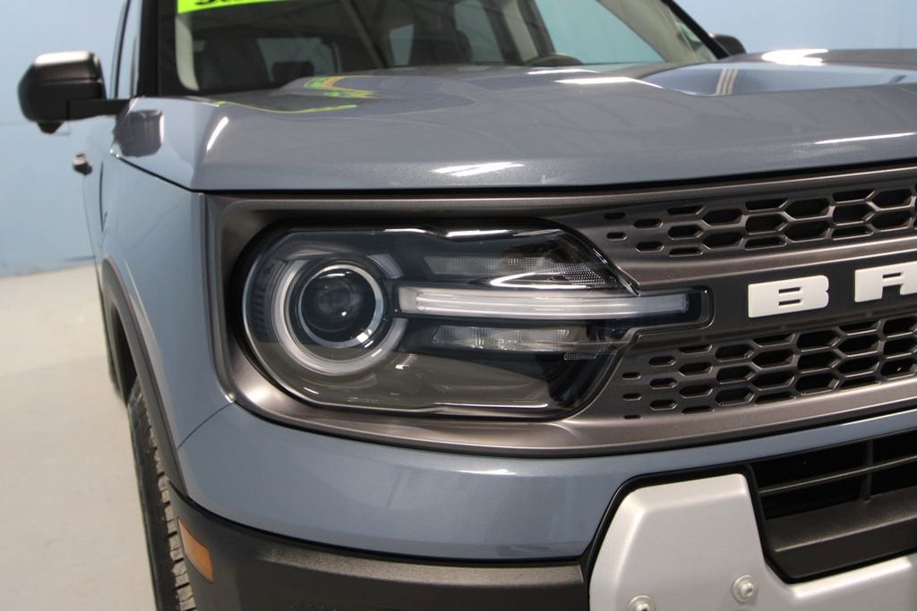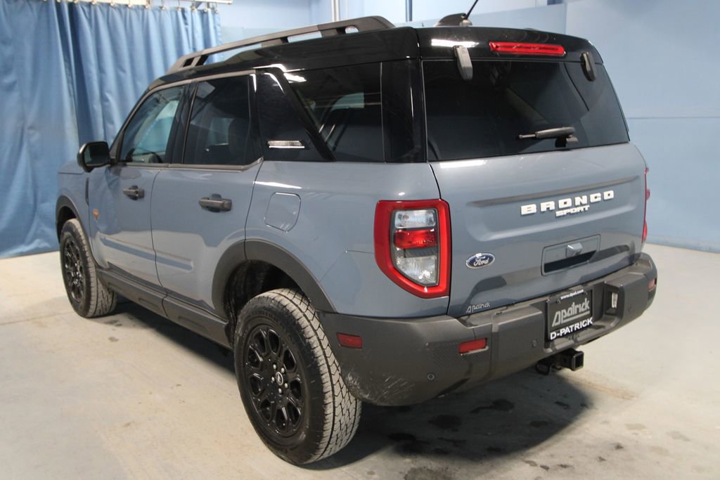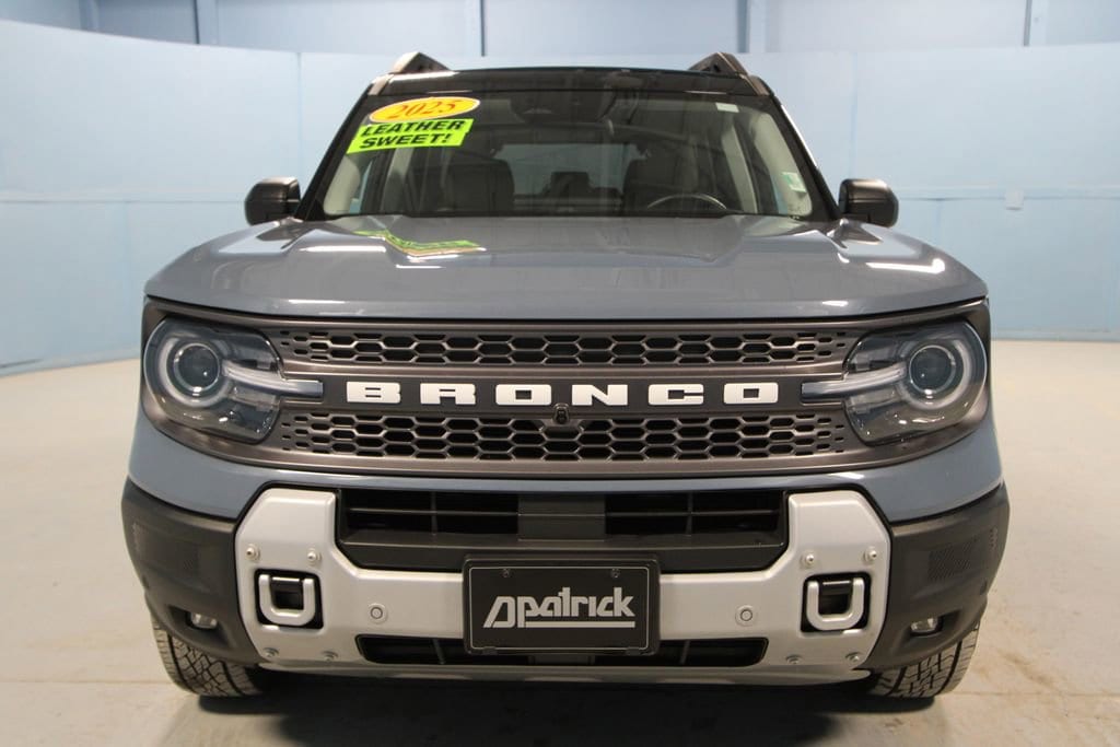 2025 Ford Bronco Sport Badlands We want you to shop confidently for your next used car at The BIG Ford Store, D-Patrick Ford. We are located on Highway 41 and Walnut in Evansville, right next to the Lloyd Expressway. Buy this used vehicle 100% online or in-store. This pre-owned vehicle was put through an extensive inspection before hitting our lot. Because of this, we are able to offer a 3-month/3,000-mile comprehensive limited warranty. You also get our Love It or Return It 5-day, 300-mile Exchange Policy. See our website for more details on both. We also offer extended service plans, vehicle protection plans, and offer a CarFax vehicle history report. *Prices listed do not include a $250 documentation fee, applicable tax, title, tags, license, or $195 service and preparation. All pricing, vehicle information, and features (such as accessories and color) are believed to be accurate, but we do not warrant or guarantee such accuracy. The prices shown above may vary from region to region, and incentives are subject to change. Some offers listed may not be available to all customers. All online sale commitments are subject to confirmation of continued availability of vehicle. Once availability is confirmed, online sale agreement becomes binding upon the parties. If any information found on the website is thought to be erroneous, please verify information with a customer service representative. See dealer for full details. Looking to sell your current vehicle? We buy cars for cash. Every test drive at D-Patrick Ford in Evansville earns $10 to a local charity. Schedule your test drive today! 4-Wheel Disc Brakes, 6 Speakers, ABS brakes, Air Conditioning, Alloy wheels, AM/FM radio: SiriusXM, AM/FM Stereo, Auto High-beam Headlights, Auto-dimming Rear-View mirror, Automatic temperature control, Brake assist, Compass, Delay-off headlights, Driver door bin, Driver vanity mirror, Dual front impact airbags, Dual front side impact airbags, Electronic Stability Control, Emergency communication system: SYNC 4 911 Assist, Equipment Group 400A, Four wheel independent suspension, Front anti-roll bar, Front Bucket Seats, Front Center Armrest, Front fog lights, Front License Plate Bracket, Front reading lights, Fully automatic headlights, Garage door transmitter, Heated door mirrors, Heated front seats, Heated steering wheel, Illuminated entry, Knee airbag, Leather Trimmed Front Bucket Seats, Low tire pressure warning, Memory seat, Occupant sensing airbag, Outside temperature display, Overhead airbag, Overhead console, Panic alarm, Passenger door bin, Passenger vanity mirror, Power door mirrors, Power driver seat, Power passenger seat, Power steering, Power windows, Radio data system, Rear anti-roll bar, Rear reading lights, Rear seat center armrest, Rear window defroster, Rear window wiper, Remote keyless entry, Security system, SiriusXM, Speed control, Speed-sensing steering, Speed-Sensitive Wipers, Split folding rear seat, Steering wheel mounted audio controls, SYNC 4 w/Enhanced Voice Recognition, Tachometer, Telescoping steering wheel, Tilt steering wheel, Traction control, Trip computer, Variably intermittent wipers, Wheels: 17 Matte Black-Painted Aluminum. CARFAX One-Owner. Clean CARFAX. 4D Sport Utility Badlands 8-Speed Automatic EcoBoost 2.0L I4 GTDi DOHC Turbocharged VCT 4WD Azure Gray Metallic CALL TODAY (812) 625-4823 OR SHOP ONLINE AT WWW.DPATRICKFORD.COM.
