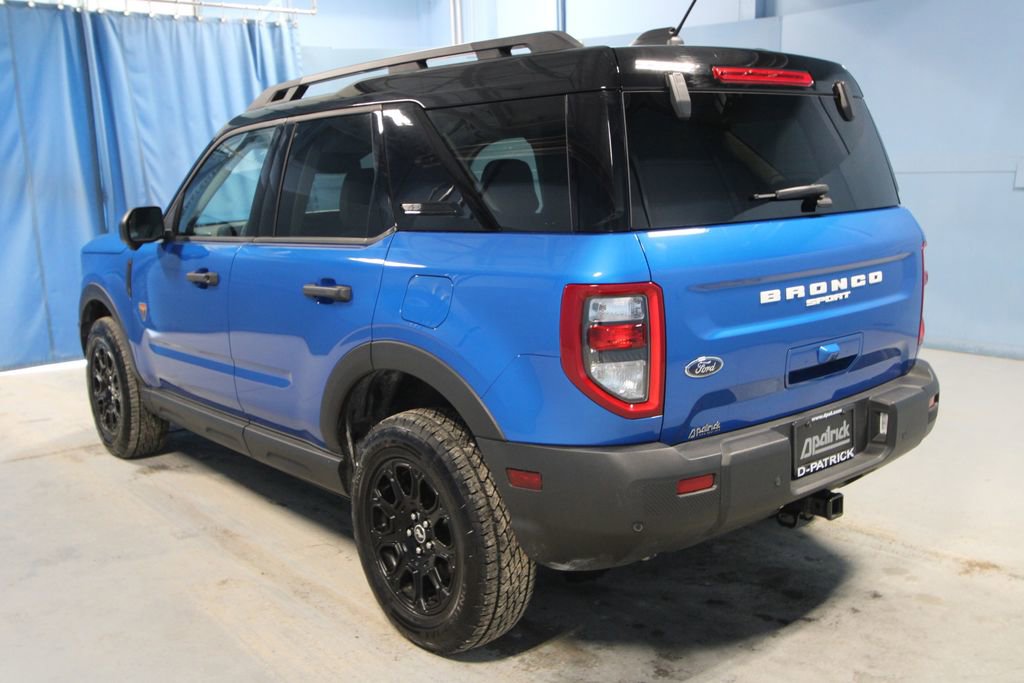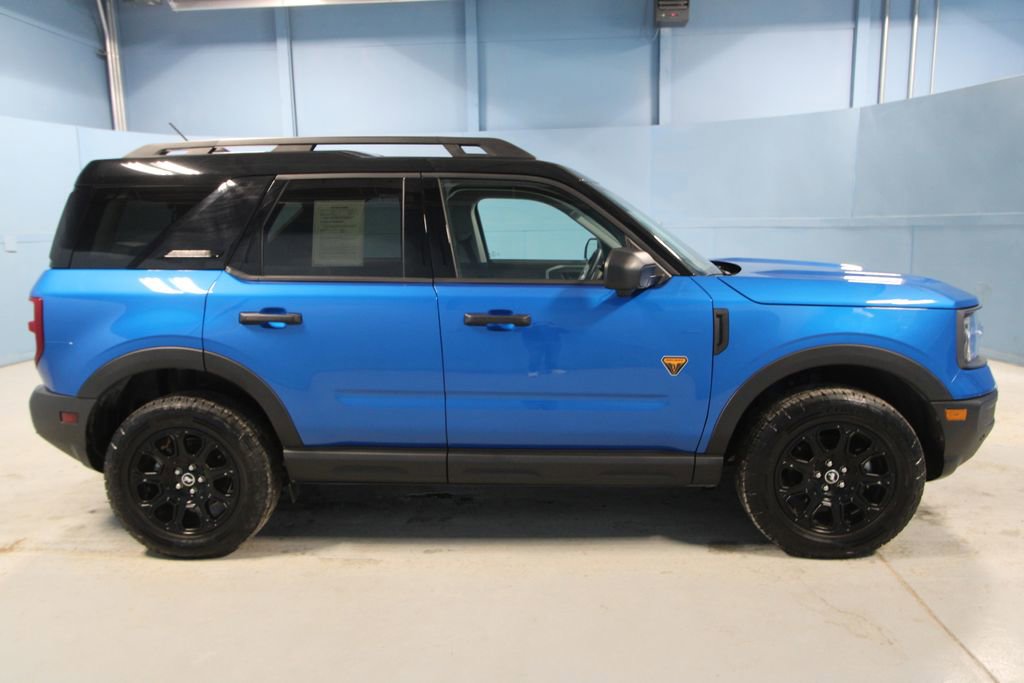 2025 Ford Bronco Sport Badlands We want you to shop confidently for your next used car at The BIG Ford Store, D-Patrick Ford. We are located on Highway 41 and Walnut in Evansville, right next to the Lloyd Expressway. Buy this used vehicle 100% online or in-store. This pre-owned vehicle was put through an extensive inspection before hitting our lot. Because of this, we are able to offer a 3-month/3,000-mile comprehensive limited warranty. You also get our Love It or Return It 5-day, 300-mile Exchange Policy. See our website for more details on both. We also offer extended service plans, vehicle protection plans, and offer a CarFax vehicle history report. *Prices listed do not include a $250 documentation fee, applicable tax, title, tags, license, or $195 service and preparation. All pricing, vehicle information, and features (such as accessories and color) are believed to be accurate, but we do not warrant or guarantee such accuracy. The prices shown above may vary from region to region, and incentives are subject to change. Some offers listed may not be available to all customers. All online sale commitments are subject to confirmation of continued availability of vehicle. Once availability is confirmed, online sale agreement becomes binding upon the parties. If any information found on the website is thought to be erroneous, please verify information with a customer service representative. See dealer for full details. Looking to sell your current vehicle? We buy cars for cash. Every test drive at D-Patrick Ford in Evansville earns $10 to a local charity. Schedule your test drive today! 4-Wheel Disc Brakes, 6 Speakers, ABS brakes, Air Conditioning, Alloy wheels, AM/FM radio: SiriusXM, AM/FM Stereo, Auto High-beam Headlights, Auto-dimming Rear-View mirror, Automatic temperature control, Brake assist, Compass, Delay-off headlights, Driver door bin, Driver vanity mirror, Dual front impact airbags, Dual front side impact airbags, Electronic Stability Control, Emergency communication system: SYNC 4 911 Assist, Equipment Group 400A, Four wheel independent suspension, Front anti-roll bar, Front Bucket Seats, Front Center Armrest, Front fog lights, Front License Plate Bracket, Front reading lights, Fully automatic headlights, Garage door transmitter, Heated door mirrors, Heated front seats, Heated steering wheel, Illuminated entry, Knee airbag, Leather Trimmed Front Bucket Seats, Low tire pressure warning, Memory seat, Occupant sensing airbag, Outside temperature display, Overhead airbag, Overhead console, Panic alarm, Passenger door bin, Passenger vanity mirror, Power door mirrors, Power driver seat, Power passenger seat, Power steering, Power windows, Radio data system, Rear anti-roll bar, Rear reading lights, Rear seat center armrest, Rear window defroster, Rear window wiper, Remote keyless entry, Security system, SiriusXM, Speed control, Speed-sensing steering, Speed-Sensitive Wipers, Split folding rear seat, Steering wheel mounted audio controls, SYNC 4 w/Enhanced Voice Recognition, Tachometer, Telescoping steering wheel, Tilt steering wheel, Traction control, Trip computer, Variably intermittent wipers, Wheels: 17 Matte Black-Painted Aluminum. CARFAX One-Owner. Clean CARFAX. 4D Sport Utility Badlands 8-Speed Automatic EcoBoost 2.0L I4 GTDi DOHC Turbocharged VCT 4WD Blue Metallic CALL TODAY (812) 625-4823 OR SHOP ONLINE AT WWW.DPATRICKFORD.COM.