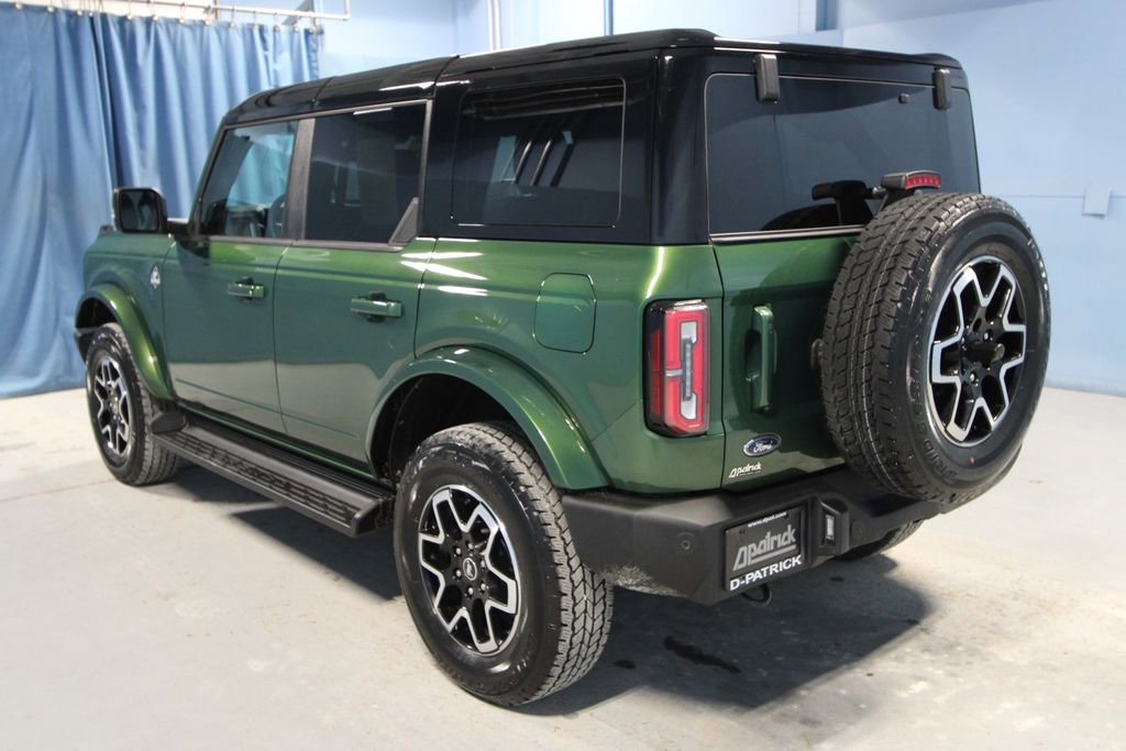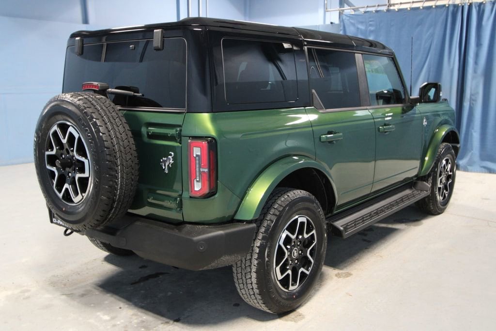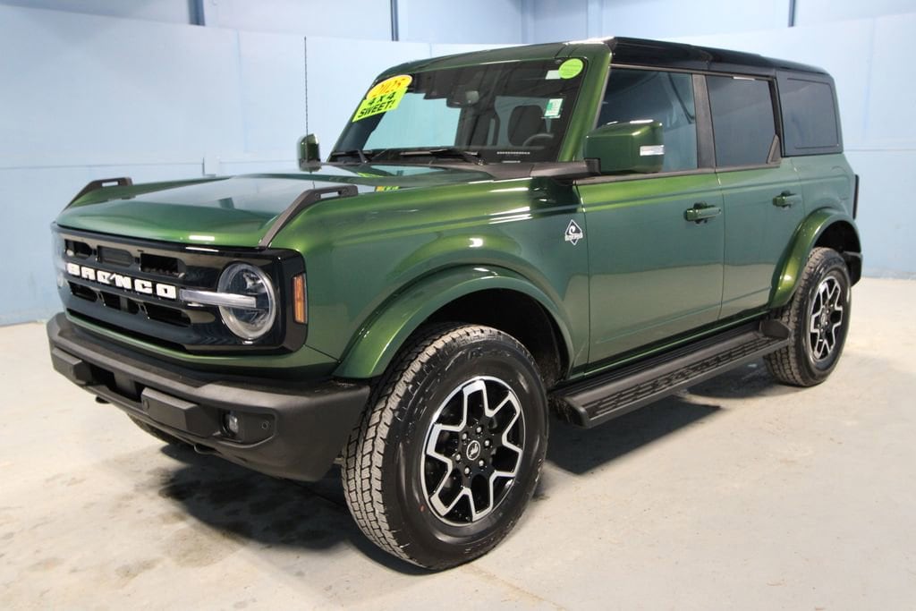 2025 Ford Bronco Outer Banks We want you to shop confidently for your next used car at The BIG Ford Store, D-Patrick Ford. We are located on Highway 41 and Walnut in Evansville, right next to the Lloyd Expressway. Buy this used vehicle 100% online or in-store. This pre-owned vehicle was put through an extensive inspection before hitting our lot. Because of this, we are able to offer a 3-month/3,000-mile comprehensive limited warranty. You also get our Love It or Return It 5-day, 300-mile Exchange Policy. See our website for more details on both. We also offer extended service plans, vehicle protection plans, and offer a CarFax vehicle history report. *Prices listed do not include a $250 documentation fee, applicable tax, title, tags, license, or $195 service and preparation. All pricing, vehicle information, and features (such as accessories and color) are believed to be accurate, but we do not warrant or guarantee such accuracy. The prices shown above may vary from region to region, and incentives are subject to change. Some offers listed may not be available to all customers. All online sale commitments are subject to confirmation of continued availability of vehicle. Once availability is confirmed, online sale agreement becomes binding upon the parties. If any information found on the website is thought to be erroneous, please verify information with a customer service representative. See dealer for full details. Looking to sell your current vehicle? We buy cars for cash. Every test drive at D-Patrick Ford in Evansville earns $10 to a local charity. Schedule your test drive today! 18 Bright Machined Aluminum Wheels, 3.73 Axle Ratio, 4-Wheel Disc Brakes, 7 Speakers, ABS brakes, Air Conditioning, Alloy wheels, AM/FM radio: SiriusXM with 360L, AM/FM Stereo, Auto High-beam Headlights, Auto-dimming Rear-View mirror, Automatic temperature control, Brake assist, Compass, Connected Navigation, Delay-off headlights, Driver door bin, Driver vanity mirror, Dual front impact airbags, Dual front side impact airbags, Electronic Stability Control, Emergency communication system: 911 Assist, Equipment Group 314A Lux Package, Exterior Parking Camera Rear, Front & Rear Floor Liners, Front anti-roll bar, Front Bucket Seats, Front Center Armrest, Front dual zone A/C, Front fog lights, Front Parking Sensors, Front reading lights, Front wheel independent suspension, Fully automatic headlights, Hard Top Sound Deadening Headliner, Heated door mirrors, Heated front seats, Heated Leather-Trimmed/Vinyl Bucket Seats, Heated steering wheel, Illuminated entry, Integrated roll-over protection, Internet access capable: FordPass Connect, Leather Shift Knob, Low tire pressure warning, Navigation system: Connected Navigation, Occupant sensing airbag, Outside temperature display, Overhead airbag, Overhead console, Panic alarm, Passenger door bin, Passenger vanity mirror, Power door mirrors, Power driver seat, Power passenger seat, Power steering, Power windows, Radio data system, Rear seat center armrest, Rear-Window Defroster & Washer, Remote keyless entry, Security system, Shadow Black-Painted Hard Top, SiriusXM w/360L, Speed control, Split folding rear seat, Steering wheel mounted audio controls, SYNC 4, Tachometer, Telescoping steering wheel, Tilt steering wheel, Traction control, Trip computer, Variably intermittent wipers, Voltmeter. CARFAX One-Owner. 4D Sport Utility Outer Banks 10-Speed Automatic 2.7L EcoBoost V6 4WD Green Metallic CALL TODAY (812) 625-4823 OR SHOP ONLINE AT WWW.DPATRICKFORD.COM.
