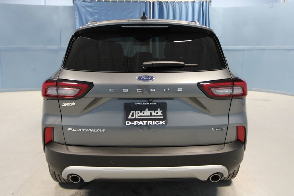 2025 Ford Escape Hybrid Platinum We want you to shop confidently for your next used car at The BIG Ford Store, D-Patrick Ford. We are located on Highway 41 and Walnut in Evansville, right next to the Lloyd Expressway. Buy this used vehicle 100% online or in-store. This pre-owned vehicle was put through an extensive inspection before hitting our lot. Because of this, we are able to offer a 3-month/3,000-mile comprehensive limited warranty. You also get our Love It or Return It 5-day, 300-mile Exchange Policy. See our website for more details on both. We also offer extended service plans, vehicle protection plans, and offer a CarFax vehicle history report. *Prices listed do not include a $250 documentation fee, applicable tax, title, tags, license, or $195 service and preparation. All pricing, vehicle information, and features (such as accessories and color) are believed to be accurate, but we do not warrant or guarantee such accuracy. The prices shown above may vary from region to region, and incentives are subject to change. Some offers listed may not be available to all customers. All online sale commitments are subject to confirmation of continued availability of vehicle. Once availability is confirmed, online sale agreement becomes binding upon the parties. If any information found on the website is thought to be erroneous, please verify information with a customer service representative. See dealer for full details. Looking to sell your current vehicle? We buy cars for cash. Every test drive at D-Patrick Ford in Evansville earns $10 to a local charity. Schedule your test drive today! 2.5L iVCT, 2.91 Axle Ratio, 360-Degree Camera w/Split View, 4-Wheel Disc Brakes, 6 Speakers, ABS brakes, Air Conditioning, Alloy wheels, AM/FM radio: SiriusXM, AM/FM Stereo, Auto High-beam Headlights, Auto-dimming Rear-View mirror, Automatic temperature control, Brake assist, Bumpers: body-color, Compass, Delay-off headlights, Driver door bin, Driver vanity mirror, Dual front impact airbags, Dual front side impact airbags, Electronic Fuel Door Release, Electronic Stability Control, Emergency communication system: SYNC 4 911 Assist, Equipment Group 600A, FordPass Connect, Four wheel independent suspension, Front & Rear Floor Liners w/o Carpet Mats, Front anti-roll bar, Front Bucket Seats, Front Center Armrest, Front dual zone A/C, Front fog lights, Front Parking Sensors, Front reading lights, Fully automatic headlights, HD Radio, Head-Up Display, Heated ActiveX Trimmed Front Sport Contour Bucket Seats, Heated ActiveX-Trimmed Front Sport Contour Seats, Heated door mirrors, Heated front seats, Heated steering wheel, Illuminated entry, Internet access capable: FordPass Connect 4G, Knee airbag, Low tire pressure warning, Memory seat, Navigation system: Connected Navigation, Neutral Towing Capability, Occupant sensing airbag, Outside temperature display, Overhead airbag, Overhead console, Panic alarm, Passenger door bin, Passenger vanity mirror, Pedestrian Alert Sounder, Power door mirrors, Power driver seat, Power Liftgate, Power passenger seat, Power steering, Power windows, Premium Technology Package, Radio data system, Radio: B&O Sound System by Bang & Olufsen, Rear anti-roll bar, Rear reading lights, Rear seat center armrest, Rear window defroster, Rear window wiper, Remote keyless entry, Reverse Brake Assist, Security system, Speed control, Speed-sensing steering, Speed-Sensitive Wipers, Split folding rear seat, Spoiler, Steering wheel mounted audio controls, SYNC 4 w/Enhanced Voice Recognition, Tachometer, Telescoping steering wheel, Tilt steering wheel, Traction control, Trip computer, Variably intermittent wipers, Wheels: 19 Machined-Face Aluminum, 2.5L iVCT. CARFAX One-Owner. Clean CARFAX. 4D Sport Utility Platinum eCVT 2.5L iVCT AWD Gray Metallic CALL TODAY (812) 625-4823 OR SHOP ONLINE AT WWW.DPATRICKFORD.COM.
