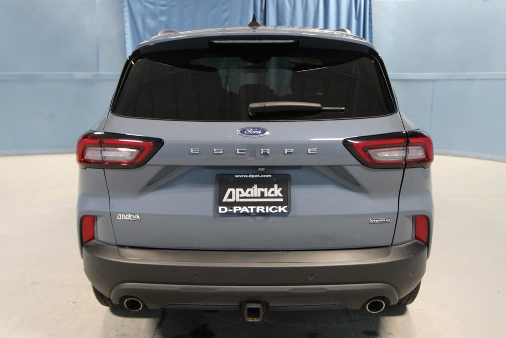 2025 Ford Escape Hybrid ST-Line Select We want you to shop confidently for your next used car at The BIG Ford Store, D-Patrick Ford. We are located on Highway 41 and Walnut in Evansville, right next to the Lloyd Expressway. Buy this used vehicle 100% online or in-store. This pre-owned vehicle was put through an extensive inspection before hitting our lot. Because of this, we are able to offer a 3-month/3,000-mile comprehensive limited warranty. You also get our Love It or Return It 5-day, 300-mile Exchange Policy. See our website for more details on both. We also offer extended service plans, vehicle protection plans, and offer a CarFax vehicle history report. *Prices listed do not include a $250 documentation fee, applicable tax, title, tags, license, or $195 service and preparation. All pricing, vehicle information, and features (such as accessories and color) are believed to be accurate, but we do not warrant or guarantee such accuracy. The prices shown above may vary from region to region, and incentives are subject to change. Some offers listed may not be available to all customers. All online sale commitments are subject to confirmation of continued availability of vehicle. Once availability is confirmed, online sale agreement becomes binding upon the parties. If any information found on the website is thought to be erroneous, please verify information with a customer service representative. See dealer for full details. Looking to sell your current vehicle? We buy cars for cash. Every test drive at D-Patrick Ford in Evansville earns $10 to a local charity. Schedule your test drive today! 2.5L iVCT, 2.91 Axle Ratio, 4-Wheel Disc Brakes, 6 Speakers, ABS brakes, Adaptive Cruise Control w/Stop-and-Go, Air Conditioning, Alloy wheels, AM/FM radio: SiriusXM, AM/FM Stereo, Auto High-beam Headlights, Automatic temperature control, Brake assist, Bumpers: body-color, Class II Trailer Tow Package, Compass, Connected Navigation, Delay-off headlights, Driver door bin, Driver vanity mirror, Dual front impact airbags, Dual front side impact airbags, Easy Access Cargo Shade, Electronic Fuel Door Release, Electronic Stability Control, Emergency communication system: SYNC 4 911 Assist, Equipment Group 400A, Ford Co-Pilot360 Assist+, FordPass Connect, Four wheel independent suspension, Front & Rear Floor Liners w/Carpet Mats, Front anti-roll bar, Front Bucket Seats, Front Center Armrest, Front dual zone A/C, Front fog lights, Front reading lights, Fully automatic headlights, Heated door mirrors, Heated front seats, Heated steering wheel, Heated Vinyl/Cloth Front Sport Contour Bucket Seats, Illuminated entry, Internet access capable: FordPass Connect 4G, Intersection Assist, Knee airbag, Low tire pressure warning, Neutral Towing Capability, Occupant sensing airbag, Outside temperature display, Overhead airbag, Overhead console, Panic alarm, Passenger door bin, Passenger vanity mirror, Pedestrian Alert Sounder, Power door mirrors, Power driver seat, Power Liftgate, Power steering, Power windows, Predictive Speed Assist, Radio data system, Rear anti-roll bar, Rear Parking Sensor, Rear reading lights, Rear seat center armrest, Rear window defroster, Rear window wiper, Rear-View Camera, Remote keyless entry, Speed control, Speed-sensing steering, Speed-Sensitive Wipers, Split folding rear seat, Spoiler, Sport steering wheel, Steering wheel mounted audio controls, SYNC 4, SYNC 4 w/Enhanced Voice Recognition, Tachometer, Tech Pack #1, Telescoping steering wheel, Tilt steering wheel, Traction control, Trip computer, Variably intermittent wipers, Wheels: 18 Rock Metallic Painted Aluminum, Wheels: 19 Machined-Face Ebony-Painted Aluminum, 2.5L iVCT. CARFAX One-Owner. Clean CARFAX. 4D Sport Utility ST-Line Select eCVT 2.5L iVCT AWD Vapor Blue CALL TODAY (812) 625-4823 OR SHOP ONLINE AT WWW.DPATRICKFORD.COM.