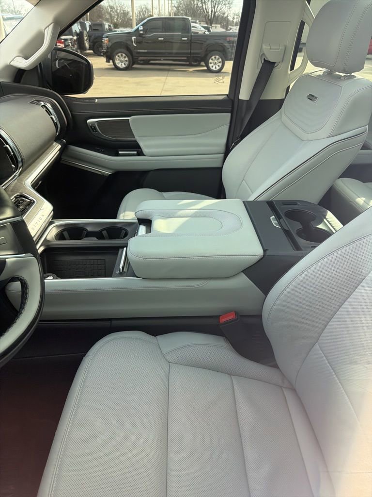 2025 Ford Expedition Platinum Recent Arrival! We want you to shop confidently for your next used car at The BIG Ford Store, D-Patrick Ford. We are located on Highway 41 and Walnut in Evansville, right next to the Lloyd Expressway. Buy this used vehicle 100% online or in-store. This pre-owned vehicle was put through an extensive inspection before hitting our lot. Because of this, we are able to offer a 3-month/3,000-mile comprehensive limited warranty. You also get our Love It or Return It 5-day, 300-mile Exchange Policy. See our website for more details on both. We also offer extended service plans, vehicle protection plans, and offer a CarFax vehicle history report. *Prices listed do not include a $250 documentation fee, applicable tax, title, tags, license, or $195 service and preparation. All pricing, vehicle information, and features (such as accessories and color) are believed to be accurate, but we do not warrant or guarantee such accuracy. The prices shown above may vary from region to region, and incentives are subject to change. Some offers listed may not be available to all customers. All online sale commitments are subject to confirmation of continued availability of vehicle. Once availability is confirmed, online sale agreement becomes binding upon the parties. If any information found on the website is thought to be erroneous, please verify information with a customer service representative. See dealer for full details. Looking to sell your current vehicle? We buy cars for cash. Every test drive at D-Patrick Ford in Evansville earns $10 to a local charity. Schedule your test drive today! 4WD, 10 Speakers, 2nd Row Power-Folding Captain's Chairs, 3.73 Axle Ratio, 3rd row seats: split-bench, 4-Wheel Disc Brakes, ABS brakes, Adjustable pedals, Air Conditioning, Alloy wheels, AM/FM radio: SiriusXM with 360L, Apple CarPlay/Android Auto, Auto High-beam Headlights, Auto-dimming door mirrors, Auto-dimming Rear-View mirror, Automatic temperature control, Black Headlamp Bezel w/Satin Trim Applique, BlueCruise Equipped (1-Year Plan), Brake assist, Bumpers: body-color, Carbon Black Front Bumper w/Lit Grille Bar, Compass, Connectivity Package (One-Time Purchase), Continuous Control Damping Suspension, Delay-off headlights, Driver door bin, Driver vanity mirror, Driver's Package, Dual front impact airbags, Dual front side impact airbags, Electronic Stability Control, Emergency communication system: 911 Assist, Engine Sound Enhancer, Equipment Group 600A Standard Package, Exterior Parking Camera Rear, Four wheel independent suspension, Front anti-roll bar, Front Bucket Seats, Front Center Armrest, Front Door Scuff Plates w/Met Insert & Bright Rear, Front dual zone A/C, Front reading lights, Fully automatic headlights, Garage door transmitter, Genuine wood dashboard insert, Genuine wood door panel insert, Heated & Ventilated Leather Front Captain's Chairs, Heated door mirrors, Heated front seats, Heated rear seats, Heated steering wheel, High Flow Exhaust System, Illuminated entry, Leather steering wheel, Low tire pressure warning, Memory seat, Multicontour Active Motion Lthr Frnt Captains Chairs, Navigation System, Occupant sensing airbag, Outside temperature display, Overhead airbag, Overhead console, Panic alarm, Passenger door bin, Passenger vanity mirror, Pedal memory, Platinum Ultimate Interior Package, Platinum Ultimate Package, Polished Stainless Steel Beltline Molding, Power door mirrors, Power driver seat, Power moonroof: Vista Roof, Power passenger seat, Power steering, Power windows, Radio data system, Radio: B&O Sound System by Bang & Olufsen, Radio: B&O Unleashed Sound System by Bang & Olufsen, Rain sensing wipers, Rear air conditioning, Rear anti-roll bar, Rear reading lights, Rear Seat Radio Controls, Rear Side Windows Laminated Glass, Rear window defroster, Rear window wiper, Reclining 3rd row seat, Remote keyless entry, Satin Aluminum Expedition Lettering On Side & Hood, Satin Aluminum Platinum Badge On Tailgate,
