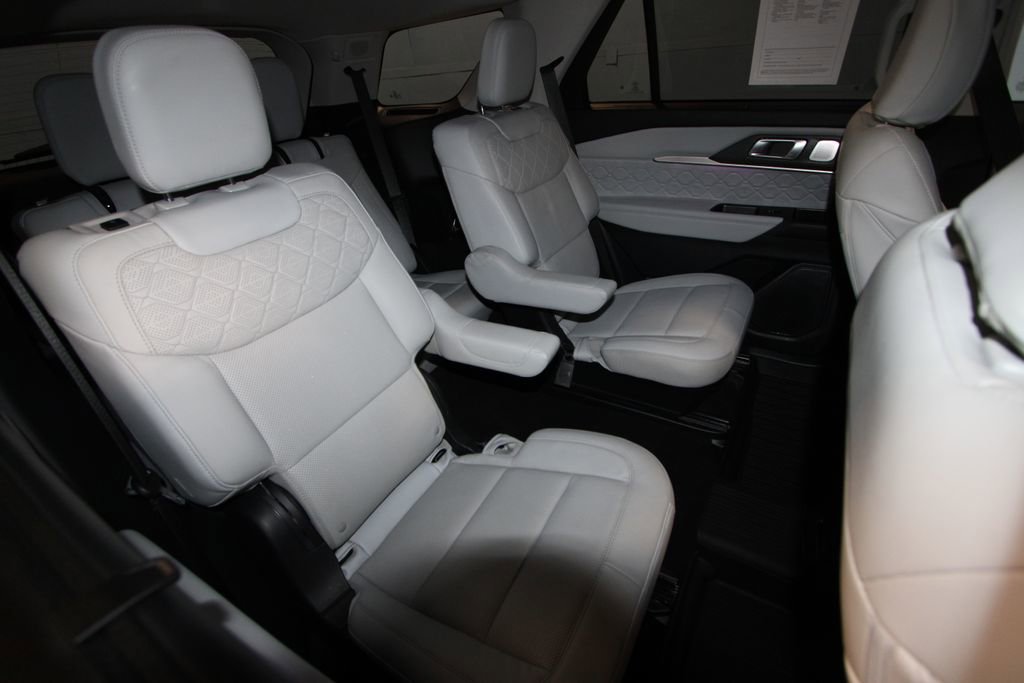 2025 Ford Explorer Platinum We want you to shop confidently for your next used car at The BIG Ford Store, D-Patrick Ford. We are located on Highway 41 and Walnut in Evansville, right next to the Lloyd Expressway. Buy this used vehicle 100% online or in-store. This pre-owned vehicle was put through an extensive inspection before hitting our lot. Because of this, we are able to offer a 3-month/3,000-mile comprehensive limited warranty. You also get our Love It or Return It 5-day, 300-mile Exchange Policy. See our website for more details on both. We also offer extended service plans, vehicle protection plans, and offer a CarFax vehicle history report. *Prices listed do not include a $250 documentation fee, applicable tax, title, tags, license, or $195 service and preparation. All pricing, vehicle information, and features (such as accessories and color) are believed to be accurate, but we do not warrant or guarantee such accuracy. The prices shown above may vary from region to region, and incentives are subject to change. Some offers listed may not be available to all customers. All online sale commitments are subject to confirmation of continued availability of vehicle. Once availability is confirmed, online sale agreement becomes binding upon the parties. If any information found on the website is thought to be erroneous, please verify information with a customer service representative. See dealer for full details. Looking to sell your current vehicle? We buy cars for cash. Every test drive at D-Patrick Ford in Evansville earns $10 to a local charity. Schedule your test drive today! 14 Speakers, 3.58 Non-Limited Slip Rear Axle, 3rd row seats: bench, 4-Wheel Disc Brakes, ABS brakes, ActiveX Trimmed Sport Captain's Chairs, Air Conditioning, Alloy wheels, AM/FM radio: SiriusXM with 360L, Apple CarPlay/Android Auto, Auto High-beam Headlights, Auto-dimming door mirrors, Auto-dimming Rear-View mirror, Automatic temperature control, Brake assist, Bumpers: body-color, Compass, Delay-off headlights, Driver door bin, Driver vanity mirror, Dual front impact airbags, Dual front side impact airbags, Electronic Stability Control, Emergency communication system: 911 Assist, Equipment Group 600A Standard Package, Exterior Parking Camera Rear, Four wheel independent suspension, Front & 2nd Rows Floor Liners w/Carpet Floor Mats, Front anti-roll bar, Front Bucket Seats, Front Center Armrest, Front dual zone A/C, Front fog lights, Front reading lights, Fully automatic headlights, Garage door transmitter, Heated door mirrors, Heated front seats, Heated rear seats, Heated steering wheel, Illuminated entry, Knee airbag, Leather Seating Surfaces Sport Captain Chairs, Leather steering wheel, Low tire pressure warning, Lux Leather Package, Memory seat, Navigation System, Occupant sensing airbag, Outside temperature display, Overhead airbag, Overhead console, Panic alarm, Passenger door bin, Passenger vanity mirror, Platinum Badges on Front Row Seats, Power door mirrors, Power driver seat, Power Liftgate, Power moonroof, Power passenger seat, Power steering, Power windows, Quilting & Stitching on Door Panels, Quilting & Stitching on Seats, Radio data system, Radio: B&O Sound System by Bang & Olufsen w/HD, Rain sensing wipers, Rear air conditioning, Rear anti-roll bar, Rear reading lights, Rear window defroster, Rear window wiper, Remote keyless entry, Security system, Speed control, Speed-sensing steering, Speed-Sensitive Wipers, Split folding rear seat, Spoiler, Steering wheel mounted audio controls, Tachometer, Telescoping steering wheel, Tilt steering wheel, Traction control, Trip computer, Turn signal indicator mirrors, Ultimate Package, Variably intermittent wipers, Ventilated front seats, Wheels: 20 Luster Nickel-Painted Aluminum, Wheels: 21 Dark Alloy-Painted Machined Aluminum. CARFAX One-Owner. Clean CARFAX. 4D Sport Utility Platinum 10-Speed Automatic 3.0L EcoBoost V6 RWD Black Metallic CALL TODAY (812) 625-4823 OR SHOP ONLINE AT WWW.DPATRICK
