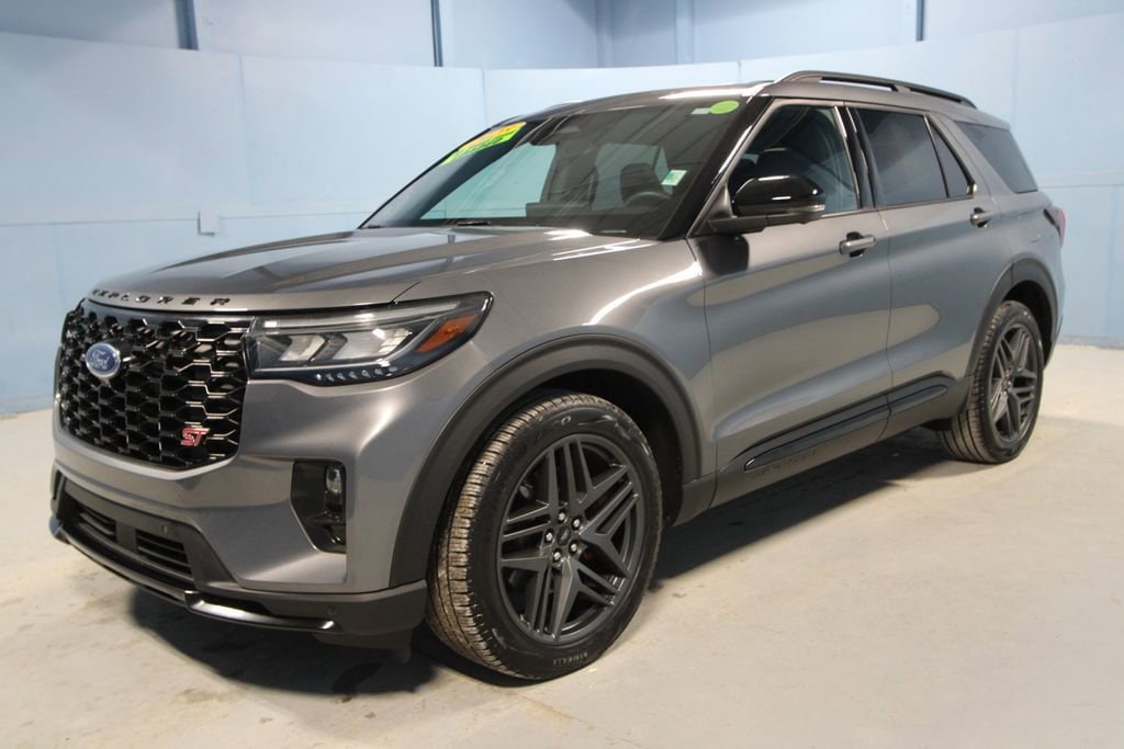 2025 Ford Explorer ST We want you to shop confidently for your next used car at The BIG Ford Store, D-Patrick Ford. We are located on Highway 41 and Walnut in Evansville, right next to the Lloyd Expressway. Buy this used vehicle 100% online or in-store. This pre-owned vehicle was put through an extensive inspection before hitting our lot. Because of this, we are able to offer a 3-month/3,000-mile comprehensive limited warranty. You also get our Love It or Return It 5-day, 300-mile Exchange Policy. See our website for more details on both. We also offer extended service plans, vehicle protection plans, and offer a CarFax vehicle history report. *Prices listed do not include a $250 documentation fee, applicable tax, title, tags, license, or $195 service and preparation. All pricing, vehicle information, and features (such as accessories and color) are believed to be accurate, but we do not warrant or guarantee such accuracy. The prices shown above may vary from region to region, and incentives are subject to change. Some offers listed may not be available to all customers. All online sale commitments are subject to confirmation of continued availability of vehicle. Once availability is confirmed, online sale agreement becomes binding upon the parties. If any information found on the website is thought to be erroneous, please verify information with a customer service representative. See dealer for full details. Looking to sell your current vehicle? We buy cars for cash. Every test drive at D-Patrick Ford in Evansville earns $10 to a local charity. Schedule your test drive today! 4WD, 10 Speakers, 3.58 Non-Limited Slip Rear Axle, 3rd row seats: bench, 4-Wheel Disc Brakes, ABS brakes, Air Conditioning, Alloy wheels, AM/FM radio: SiriusXM with 360L, Apple CarPlay/Android Auto, Auto High-beam Headlights, Auto-dimming door mirrors, Auto-dimming Rear-View mirror, Automatic temperature control, Brake assist, Bumpers: body-color, Compass, Delay-off headlights, Driver door bin, Driver vanity mirror, Dual front impact airbags, Dual front side impact airbags, Electronic Stability Control, Emergency communication system: 911 Assist, Equipment Group 400A Standard Package, Exterior Parking Camera Rear, Four wheel independent suspension, Front & 2nd Rows Floor Liners w/Carpet Floor Mats, Front anti-roll bar, Front Bucket Seats, Front Center Armrest, Front dual zone A/C, Front fog lights, Front reading lights, Fully automatic headlights, Garage door transmitter, Heated door mirrors, Heated front seats, Heated rear seats, Heated steering wheel, Heated/Ventilated Miko Sport Captain's Chairs, Illuminated entry, Internet access capable: FordPass Connect 5G, Knee airbag, Leather steering wheel, Low tire pressure warning, Memory seat, Navigation System, Occupant sensing airbag, Outside temperature display, Overhead airbag, Overhead console, Panic alarm, Passenger door bin, Passenger vanity mirror, Power door mirrors, Power driver seat, Power Liftgate, Power passenger seat, Power steering, Power windows, Radio: B&O Sound System by Bang & Olufsen, Rain sensing wipers, Rear air conditioning, Rear anti-roll bar, Rear reading lights, Rear window defroster, Rear window wiper, Remote keyless entry, Security system, Speed control, Speed-sensing steering, Speed-Sensitive Wipers, Split folding rear seat, Spoiler, Sport steering wheel, Steering wheel mounted audio controls, Tachometer, Telescoping steering wheel, Tilt steering wheel, Traction control, Trip computer, Turn signal indicator mirrors, Variably intermittent wipers, Ventilated front seats, Wheels: 21 Magnetite-Painted Aluminum, 4WD. CARFAX One-Owner. Clean CARFAX. 4D Sport Utility ST 10-Speed Automatic 3.0L EcoBoost V6 4WD Gray Metallic CALL TODAY (812) 625-4823 OR SHOP ONLINE AT WWW.DPATRICKFORD.COM.