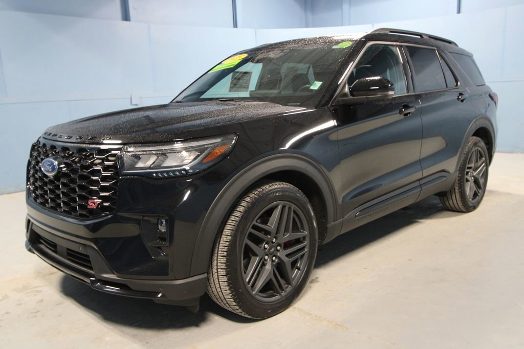 2025 Ford Explorer ST We want you to shop confidently for your next used car at The BIG Ford Store, D-Patrick Ford. We are located on Highway 41 and Walnut in Evansville, right next to the Lloyd Expressway. Buy this used vehicle 100% online or in-store. This pre-owned vehicle was put through an extensive inspection before hitting our lot. Because of this, we are able to offer a 3-month/3,000-mile comprehensive limited warranty. You also get our Love It or Return It 5-day, 300-mile Exchange Policy. See our website for more details on both. We also offer extended service plans, vehicle protection plans, and offer a CarFax vehicle history report. *Prices listed do not include a $250 documentation fee, applicable tax, title, tags, license, or $195 service and preparation. All pricing, vehicle information, and features (such as accessories and color) are believed to be accurate, but we do not warrant or guarantee such accuracy. The prices shown above may vary from region to region, and incentives are subject to change. Some offers listed may not be available to all customers. All online sale commitments are subject to confirmation of continued availability of vehicle. Once availability is confirmed, online sale agreement becomes binding upon the parties. If any information found on the website is thought to be erroneous, please verify information with a customer service representative. See dealer for full details. Looking to sell your current vehicle? We buy cars for cash. Every test drive at D-Patrick Ford in Evansville earns $10 to a local charity. Schedule your test drive today! 4WD, 10 Speakers, 3.58 Non-Limited Slip Rear Axle, 3rd row seats: bench, 4-Wheel Disc Brakes, ABS brakes, Air Conditioning, Alloy wheels, AM/FM radio: SiriusXM with 360L, Apple CarPlay/Android Auto, Auto High-beam Headlights, Auto-dimming door mirrors, Auto-dimming Rear-View mirror, Automatic temperature control, Brake assist, Bumpers: body-color, Compass, Delay-off headlights, Driver door bin, Driver vanity mirror, Dual front impact airbags, Dual front side impact airbags, Electronic Stability Control, Emergency communication system: 911 Assist, Equipment Group 400A Standard Package, Exterior Parking Camera Rear, Four wheel independent suspension, Front & 2nd Rows Floor Liners w/Carpet Floor Mats, Front anti-roll bar, Front Bucket Seats, Front Center Armrest, Front dual zone A/C, Front fog lights, Front reading lights, Fully automatic headlights, Garage door transmitter, Heated door mirrors, Heated front seats, Heated rear seats, Heated steering wheel, Heated/Ventilated Miko Sport Captain's Chairs, Illuminated entry, Internet access capable: FordPass Connect 5G, Knee airbag, Leather steering wheel, Low tire pressure warning, Memory seat, Navigation System, Occupant sensing airbag, Outside temperature display, Overhead airbag, Overhead console, Panic alarm, Passenger door bin, Passenger vanity mirror, Power door mirrors, Power driver seat, Power Liftgate, Power passenger seat, Power steering, Power windows, Radio: B&O Sound System by Bang & Olufsen, Rain sensing wipers, Rear air conditioning, Rear anti-roll bar, Rear reading lights, Rear window defroster, Rear window wiper, Remote keyless entry, Security system, Speed control, Speed-sensing steering, Speed-Sensitive Wipers, Split folding rear seat, Spoiler, Sport steering wheel, Steering wheel mounted audio controls, Tachometer, Telescoping steering wheel, Tilt steering wheel, Traction control, Trip computer, Turn signal indicator mirrors, Variably intermittent wipers, Ventilated front seats, Wheels: 21 Magnetite-Painted Aluminum, 4WD. CARFAX One-Owner. Clean CARFAX. 4D Sport Utility ST 10-Speed Automatic 3.0L EcoBoost V6 4WD Black Metallic CALL TODAY (812) 625-4823 OR SHOP ONLINE AT WWW.DPATRICKFORD.COM.