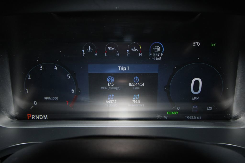 • ENGINE: 3.5L POWERBOOST FULL-HYBRID V6 -inc: Pro Power Onboard 2.4KW and removes 36 gallon fuel tank (STD),Turbocharged,Locking/Limited Slip Differential,Four Wheel Drive,Tow Hitch,Power Steering,ABS,4-Wheel Disc Brakes,Brake Assist,Lithium Ion Traction Battery,Aluminum Wheels,Tires - Front All-Terrain,Tires - Rear All-Terrain,Conventional Spare Tire,Tow Hooks,Heated Mirrors,Power Mirror(s),Intermittent Wipers,Variable Speed Intermittent Wipers,Rear Defrost,Privacy Glass,Daytime Running Lights,Automatic Headlights,LED Headlights,Automatic Highbeams,Fog Lamps,AM/FM Stereo,Satellite Radio,Cloth Seats,Bucket Seats,Pass-Through Rear Seat,Rear Bench Seat,Adjustable Steering Wheel,WiFi Hotspot,Keyless Entry,Cruise Control,Multi-Zone A/C,Climate Control,Passenger Vanity Mirror,Bluetooth Connection,Telematics,Security System,Immobilizer,Stability Control,Front Side Air Bag,Rear Parking Aid,Blind Spot Monitor,Cross-Traffic Alert,Rear Collision Mitigation,Lane Keeping Assist,Front Collision Mitigation,Driver Monitoring,Evasion Assist,Tire Pressure Monitor,Driver Air Bag,Passenger Air Bag,Passenger Air Bag Sensor,Front Head Air Bag,Rear Head Air Bag,Child Safety Locks,Back-Up Camera