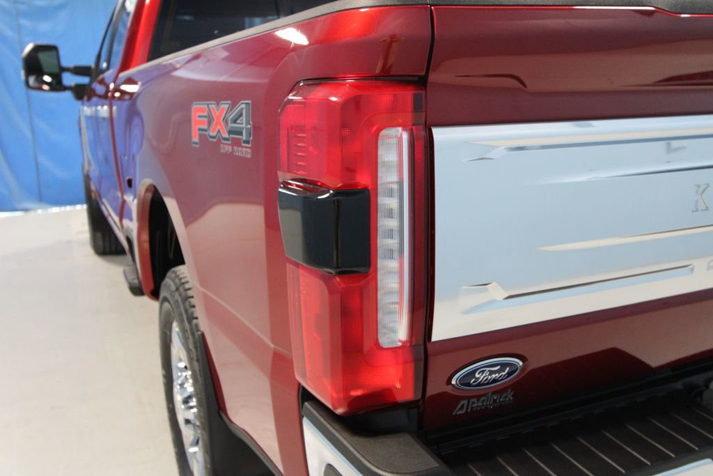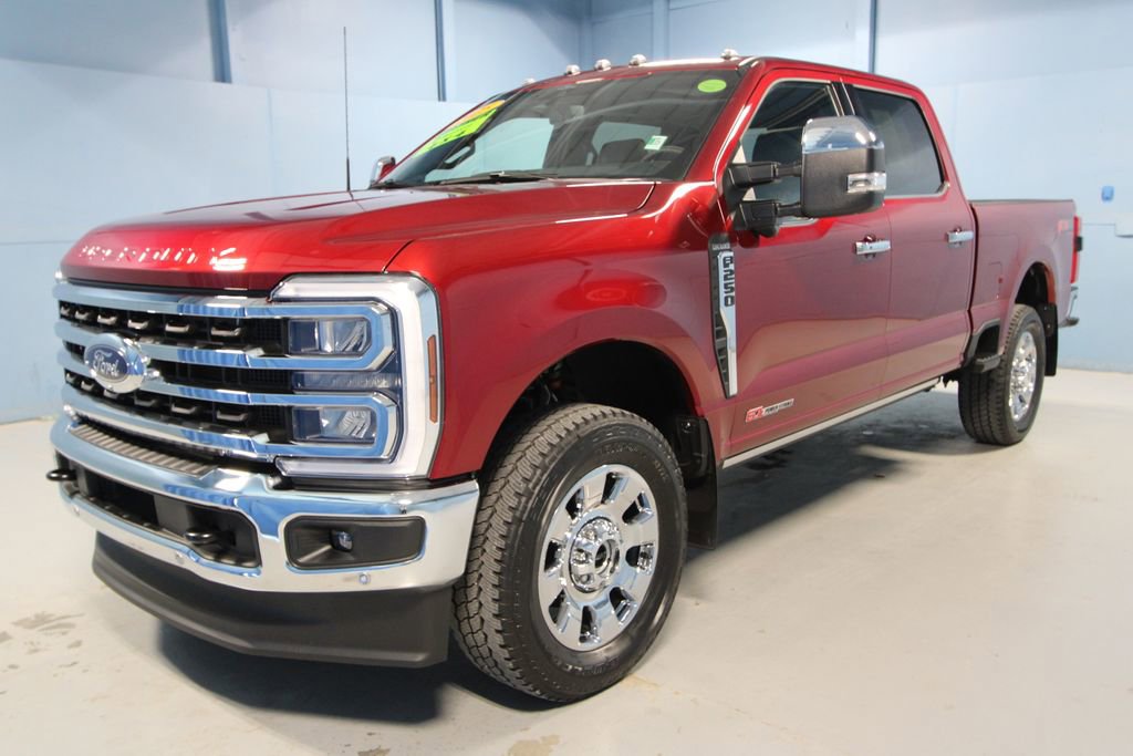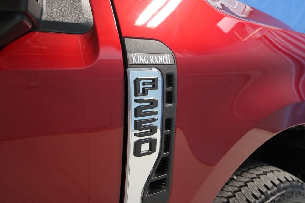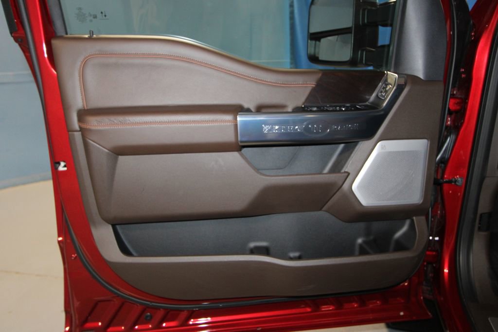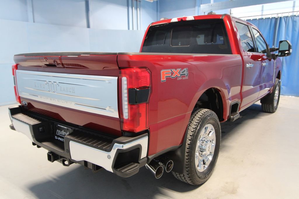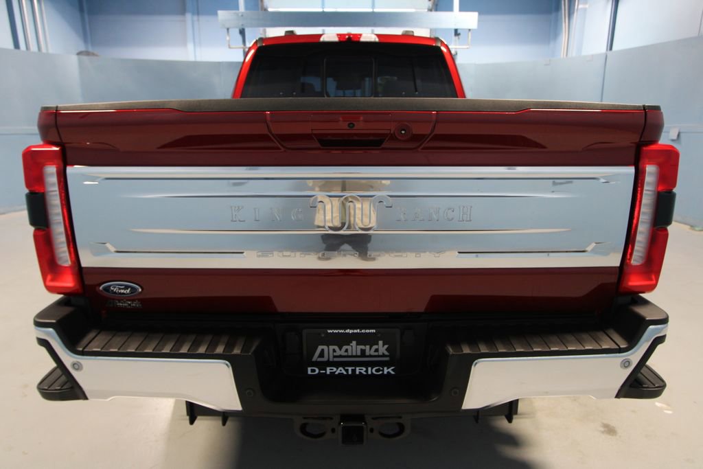 2025 Ford F-250SD King Ranch We want you to shop confidently for your next used car at The BIG Ford Store, D-Patrick Ford. We are located on Highway 41 and Walnut in Evansville, right next to the Lloyd Expressway. Buy this used vehicle 100% online or in-store. This pre-owned vehicle was put through an extensive inspection before hitting our lot. Because of this, we are able to offer a 3-month/3,000-mile comprehensive limited warranty. You also get our Love It or Return It 5-day, 300-mile Exchange Policy. See our website for more details on both. We also offer extended service plans, vehicle protection plans, and offer a CarFax vehicle history report. *Prices listed do not include a $250 documentation fee, applicable tax, title, tags, license, or $195 service and preparation. All pricing, vehicle information, and features (such as accessories and color) are believed to be accurate, but we do not warrant or guarantee such accuracy. The prices shown above may vary from region to region, and incentives are subject to change. Some offers listed may not be available to all customers. All online sale commitments are subject to confirmation of continued availability of vehicle. Once availability is confirmed, online sale agreement becomes binding upon the parties. If any information found on the website is thought to be erroneous, please verify information with a customer service representative. See dealer for full details. Looking to sell your current vehicle? We buy cars for cash. Every test drive at D-Patrick Ford in Evansville earns $10 to a local charity. Schedule your test drive today! 4WD, 14 Speakers, 3.73 Axle Ratio, 4-Wheel Disc Brakes, 410 Amp Dual Alternators, 5th Wheel/Gooseneck Hitch Prep Package, ABS brakes, Adjustable pedals, Air Conditioning, All-Weather Floor Mats, Alloy wheels, AM/FM radio: SiriusXM with 360L, Auto High-beam Headlights, Auto tilt-away steering wheel, Auto-dimming Rear-View mirror, Automatic temperature control, Brake assist, Chrome Door Handles, Chrome Exhaust Tip, Chrome Package, Compass, Delay-off headlights, Driver door bin, Driver vanity mirror, Dual front impact airbags, Dual front side impact airbags, Electronic Stability Control, Emergency communication system: SYNC 4 911 Assist, Engine Block Heater, Flow-Through Console, Front anti-roll bar, Front Bucket Seats, Front Center Armrest, Front dual zone A/C, Front fog lights, Front reading lights, Fully automatic headlights, FX4 Off-Road Package, Garage door transmitter, Heads-Up Display, Heated door mirrors, Heated front seats, Heated rear seats, Heated steering wheel, High Capacity 11.6 Axle Upgrade Package, Hill Descent Control, Illuminated entry, Leather steering wheel, LED Roof Clearance Lights, Low tire pressure warning, Memory seat, Navigation System, Off-Road Specifically Tuned Shock Absorbers, Order Code 700A, Outside temperature display, Overhead airbag, Overhead console, Panic alarm, Passenger door bin, Passenger vanity mirror, Pedal memory, Power door mirrors, Power driver seat, Power passenger seat, Power steering, Power windows, Radio: B&O Unleashed Sound System by Bang & Olufsen, Rain sensing wipers, Rear reading lights, Rear seat center armrest, Rear step bumper, Rear window defroster, Remote keyless entry, Security system, Snow Plow Prep Package, Speed control, Split folding rear seat, Steering wheel memory, Steering wheel mounted A/C controls, Steering wheel mounted audio controls, Tachometer, Telescoping steering wheel, Tilt steering wheel, Traction control, Trip computer, Turn signal indicator mirrors, Twin Panel Power Moonroof, Unique Chrome Mirror Caps, Unique FX4 Off-Road Box Decal, Unique King Ranch Leather 40/Console/40 Seats, Upfitter Switches (6), Variably intermittent wipers, Ventilated front seats, Wheels: 20 Bright Machined Cast Aluminum, Wheels: 20 Chrome PVD Aluminum, 4WD. CARFAX One-Owner. 4D Crew Cab King Ranch 10-Speed Automatic 6.7L High Output Power Stroke V8 Diesel 4WD Ruby Red Metallic CALL TODAY (812) 62