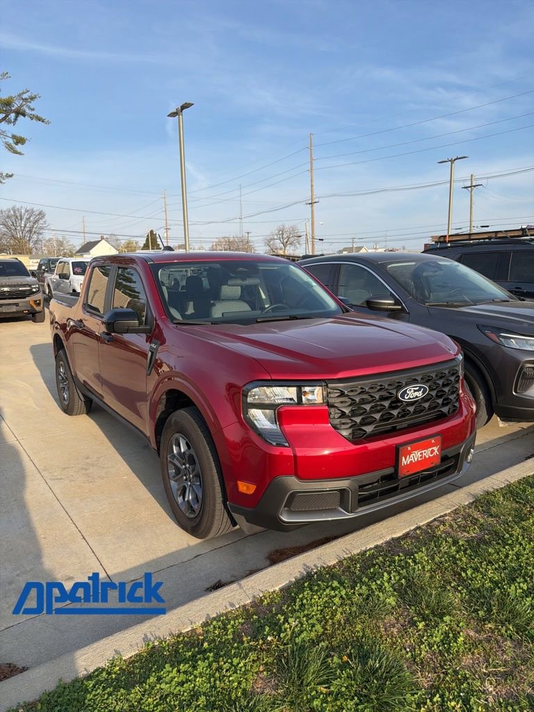 2025 Ford Maverick XLT We want you to shop confidently for your next used car at The BIG Ford Store, D-Patrick Ford. We are located on Highway 41 and Walnut in Evansville, right next to the Lloyd Expressway. Buy this used vehicle 100% online or in-store. This pre-owned vehicle was put through an extensive inspection before hitting our lot. Because of this, we are able to offer a 3-month/3,000-mile comprehensive limited warranty. You also get our Love It or Return It 5-day, 300-mile Exchange Policy. See our website for more details on both. We also offer extended service plans, vehicle protection plans, and offer a CarFax vehicle history report. *Prices listed do not include a $250 documentation fee, applicable tax, title, tags, license, or $195 service and preparation. All pricing, vehicle information, and features (such as accessories and color) are believed to be accurate, but we do not warrant or guarantee such accuracy. The prices shown above may vary from region to region, and incentives are subject to change. Some offers listed may not be available to all customers. All online sale commitments are subject to confirmation of continued availability of vehicle. Once availability is confirmed, online sale agreement becomes binding upon the parties. If any information found on the website is thought to be erroneous, please verify information with a customer service representative. See dealer for full details. Looking to sell your current vehicle? We buy cars for cash. Every test drive at D-Patrick Ford in Evansville earns $10 to a local charity. Schedule your test drive today! 2.5L I-4 Hybrid, 2.91 Axle Ratio, 4-Wheel Disc Brakes, 400W Inverter w/USB Console Rear, 6 Speakers, ABS brakes, Air Conditioning, Alloy wheels, AM/FM radio: SiriusXM with 360L, Apple CarPlay/Android Auto, Auto High Beams, Auto High-beam Headlights, Automatic temperature control, Brake assist, Bumpers: body-color, Compass, Delay-off headlights, Driver door bin, Driver vanity mirror, Dual front impact airbags, Dual front side impact airbags, Electronic Stability Control, Emergency communication system: SYNC 4 911 Assist, Equipment Group 300A, Exterior Parking Camera Rear, Front & Rear Floor Liners w/o Carpet Mats, Front anti-roll bar, Front Bucket Seats, Front Center Armrest, Front reading lights, Front wheel independent suspension, Fully automatic headlights, Heated Mirror w/Painted Black Skull Caps, Heated Seats, Illuminated entry, Internet access capable: FordPass Connect 5G, Knee airbag, LED Box Lighting, Low tire pressure warning, Occupant sensing airbag, Outside temperature display, Overhead airbag, Overhead console, Panic alarm, Passenger door bin, Passenger vanity mirror, Power door mirrors, Power Moonroof, Power steering, Power windows, Pre-Collision Assist w/Automatic Emergency Braking, Radio data system, Radio: AM/FM Stereo w/6 Speakers, Rear anti-roll bar, Rear seat center armrest, Rear step bumper, Rear-View Camera, Remote keyless entry, Remote Start System, Security system, SiriusXM w/360L, Soft Vinyl Wrapped Heated Steering Wheel, Speed control, Speed-sensing steering, Steering wheel mounted audio controls, SYNC 4 w/Enhanced Voice Recognition, Telescoping steering wheel, Tilt steering wheel, Traction control, Trip computer, Unique Cloth Front Bucket Seats, Wheels: 17 Carbonized Gray Painted Aluminum, XLT Luxury Package, 2.5L I-4 Hybrid. CARFAX One-Owner. Clean CARFAX. 4D Crew Cab XLT CVT 2.5L I-4 Hybrid FWD Ruby Red Metallic CALL TODAY (812) 625-4823 OR SHOP ONLINE AT WWW.DPATRICKFORD.COM.