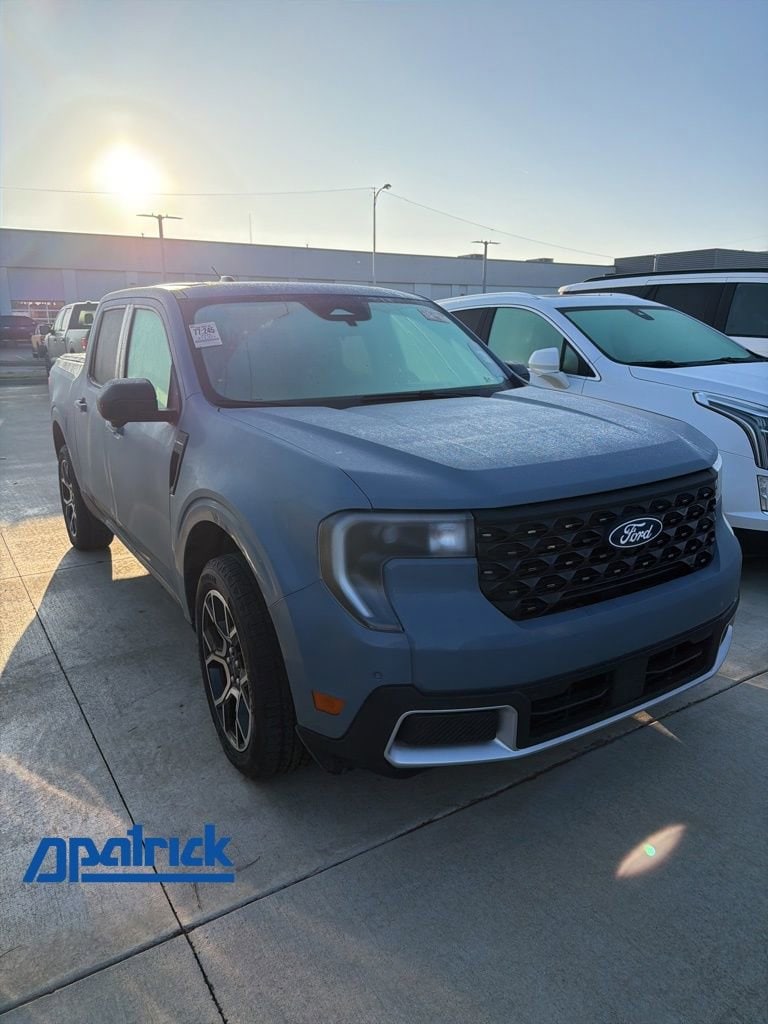 2025 Ford Maverick Lariat Recent Arrival! We want you to shop confidently for your next used car at The BIG Ford Store, D-Patrick Ford. We are located on Highway 41 and Walnut in Evansville, right next to the Lloyd Expressway. Buy this used vehicle 100% online or in-store. This pre-owned vehicle was put through an extensive inspection before hitting our lot. Because of this, we are able to offer a 3-month/3,000-mile comprehensive limited warranty. You also get our Love It or Return It 5-day, 300-mile Exchange Policy. See our website for more details on both. We also offer extended service plans, vehicle protection plans, and offer a CarFax vehicle history report. *Prices listed do not include a $250 documentation fee, applicable tax, title, tags, license, or $195 service and preparation. All pricing, vehicle information, and features (such as accessories and color) are believed to be accurate, but we do not warrant or guarantee such accuracy. The prices shown above may vary from region to region, and incentives are subject to change. Some offers listed may not be available to all customers. All online sale commitments are subject to confirmation of continued availability of vehicle. Once availability is confirmed, online sale agreement becomes binding upon the parties. If any information found on the website is thought to be erroneous, please verify information with a customer service representative. See dealer for full details. Looking to sell your current vehicle? We buy cars for cash. Every test drive at D-Patrick Ford in Evansville earns $10 to a local charity. Schedule your test drive today! 2.5L I-4 Hybrid, 2.91 Axle Ratio, 4-Wheel Disc Brakes, 8 Speakers, ABS brakes, ActiveX Trimmed Heated Front Bucket Seats, Air Conditioning, Alloy wheels, AM/FM radio: SiriusXM with 360L, Apple CarPlay/Android Auto, Auto High-beam Headlights, Automatic temperature control, Brake assist, Bumpers: body-color, Compass, Delay-off headlights, Driver door bin, Driver vanity mirror, Dual front impact airbags, Dual front side impact airbags, Electronic Stability Control, Emergency communication system: SYNC 4 911 Assist, Equipment Group 501A, Exterior Parking Camera Rear, Four wheel independent suspension, Front & Rear Floor Liners w/o Carpet Mats, Front anti-roll bar, Front Bucket Seats, Front Center Armrest, Front dual zone A/C, Front reading lights, Fully automatic headlights, Heated door mirrors, Heated front seats, Heated steering wheel, Illuminated entry, Internet access capable: FordPass Connect 5G, Knee airbag, Low tire pressure warning, Navigation system: Connected Navigation, Occupant sensing airbag, Outside temperature display, Overhead airbag, Overhead console, Panic alarm, Passenger door bin, Passenger vanity mirror, Power door mirrors, Power driver seat, Power Moonroof, Power steering, Power windows, Radio data system, Radio: B&O Sound System by Bang & Olufsen, Rear anti-roll bar, Rear seat center armrest, Rear step bumper, Remote keyless entry, Security system, SiriusXM w/360L, Speed control, Speed-sensing steering, Steering wheel mounted audio controls, SYNC 4 w/Enhanced Voice Recognition, Telescoping steering wheel, Tilt steering wheel, Tonneau Pickup Box Cover - Soft Folding, Traction control, Trip computer, Wheels: 19 Machined Painted Aluminum, 2.5L I-4 Hybrid. CARFAX One-Owner. 4D Crew Cab Lariat CVT 2.5L I-4 Hybrid AWD Azure Gray Metallic CALL TODAY (812) 625-4823 OR SHOP ONLINE AT WWW.DPATRICKFORD.COM.