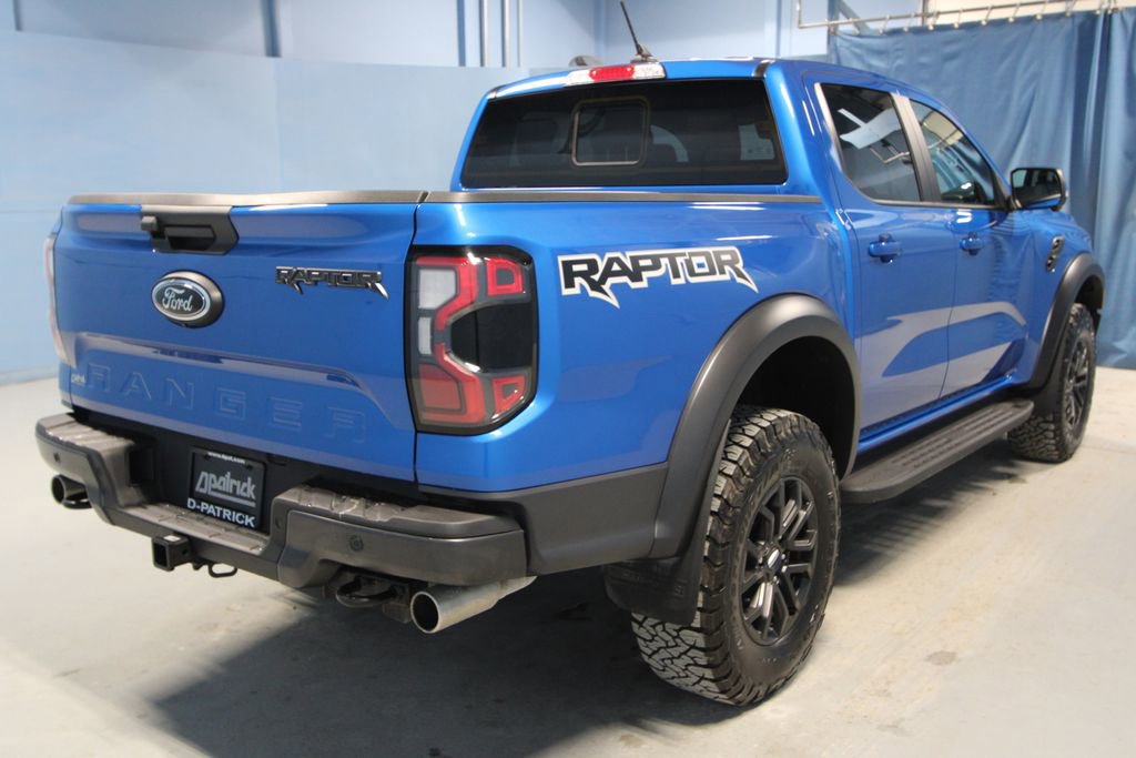 2025 Ford Ranger Raptor We want you to shop confidently for your next used car at The BIG Ford Store, D-Patrick Ford. We are located on Highway 41 and Walnut in Evansville, right next to the Lloyd Expressway. Buy this used vehicle 100% online or in-store. This pre-owned vehicle was put through an extensive inspection before hitting our lot. Because of this, we are able to offer a 3-month/3,000-mile comprehensive limited warranty. You also get our Love It or Return It 5-day, 300-mile Exchange Policy. See our website for more details on both. We also offer extended service plans, vehicle protection plans, and offer a CarFax vehicle history report. *Prices listed do not include a $250 documentation fee, applicable tax, title, tags, license, or $195 service and preparation. All pricing, vehicle information, and features (such as accessories and color) are believed to be accurate, but we do not warrant or guarantee such accuracy. The prices shown above may vary from region to region, and incentives are subject to change. Some offers listed may not be available to all customers. All online sale commitments are subject to confirmation of continued availability of vehicle. Once availability is confirmed, online sale agreement becomes binding upon the parties. If any information found on the website is thought to be erroneous, please verify information with a customer service representative. See dealer for full details. Looking to sell your current vehicle? We buy cars for cash. Every test drive at D-Patrick Ford in Evansville earns $10 to a local charity. Schedule your test drive today! 4WD, 10 Speakers, 4-Wheel Disc Brakes, 4.27 Axle Ratio, ABS brakes, Air Conditioning, Alloy wheels, AM/FM radio: SiriusXM, Auto High-beam Headlights, Auto-dimming Rear-View mirror, Automatic temperature control, Brake assist, Compass, Delay-off headlights, Driver door bin, Driver vanity mirror, Dual front impact airbags, Dual front side impact airbags, Electronic Stability Control, Emergency communication system: SYNC 4 911 Assist, Equipment Group 800A Standard, Front & Rear Splash Guards/Mud Flaps, Front anti-roll bar, Front Bucket Seats, Front Center Armrest, Front dual zone A/C, Front fog lights, Front reading lights, Front wheel independent suspension, Fully automatic headlights, Garage door transmitter, Heated door mirrors, Heated front seats, Heated steering wheel, Illuminated entry, Leather Shift Knob, Leather steering wheel, Leather-Trimmed Front Heated Bucket Seats, Low tire pressure warning, Memory seat, Modular Drop-In Bedliner, Navigation system: Connected Navigation, Occupant sensing airbag, Outside temperature display, Overhead airbag, Overhead console, Panic alarm, Passenger door bin, Passenger vanity mirror, Power door mirrors, Power driver seat, Power passenger seat, Power steering, Power windows, Radio: B&O Sound System by Bang & Olufsen, Rain sensing wipers, Rear reading lights, Rear seat center armrest, Rear step bumper, Rear window defroster, Remote keyless entry, Security system, SiriusXM Satellite Radio, Speed control, Speed-sensing steering, Steering wheel mounted audio controls, SYNC 4A, Telescoping steering wheel, Tilt steering wheel, Traction control, Trip computer, Turn signal indicator mirrors, Variably intermittent wipers, Voltmeter, Wheels: 17 Gray-Painted Aluminum, 4WD. CARFAX One-Owner. Clean CARFAX. 4D Crew Cab Raptor 10-Speed Automatic 3.0L EcoBoost V6 4WD Blue Metallic CALL TODAY (812) 625-4823 OR SHOP ONLINE AT WWW.DPATRICKFORD.COM.