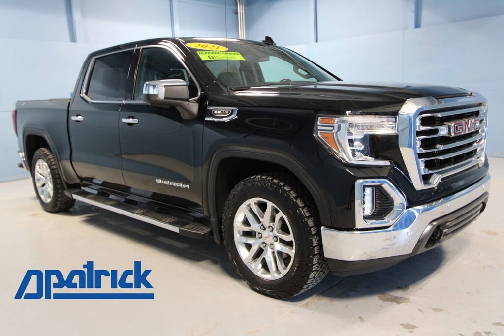 2021 GMC Sierra 1500 SLT We want you to shop confidently for your next used car at The BIG Ford Store, D-Patrick Ford. We are located on Highway 41 and Walnut in Evansville, right next to the Lloyd Expressway. Buy this used vehicle 100% online or in-store. This pre-owned vehicle was put through an extensive inspection before hitting our lot. Because of this, we are able to offer a 3-month/3,000-mile comprehensive limited warranty. You also get our Love It or Return It 5-day, 300-mile Exchange Policy. See our website for more details on both. We also offer extended service plans, vehicle protection plans, and offer a free to you CarFax vehicle history report. *Prices listed do not include a $250 documentation fee, applicable tax, title, tags, license, or $195 service and preparation. All pricing, vehicle information, and features (such as accessories and color) are believed to be accurate, but we do not warrant or guarantee such accuracy. The prices shown above may vary from region to region, and incentives are subject to change. Some offers listed may not be available to all customers. All online sale commitments are subject to confirmation of continued availability of vehicle. Once availability is confirmed, online sale agreement becomes binding upon the parties. If any information found on the website is thought to be erroneous, please verify information with a customer service representative. See dealer for full details. Looking to sell your current vehicle? We buy cars for cash. Every test drive at D-Patrick Ford in Evansville earns $10 to a local charity. Schedule your test drive today! 10-Speed Automatic, 4WD, Jet Black Leather, 10-Way Power Driver Seat Adjuster w/Lumbar, 10-Way Power Passenger Seat Adjuster w/Lumbar, 12-Volt Rear Auxiliary Power Outlet, 120-Volt Bed Mounted Power Outlet, 120-Volt Instrument Panel Power Outlet, 170 Amp Alternator, 2 USB Ports (1st Row), 20 x 9 Polished Aluminum Wheels, 3.23 Rear Axle Ratio, 4-Wheel Disc Brakes, 4G LTE Wi-Fi Hotspot Capable, 6 Speakers, 6-Speaker Audio System Feature, ABS brakes, Adaptive Cruise Control, Air Conditioning, Alloy wheels, AM/FM radio: SiriusXM with 360L, Apple CarPlay/Android Auto, Auto-dimming door mirrors, Auto-dimming Rear-View mirror, Auto-Locking Rear Differential, Automatic Emergency Braking, Automatic temperature control, Auxiliary External Transmission Oil Cooler, Brake assist, Bumpers: chrome, Chrome Grille, Chrome Wheel To Wheel Assist Steps, Color-Keyed Carpeting Floor Covering, Compass, Console-Mounted Safe (LPO), Deep-Tinted Glass, Delay-off headlights, Driver Alert Package I, Driver Alert Package II, Driver door bin, Driver Memory, Driver vanity mirror, Dual Exhaust w/Premium Tips, Dual front impact airbags, Dual front side impact airbags, Electric Rear-Window Defogger, Electrical Lock Control Steering Column, Electronic Stability Control, Floor-Mounted Center Console, Following Distance Indicator, Forward Collision Alert, Front 40/20/40 Split-Bench Seat, Front anti-roll bar, Front Bucket Seats, Front Center Armrest w/Storage, Front dual zone A/C, Front fog lights, Front Frame-Mounted Black Recovery Hooks, Front Pedestrian Braking, Front reading lights, Front wheel independent suspension, Fully automatic headlights, GMC Connected Access Capable, Heated 2nd Row Outboard Seats, Heated door mirrors, Heated Driver & Front Outboard Passenger Seating, Heated front seats, Heated steering wheel, Heavy Duty Suspension, Heavy-Duty Air Filter, Hill Descent Control, Hitch Guidance, Hitch Guidance w/Hitch View, Illuminated entry, In-Vehicle Trailering App, Integrated Trailer Brake Controller, IntelliBeam Automatic High Beam On/Off, Keyless Open & Start, Lane Change Alert w/Side Blind Zone Alert, Lane Keep Assist w/Lane Departure Warning, LED Cargo Area Lighting, Low tire pressure warning, Manual Tilt-Wheel & Telescoping Steering Column, Memory seat, Occupant sensing airbag, OnStar & GMC Connected Services Capable, Outside temperature display, Overhead air