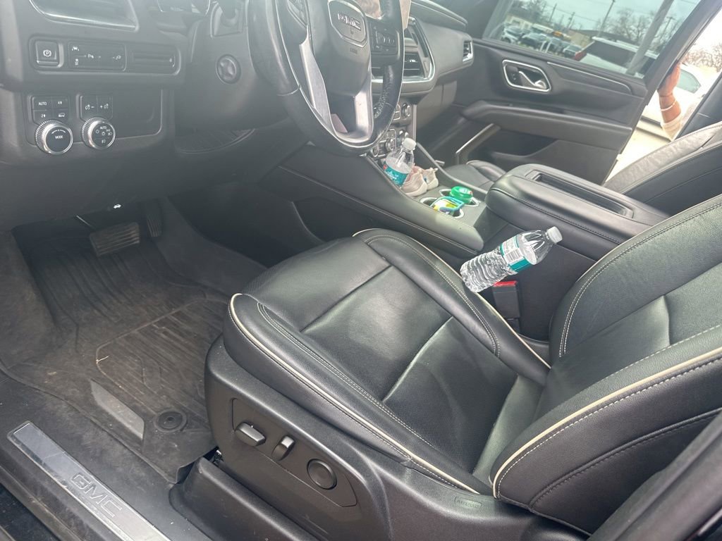 • compatible with Bluetooth headphones,HD SURROUND VISION,SEATS FRONT BUCKET (STD),STEERING WHEEL HEATED AUTOMATIC,INTERIOR TRIM JET BLACK,LICENSE PLATE FRONT MOUNTING PACKAGE (Included on orders with ship-to states that require a front license plate.),NOT EQUIPPED WITH AUTOMATIC STOP/START SEE DEALER FOR DETAILS (Most vehicles built on or after 6-7-2021 with a V8 engine will have (NSS) Not Equipped with Automatic Stop/Start which removes Automatic Stop/Start Engine control stop/start disable button and its content.),LPO ALL-WEATHER FLOOR MATS (dealer-installed),SUNROOF POWER PANORAMIC DUAL-PANE tilt-sliding with express-open and close and power sunshade,MIRRORS OUTSIDE HEATED POWER-ADJUSTABLE POWER-FOLDING driver-side auto-dimming integrated turn signal indicators and puddle lighting,ONYX BLACK,JET BLACK PERFORATED LEATHER SEATING SURFACES (1st and 2nd rows only.),MEMORY SETTINGS recalls 2 driver presets for power driver seat outside rearview mirrors and power and tilt and telescopic steering column,SEATS HEATED SECOND ROW OUTBOARD POSITIONS,REAR MEDIA AND NAV PACKAGE includes (UW9) Rear Seat Media System and (IOT) 10.2 diagonal GMC Infotainment System with Navigation,REAR PEDESTRIAN ALERT,SLT PREMIUM PACKAGE includes (WPL) SLT Luxury Package content and (C3U) Panoramic power sunroof,Rear Parking Aid,Blind Spot Monitor,Lane Departure Warning,Cross-Traffic Alert,Lane Keeping Assist,Front Collision Mitigation,Front Collision Warning,Automatic Highbeams,Keyless Start,Locking/Limited Slip Differential,Four Wheel Drive,Tow Hitch,Air Suspension,Power Steering,ABS,4-Wheel Disc Brakes,Tires - Front All-Season,Tires - Rear All-Season,Conventional Spare Tire,Conventional Spare Tire,Luggage Rack,Running Boards/Side Steps,Fog Lamps,Heated Mirrors,Power Mirror(s),Privacy Glass,Intermittent Wipers,Variable Speed Intermittent Wipers,Rain Sensing Wipers,Remote Trunk Release,Power Liftgate,AM/FM Stereo,Satellite Radio,MP3 Capability,Bluetooth Connection,Auxiliary Audio Input,Smart Device Integration,Requires Subscription,MP3 Capability,Bluetooth Connection,Auxiliary Audio Input,Premium Sound System,Satellite Radio,Requires Subscription,HD Radio,WiFi Hotspot,Bucket Seats,Pass-Through Rear Seat,Rear Bench Seat,Leather Seats,Seat Memory,3rd Row Seat,Heated Front Seat(s),Leather Seats,Heated Front Seat(s),Cooled Front Seat(s),Power Driver Seat,Power Passenger Seat,Driver Adjustable Lumbar,Passenger Adjustable Lumbar,Floor Mats,Adjustable Steering Wheel,Leather Steering Wheel,Cruise Control,Steering Wheel Audio Controls,Front Collision Warning,Bluetooth Connection,Smart Device Integration,Power Windows,Power Windows,Power Windows,Power Door Locks,Keyless Entry,Power Door Locks,Remote Engine Start,Cruise Control,Universal Garage Door Opener,MP3 Capability,Auxiliary Audio Input,MP3 Capability,Auxiliary Audio Input,Climate Control,Multi-Zone A/C,A/C,Rear A/C,A/C,Rear A/C,Rear Defrost,Security System,Auto-Dimming Rearview Mirror,Driver Vanity Mirror,Passenger Vanity Mirror,Driver Illuminated Vanity Mirror,Passenger Illuminated Visor Mirror,Automatic Highbeams,Front Collision Mitigation,Front Collision Warning,Traction Control,Stability Control,Brake Assist,Daytime Running Lights,Driver Air Bag,Passenger Air Bag,Front Side Air Bag,Front Head Air Bag,Rear Head Air Bag,Passenger Air Bag Sensor,Telematics,Requires Subscription,Front Collision Mitigation,Rear Parking Aid,Cross-Traffic Alert,Front Collision Warning,Lane Departure Warning,Lane Keeping Assist,Back-Up Camera,Blind Spot Monitor,Driver Restriction Features,Tire Pressure Monitor