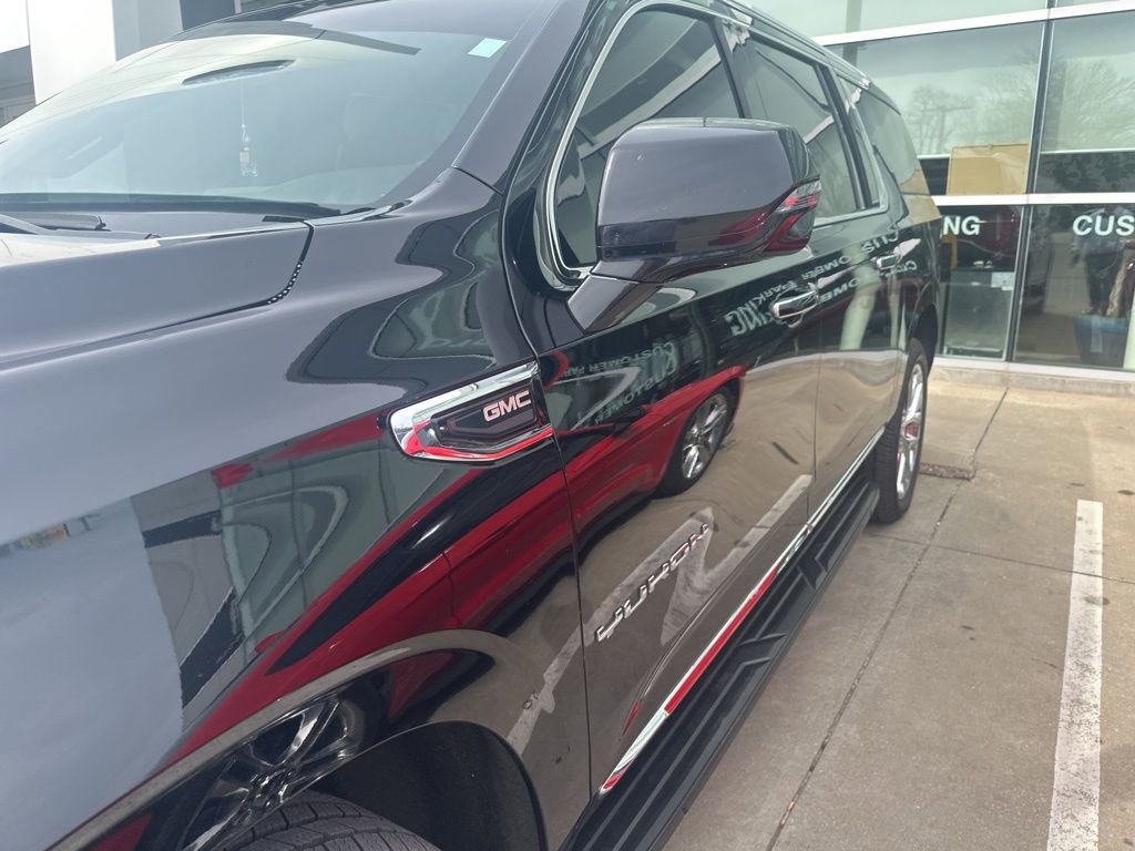 • NOT EQUIPPED WITH STEERING COLUMN LOCK see dealer for details (Most vehicles built on or after 7-5-2021 will have (R7N) Not Equipped with Steering Column Lock which deletes (N06) Steering Column Lock.),LPO ILLUMINATED FRONT GMC EMBLEM (dealer-installed),REAR AXLE 3.23 RATIO,SLT LUXURY PACKAGE includes (UV2) HD Surround Vision (UKK) Rear Pedestrian Alert (A45) memory settings (DXR) outside heated power-adjustable power-folding body-color mirrors with driver-side auto-dimming and integrated turn signal indicators (N38) power tilt and telescopic steering column (KI3) automatic heated steering wheel (KA6) second row outboard heated seats (ATT) second row power 60/40 split-folding bench seats and (AS8) third row power 60/40 splitfolding bench seats,TIRES 275/50R22SL ALL-SEASON BLACKWALL,LPO ILLUMINATED MIRROR GMC EMBLEM (dealer-installed),WHEELS 22 X 9 INTERIM,SEATS SECOND ROW BUCKET POWER RELEASE,SLT PREFERRED EQUIPMENT GROUP Includes Standard Equipment,SEATS THIRD ROW 60/40 SPLIT-BENCH POWER-FOLDING,LPO 22 (55.9 CM) BRIGHT CHROME WHEELS LPO wheels will come with 4 steel 22 wheels from the factory with alignment specs set to 22 LPO wheel selected (dealer-installed) (Includes factory-installed wheel locks and not (SFE) wheel locks LPO.,TRANSMISSION 10-SPEED AUTOMATIC electronically controlled with overdrive includes Traction Select System including tow/haul (Most vehicles built on or after 6-7-2021 with a V8 engine will have (NSS) Not Equipped with Automatic Stop/Start which removes Automatic Stop/Start Engine control stop/start disable button and its content.) (STD),AUDIO SYSTEM 10.2 DIAGONAL GMC INFOTAINMENT SYSTEM WITH NAVIGATION includes multi-touch display AM/FM/SiriusXM stereo Bluetooth streaming audio for music and most phones Android Auto and Apple CarPlay capability for compatible phones advanced voice recognition in-vehicle apps personalized profiles for infotainment and vehicle settings,LPO ILLUMINATION PACKAGE includes (RN2) Illuminated front GMC emblem LPO and (S3I) Illuminated mirror GMC emblem LPO (dealer-installed),STEERING COLUMN POWER TILT AND TELESCOPIC,ENGINE 5.3L ECOTEC3 V8 with Dynamic Fuel Management Direct Injection and Variable Valve Timing includes aluminum block construction (355 hp [265 kW] @ 5600 rpm 383 lb-ft of torque [518 Nm] @ 4100 rpm) (STD),REAR SEAT MEDIA SYSTEM includes dual rear seat-mounted 12.6 diagonal color-touch LCD HD screens Wi-Fi wireless projection capability two 2-channel wireless infrared digital headphones with 2 HDMI ports on the back of the center console