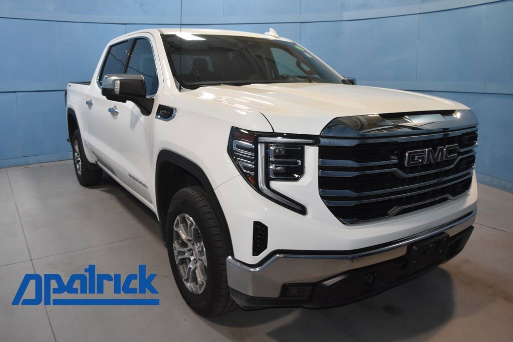 2024 GMC Sierra 1500 SLT Buy this used vehicle 100% online or in-store. We want you to shop confidently for your next used car at D-Patrick #1 Used Cars on Green River Road. D-Patrick #1 Used Cars are put through an extensive inspection before hitting our lot. Because of this, we are able to offer a 3-month/3,000-mile comprehensive limited warranty. You also get our Love It or Return It 5-day, 300-mile Exchange Policy. See our website for more details on both. We also offer extended warranties, additional protection plans, and offer a CarFax vehicle history report. We have a large selection of D-Patrick #1 Used Cars and AS-IS vehicles, all in one location with sale prices starting as low as $2500. We also have a large selection of certified, Audi, BMW, Mercedes-Benz, Porsche, Volkswagen, Ford, Lincoln, Honda, and Nissan. Looking to sell your current vehicle? We have partnered with Kelley Blue Book as Evansville's Instant Cash Offer Buying Center. *Prices listed do not include a $250 documentation fee, applicable tax, title, tags, license, or $195 service and preparation. All pricing, vehicle information, and features (such as accessories and color) are believed to be accurate, but we do not warrant or guarantee such accuracy. The prices shown above may vary from region to region, and incentives are subject to change. Some offers listed may not be available to all customers. All online sale commitments are subject to confirmation of continued availability of vehicle. Once availability is confirmed, online sale agreement becomes binding upon the parties. If any information found on the website is thought to be erroneous, please verify information with a customer service representative. See dealer for full details. 10-Speed Automatic, 4WD, Jet Black Leather, 10-Way Power Driver Seat Adjuster w/Lumbar, 10-Way Power Passenger Seat Adjuster w/Lumbar, 120-Volt Bed Mounted Power Outlet, 120-Volt Interior Power Outlet, 170 Amp Alternator, 2 Charge/Data USB Ports, 2 Type-C Charge-Only Rear USB Ports, 3.23 Rear Axle Ratio, 4-Wheel Disc Brakes, 6 Speakers, 6-Speaker Audio System Feature, ABS brakes, Air Conditioning, Alloy wheels, AM/FM radio: SiriusXM with 360L, Apple CarPlay/Android Auto, Auto High-beam Headlights, Auto-dimming door mirrors, Auto-dimming Rear-View mirror, Auto-Locking Rear Differential, Automatic Emergency Braking, Automatic temperature control, Auxiliary External Transmission Oil Cooler, Brake assist, Buckle to Drive, Bumpers: chrome, Chrome Header & Chrome Grille Insert Bars, Color-Keyed Carpeting Floor Covering, Compass, Deep-Tinted Glass, Delay-off headlights, Driver door bin, Driver Memory, Driver vanity mirror, Dual front impact airbags, Dual front side impact airbags, Electric Rear-Window Defogger, Electronic Stability Control, Following Distance Indicator, Forward Collision Alert, Front 40/20/40 Split-Bench Seat, Front anti-roll bar, Front Center Armrest w/Storage, Front dual zone A/C, Front fog lights, Front Frame-Mounted Black Recovery Hooks, Front Pedestrian Braking, Front Rain-Sensing Wipers, Front reading lights, Front wheel independent suspension, Fully automatic headlights, GMC Connected Access Capable, HD Rear Vision Camera, Heated door mirrors, Heated Driver & Front Outboard Passenger Seating, Heated front seats, Heated steering wheel, Hitch Guidance, Illuminated entry, IntelliBeam Automatic High Beam On/Off, Keyless Open & Start, Lane Keep Assist w/Lane Departure Warning, LED Cargo Area Lighting, Low tire pressure warning, Manual Tilt-Wheel & Telescoping Steering Column, Memory seat, Navigation System, Occupant sensing airbag, OnStar & GMC Connected Services Capable, Outside temperature display, Overhead airbag, Overhead console, Panic alarm, Passenger door bin, Passenger vanity mirror, Perf Leather-Appointed Front Outboard Seat Trim, Perimeter Lighting, Power Door Locks, Power door mirrors, Power driver seat, Power Front Passenger Windows w/Express Up/Down, Power Front Windows w/Driver Express Up/Do