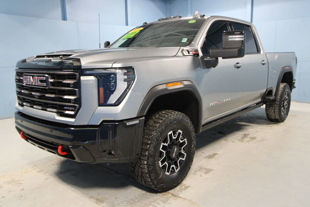 • ALTERNATOR 220 AMP,AT4X PREFERRED EQUIPMENT GROUP includes standard equipment,OBSIDIAN RUSH FULL GRAIN LEATHER SEAT TRIM,TRANSMISSION ALLISON 10-SPEED AUTOMATIC,GVWR 11 350 LBS. (5148 KG),ENGINE DURAMAX 6.6L TURBO-DIESEL V8 B20-DIESEL COMPATIBLE (470 hp [350.5 kW] @ 2800 rpm 975 lb-ft of torque [1322 Nm] @ 1600 rpm) (Includes (K05) engine block heater.),GOOSENECK / 5TH WHEEL PREP PACKAGE -- HITCH PLATFORM TO ACCEPT GOOSENECK OR 5TH WHEEL HITCH. Includes hitch platform with tray to accept ball stamped bed holes with removable caps installed and bed mounted 7-pin trailer harness (similar to UY2 harness).,WINTER GRILLE COVER,ENGINE BLOCK HEATER,LPO HITCH PACKAGE Gooseneck ball and chain tiedown kit with case (dealer-installed),AUDIO SYSTEM 13.4 DIAGONAL PREMIUM GMC INFOTAINMENT SYSTEM WITH GOOGLE BUILT IN APPS SUCH AS NAVIGATION AND VOICE ASSISTANCE includes color touch-screen multi-touch display AM/FM stereo Bluetooth streaming audio for music and most phones